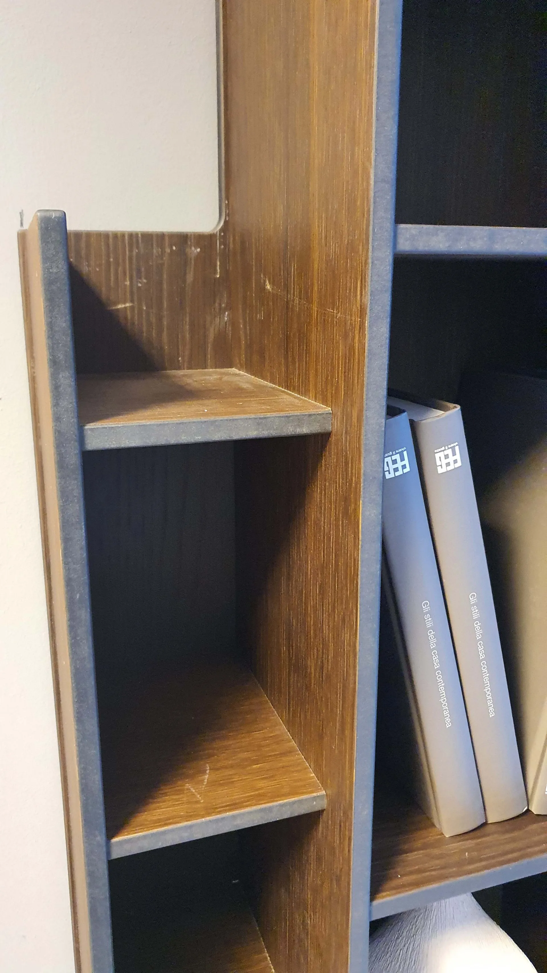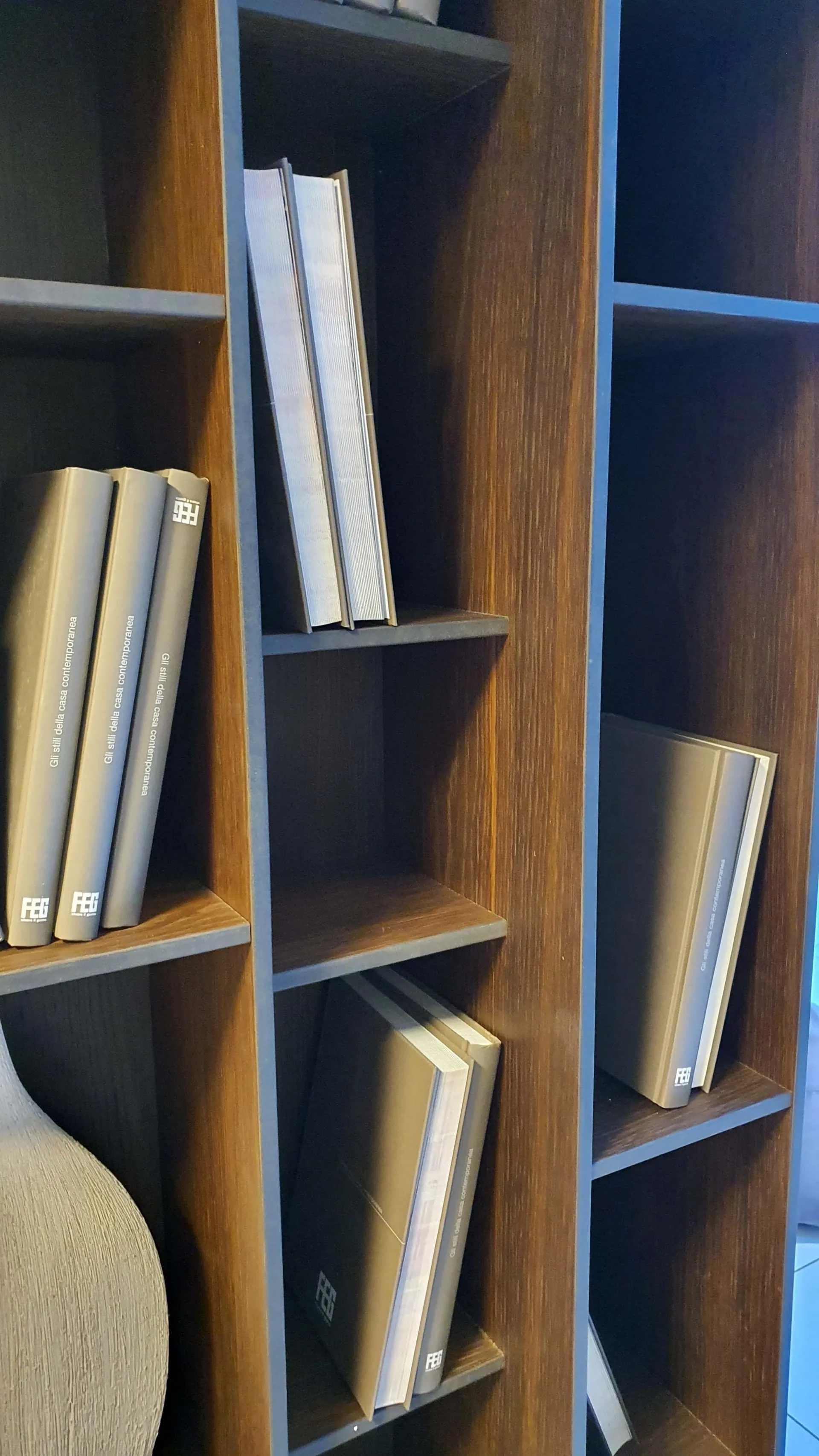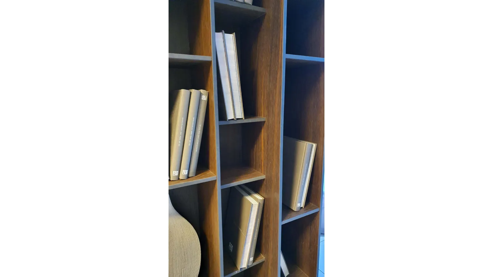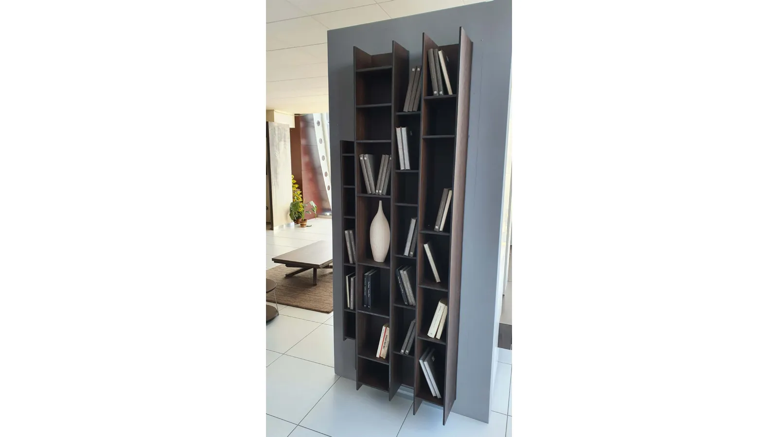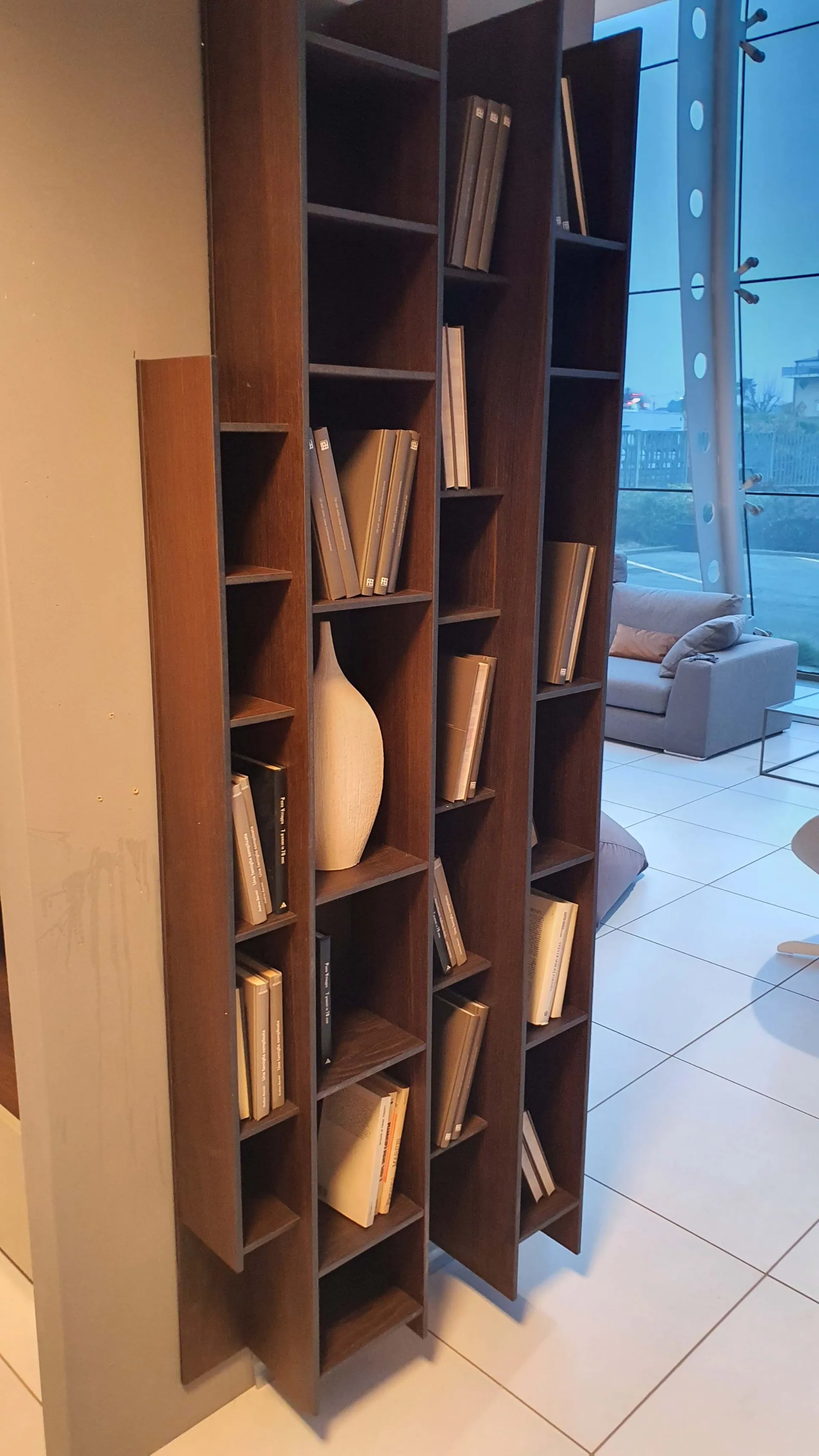 Libreria BYBLOS in legno di rovere termocotto ideale per arredare ambienti moderni ed eleganti. Particolarità di questa libreria è la possibilità di montarla sia in orizzontale che in verticale.