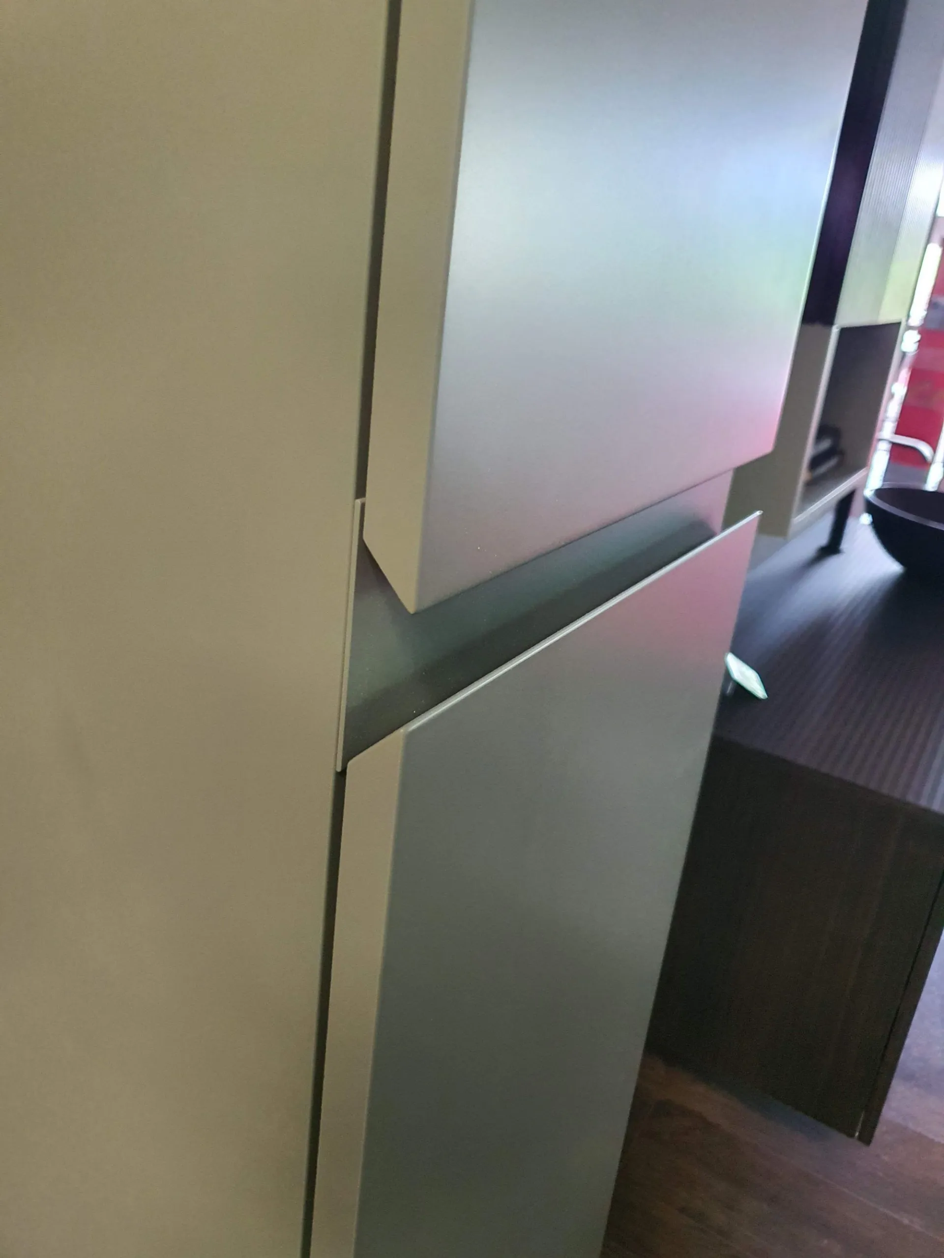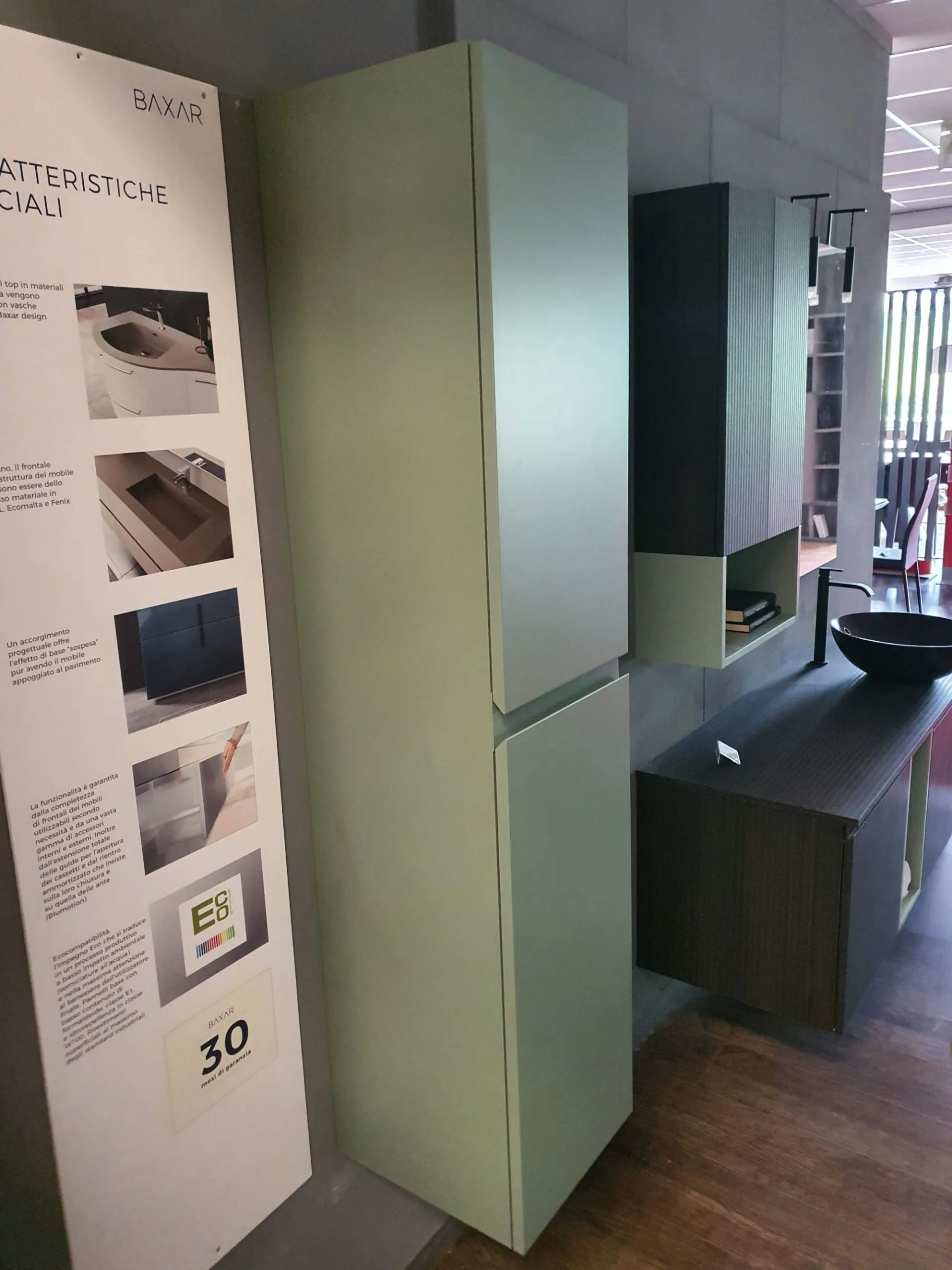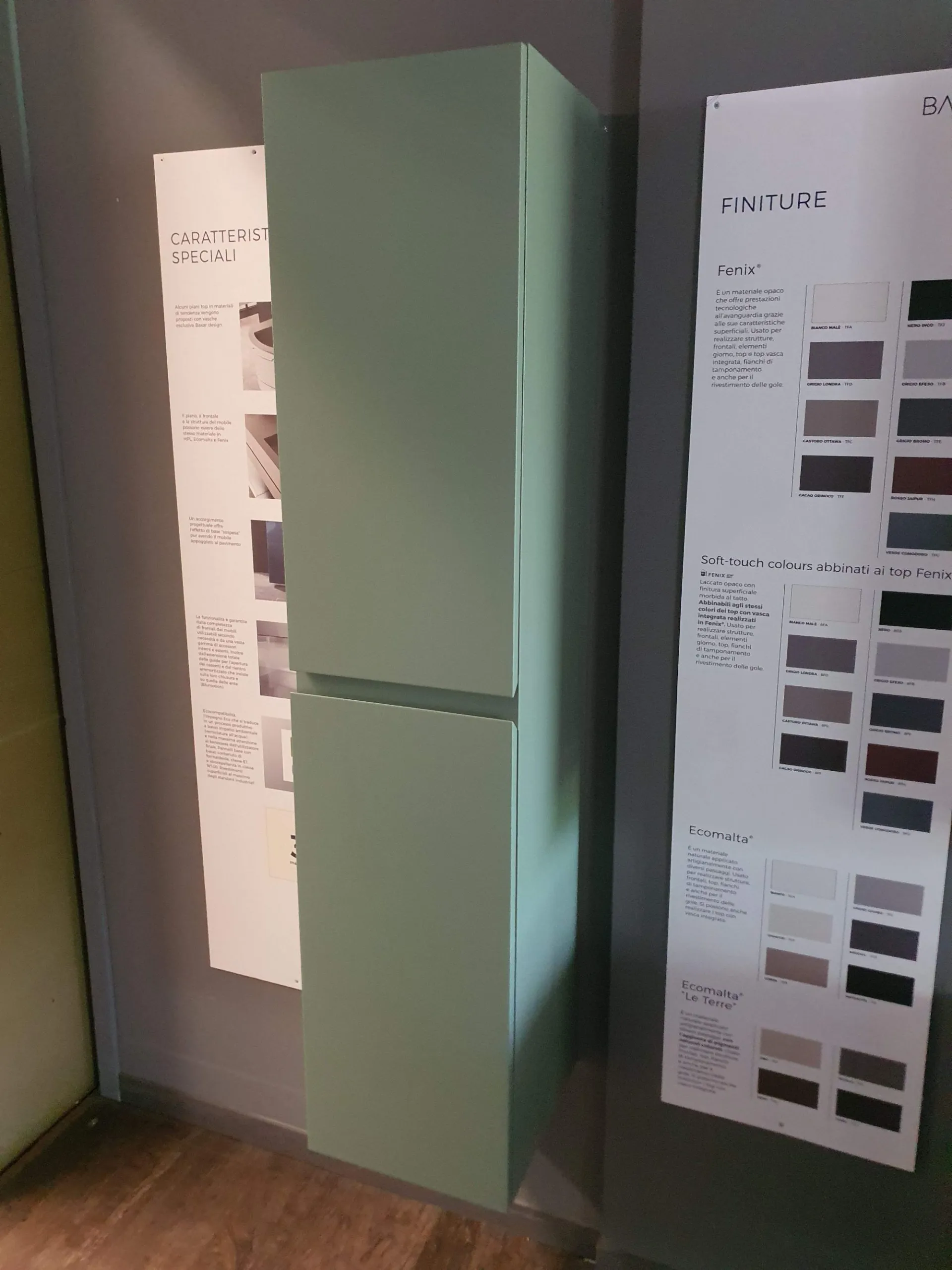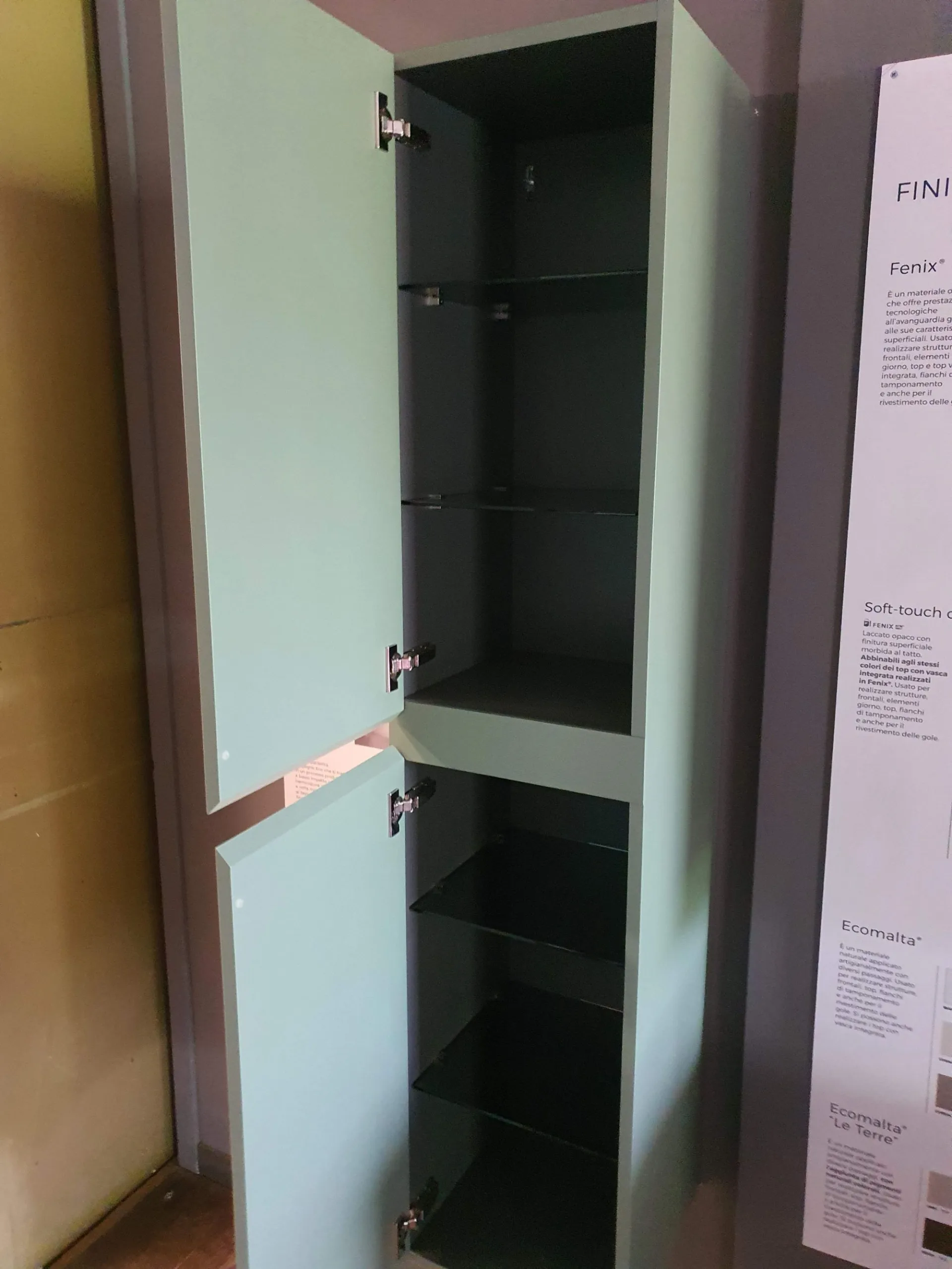 Colonna Baxar M2 System a due ante (apertura verso SX). Gola a 45° e finitura in laccato opaco Verde Salvia 242, interni grigio fumè.