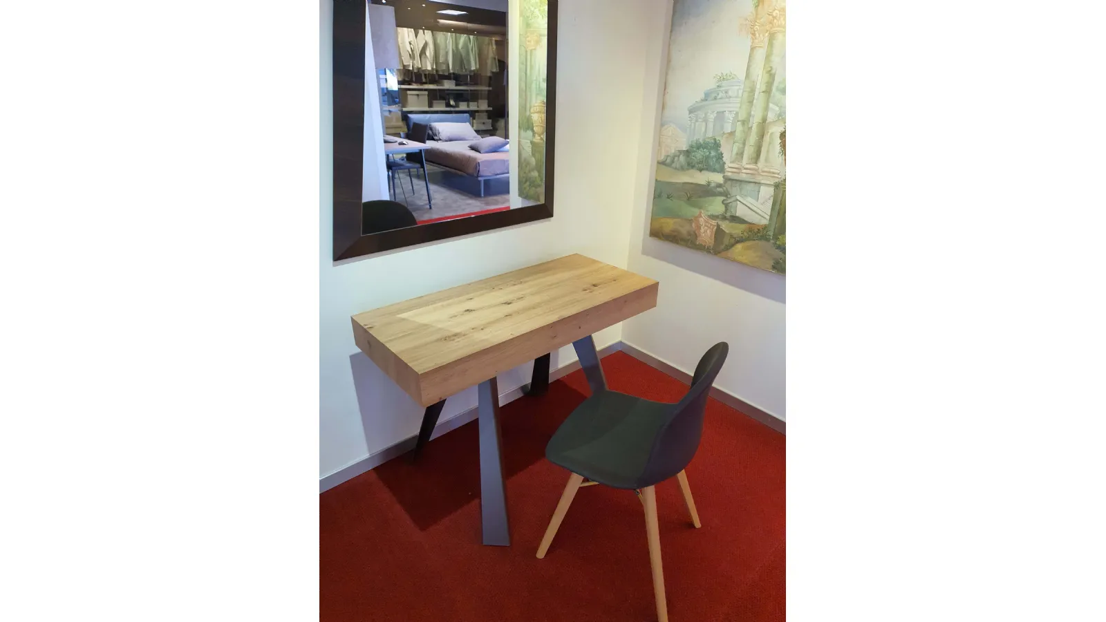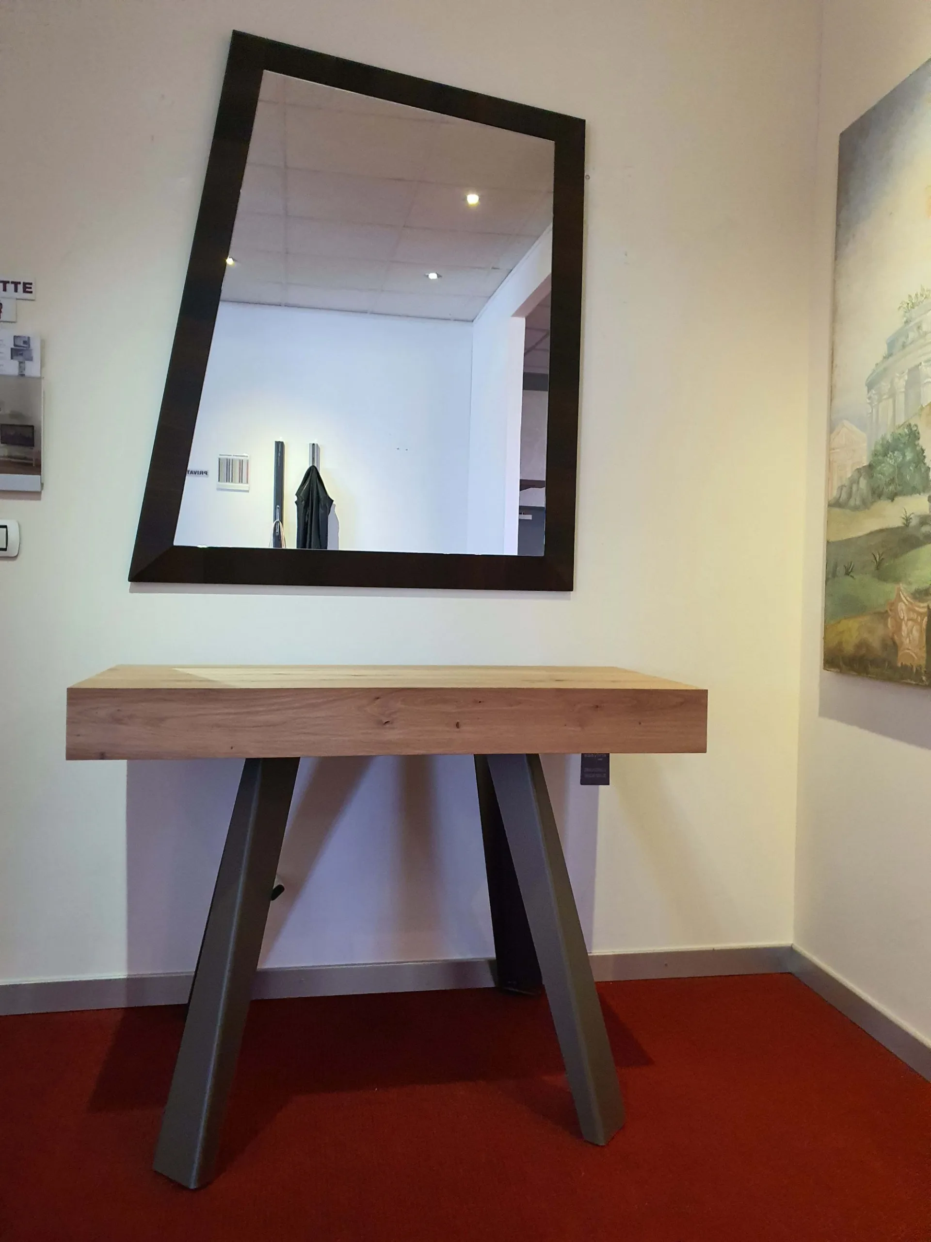 Consolle allungabile mod.PANACHE' adatta per qualsiasi ambiente. È dotata di meccanismo di apertura telescopico in alluminio e di due allunghe interne, incorporate nella struttura, ed una esterna. Raggiunge notevoli dimensioni di apertura da un minimo di 50 cm ad un massimo di 185 cm. Rimane quindi un arredo esteticamente bello ma anche funzionale.