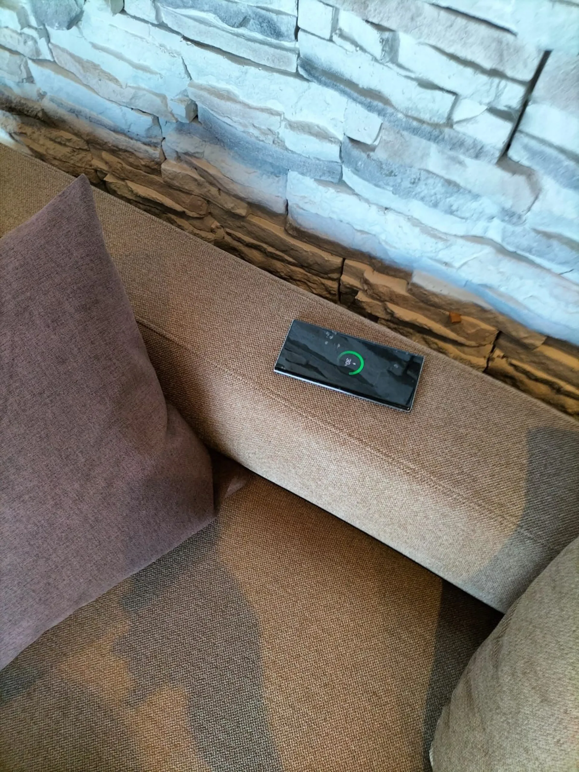 Lo schienale è dotato di un meccanismo manuale che permette l’inclinazione in avanti per renderlo ancora più confortevole. Il bracciolo presente a lato della chaise longue è dotato di un caricabatteria Wireless posizionato sotto il rivestimento.
