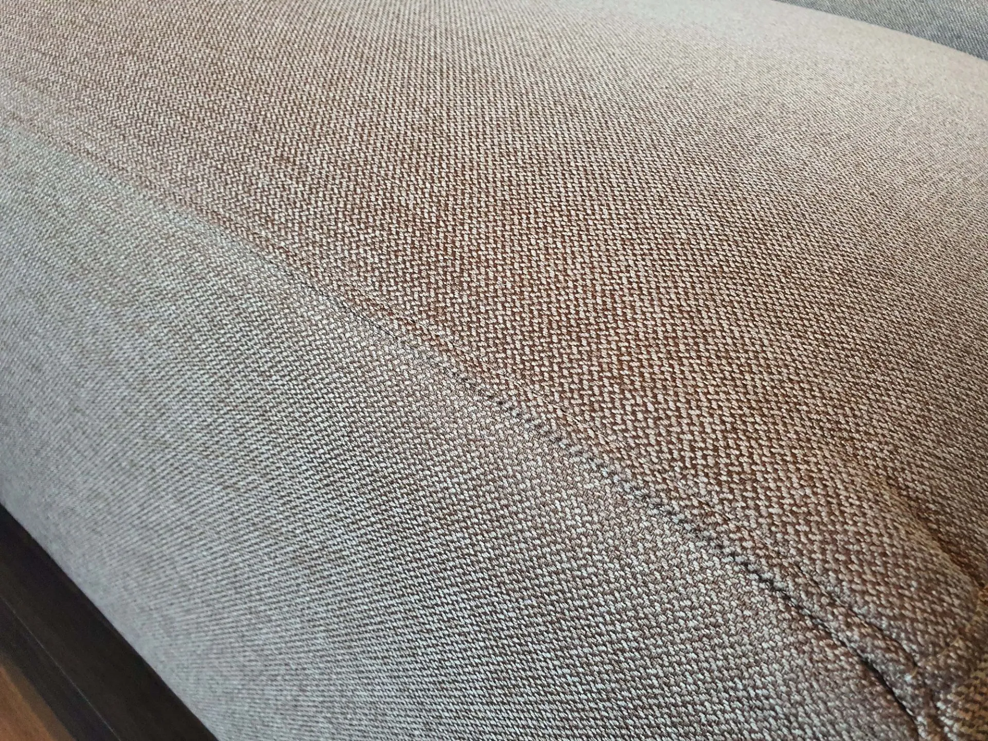 Il divano è completamente sfoderabile e rivestito da un tessuto color terra