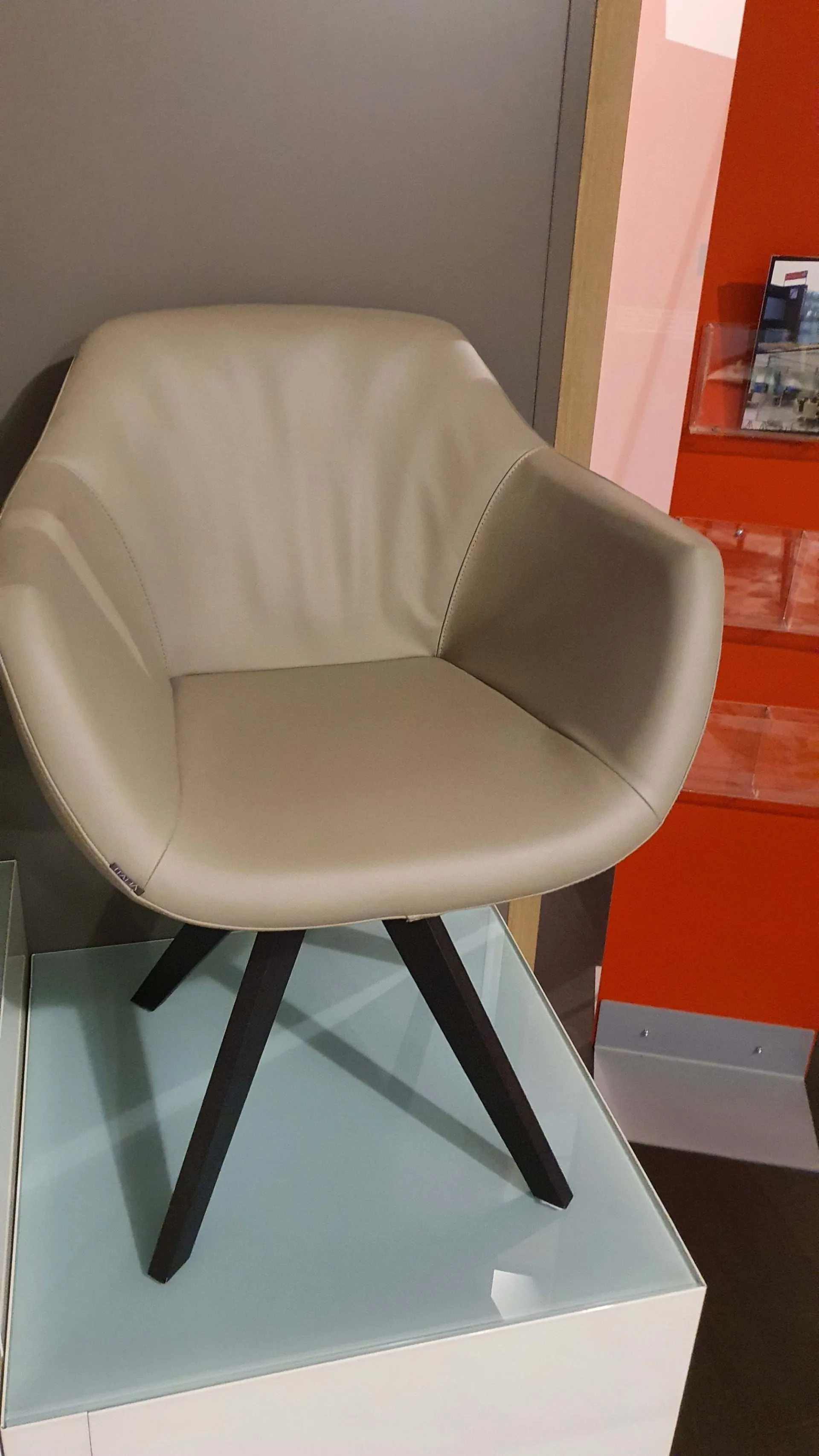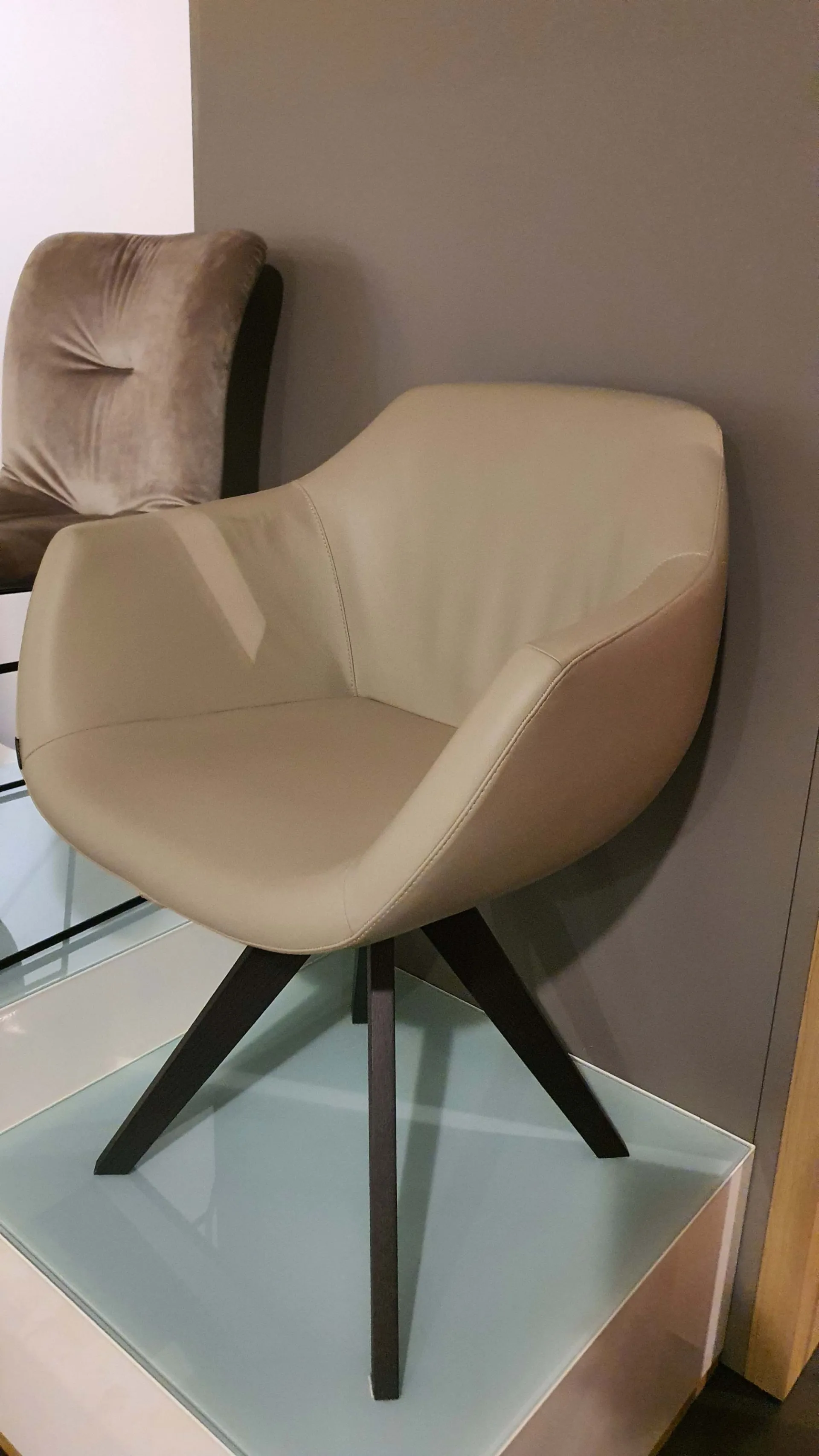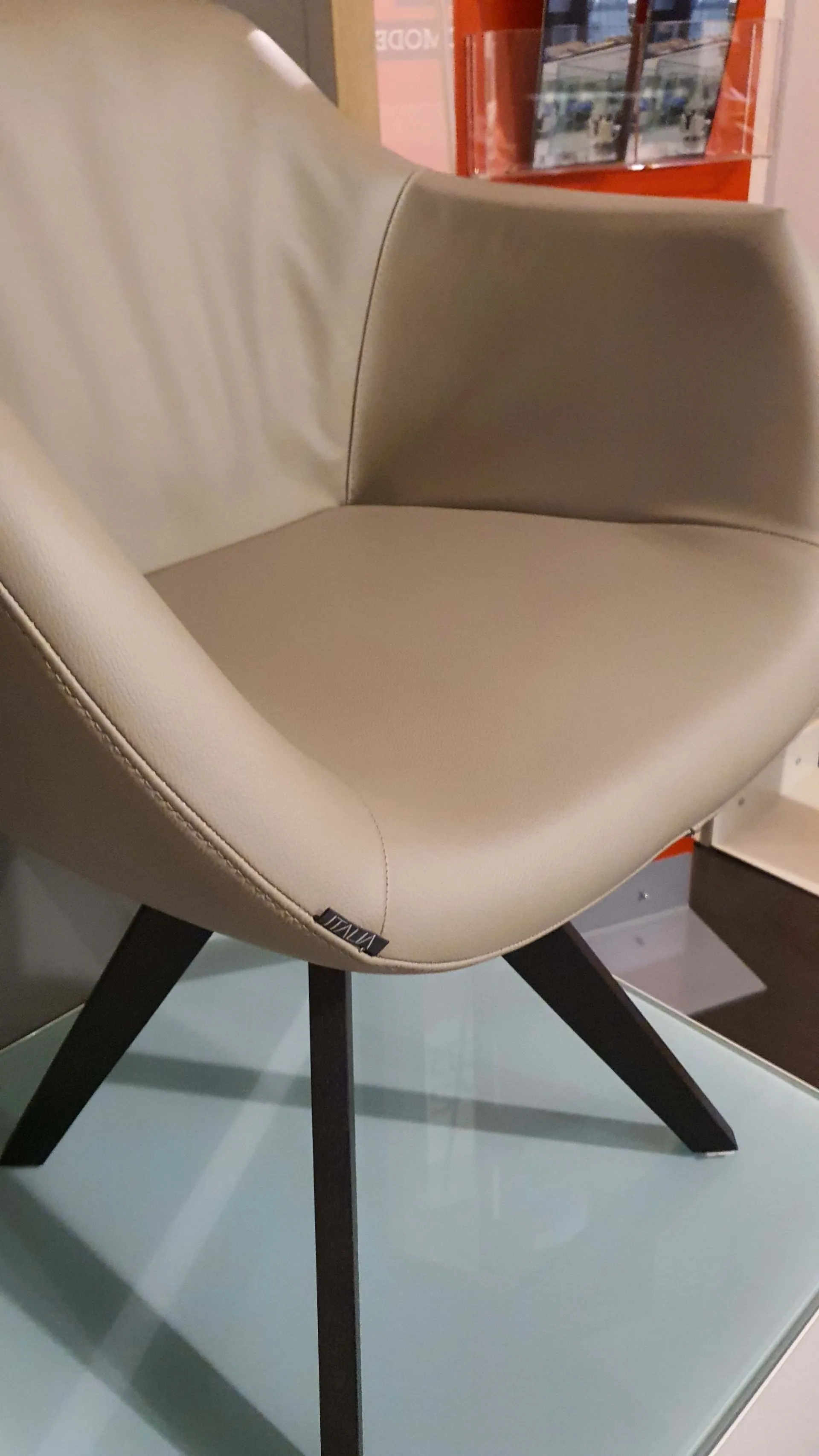 Poltroncina mod.DELIA in pelle vera colore crema caffè con gambe in legno massello di rovere wild carbone