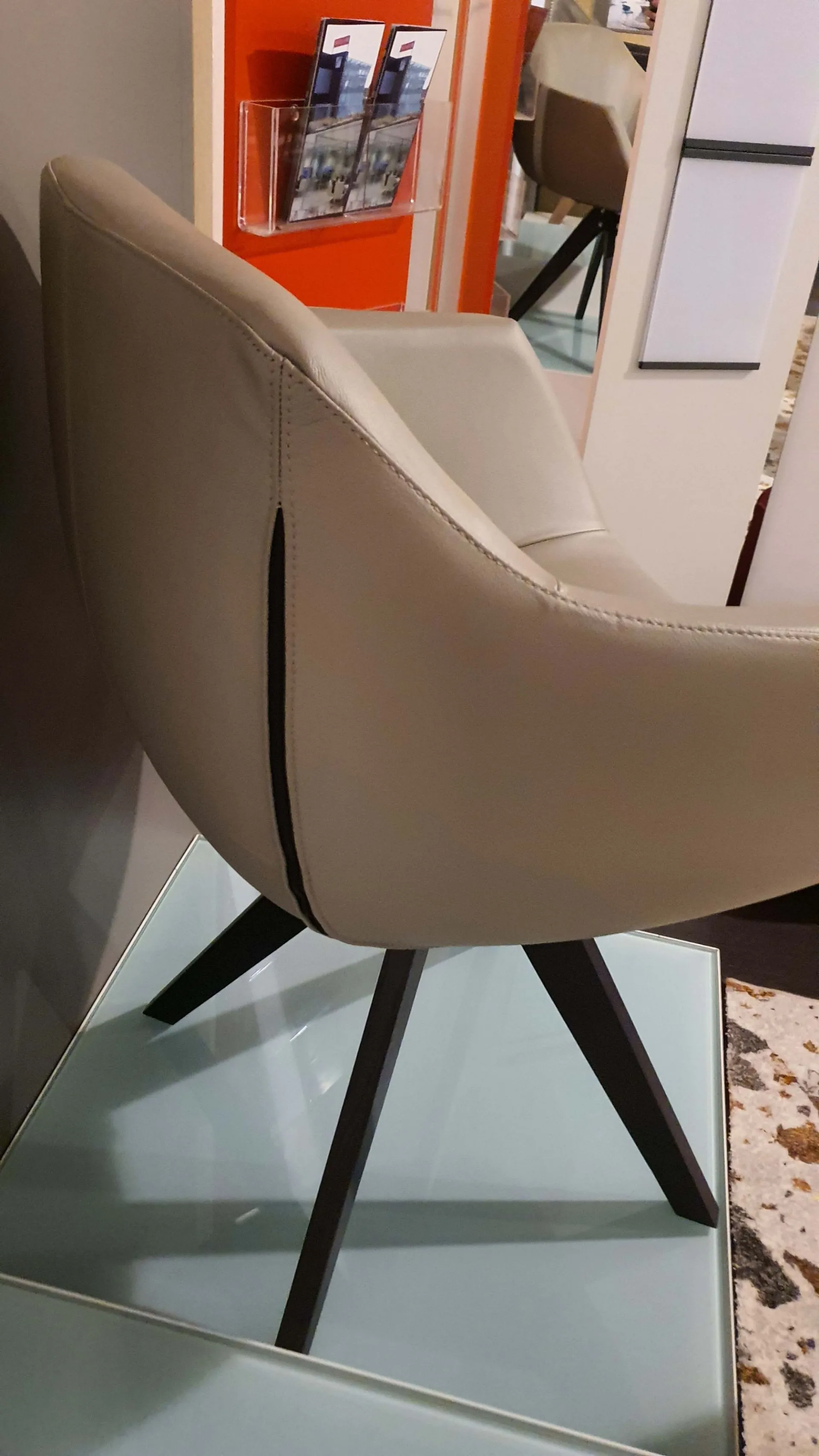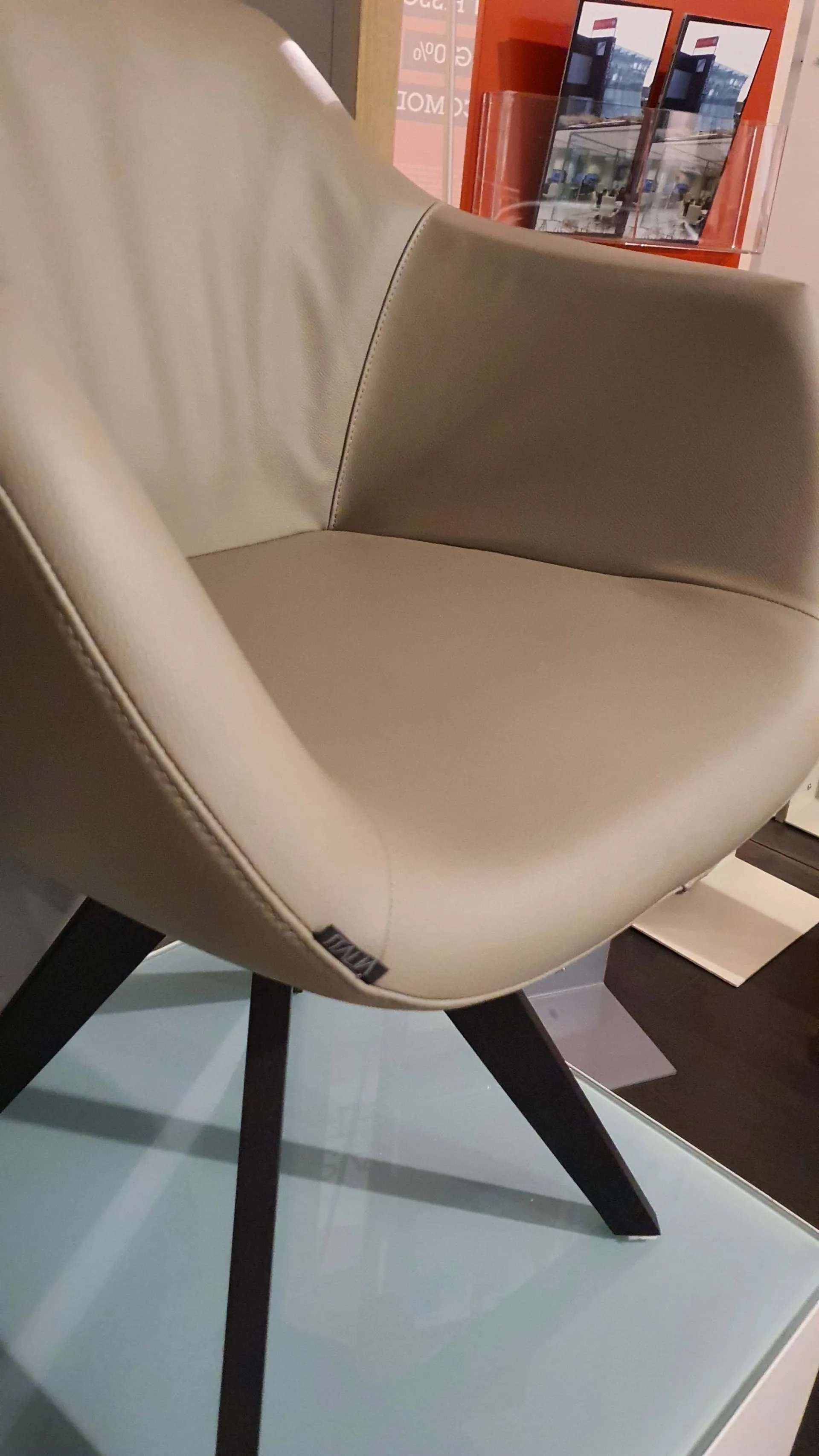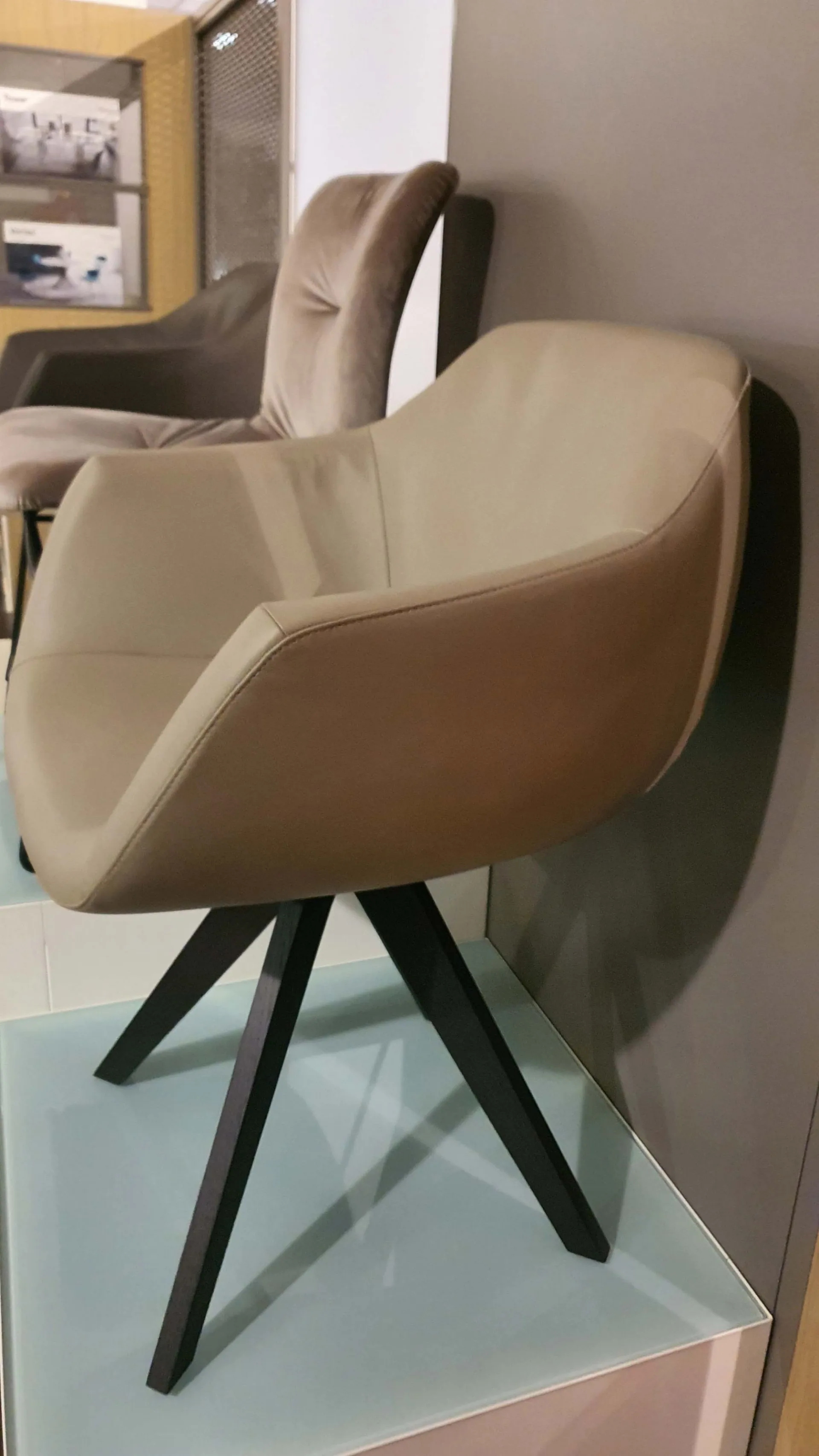 Poltroncina mod.DELIA in pelle vera colore crema caffè con gambe in legno massello di rovere wild carbone