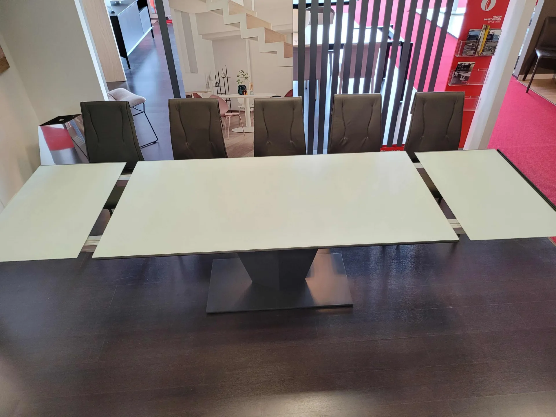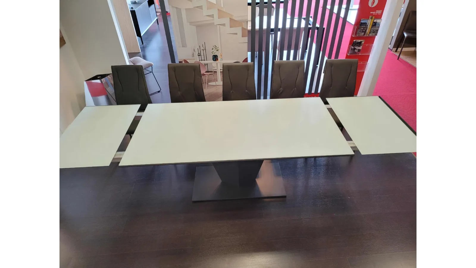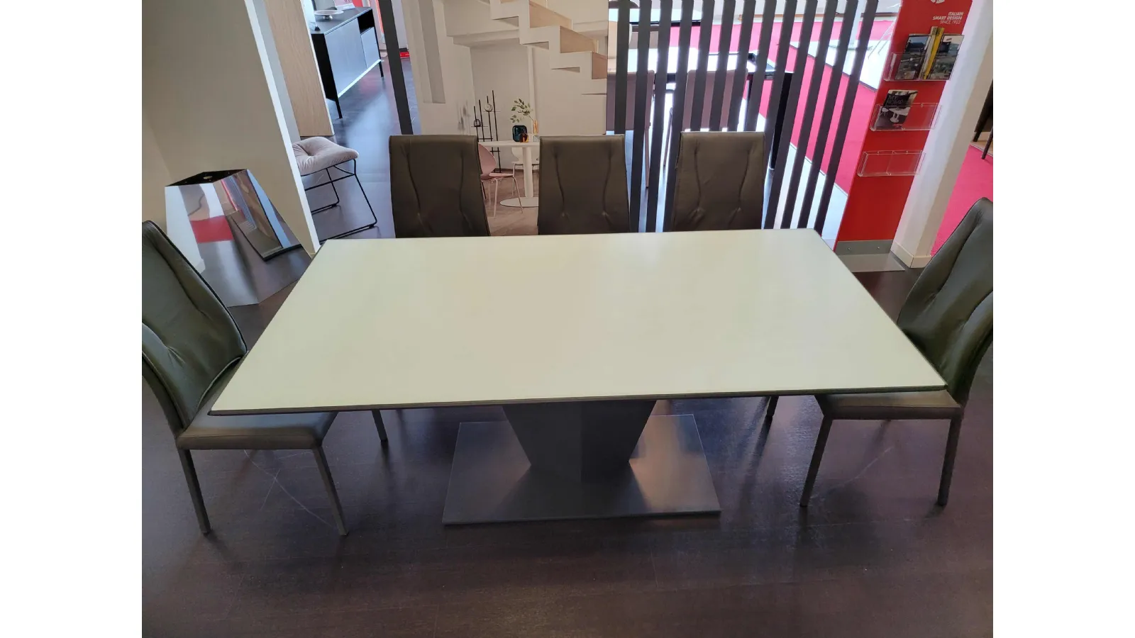 Diamante è un tavolo innovativo dai contenuti originali. Quasi un pezzo scultura che diventa protagonista del living contemporaneo. Linee sfaccettate donano un carattere futurista e di grande personalità distintiva. La struttura è in metallo VERNICIATO GRAFITE mentre il piano è in cristallo anti impronta di prima qualità COLORE BIANCO.