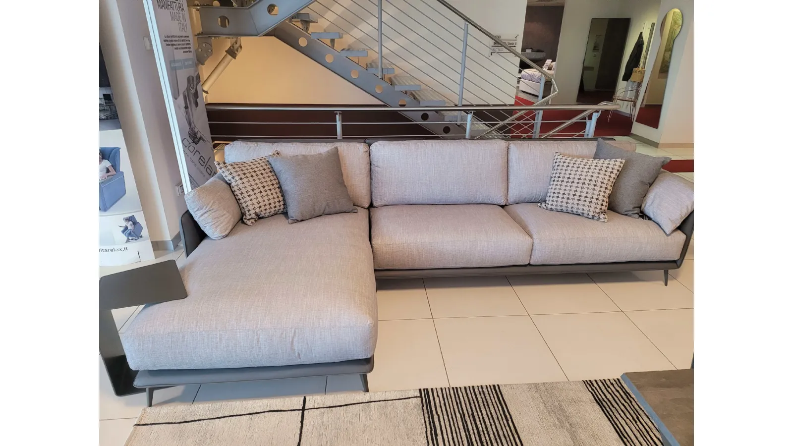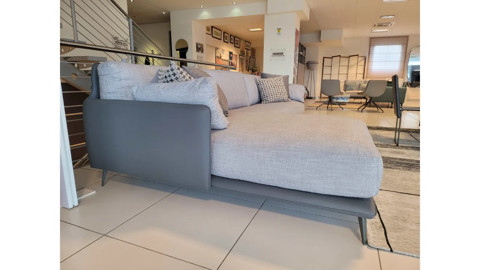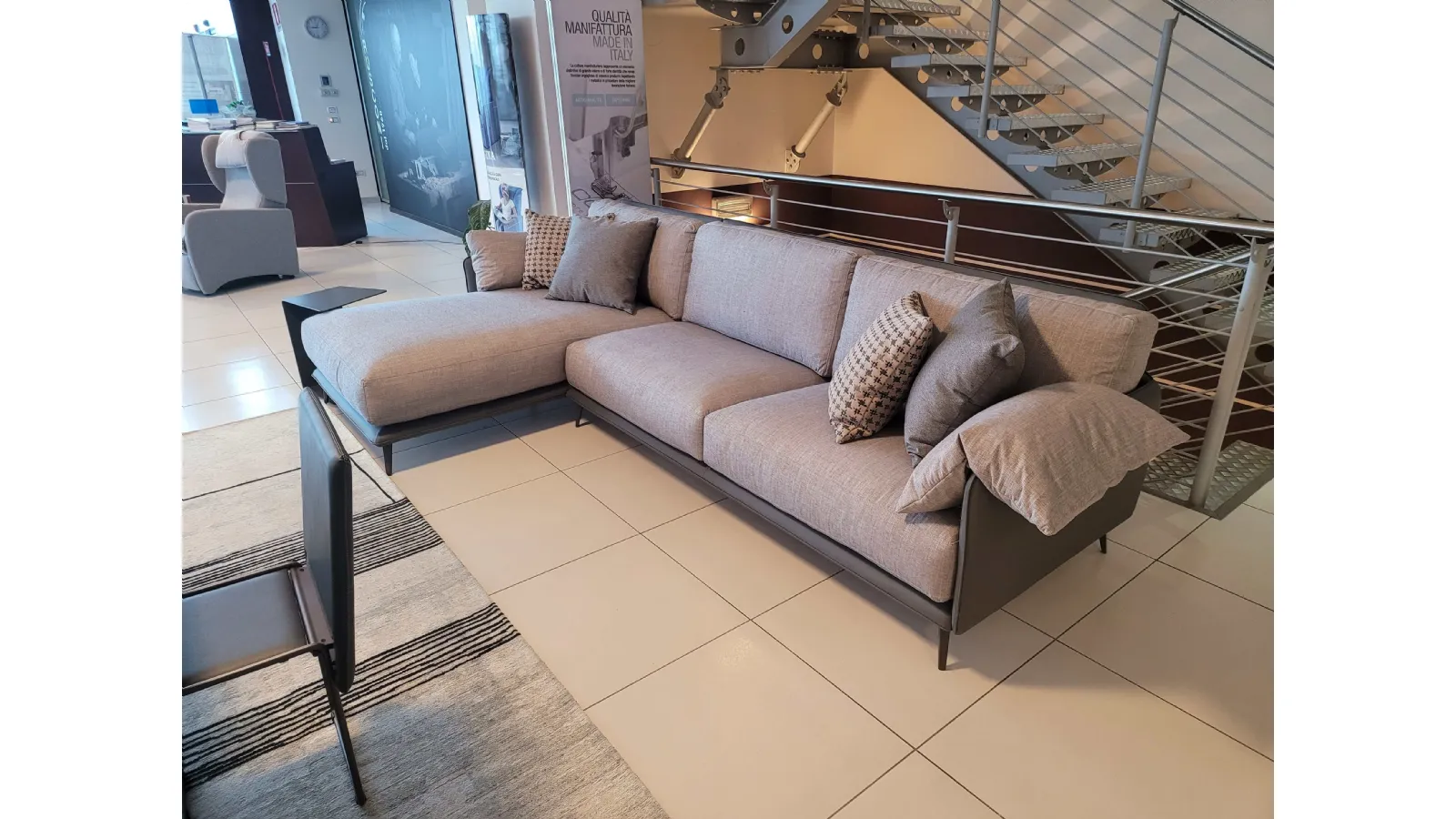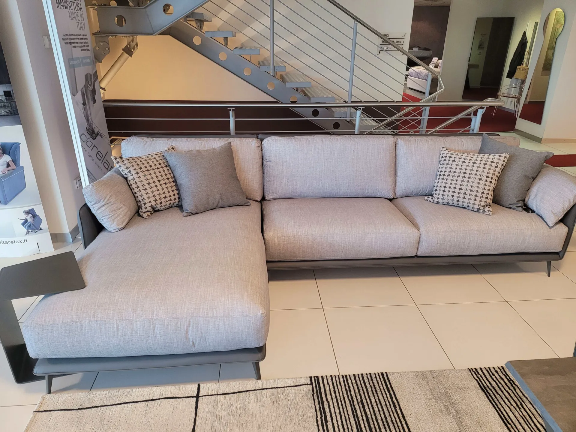 Il tessuto di rivestimento è pregiato, antimacchia ed idrorepellente di colore grigio chiaro mentre la scocca esterna è in ecopelle colore grigio.