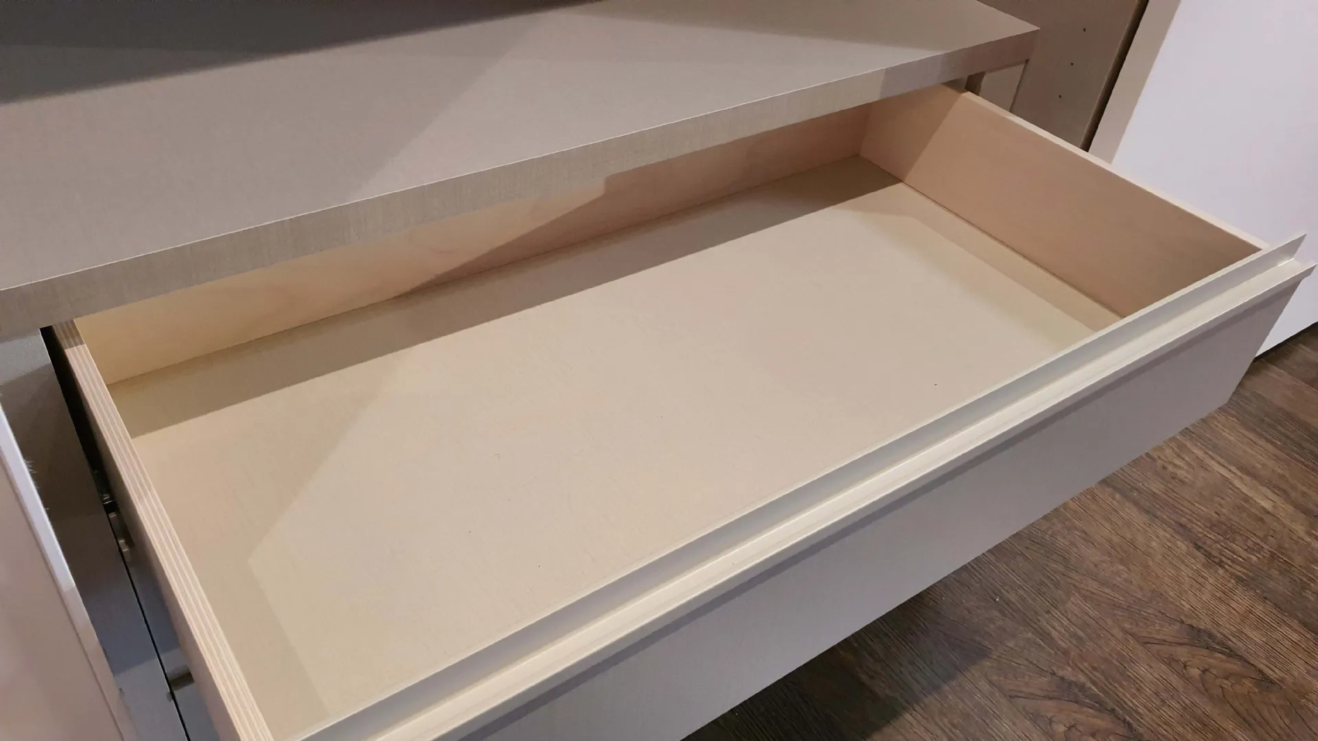 L’armadio DOMINO è pregiato ed artigianale, interamente in tamburato con struttura in legno di prima scelta, sponde cassetti in multistrato di betulla sbiancato, guide ammortizzate, vernici atossiche, antistatiche ed antingiallenti.