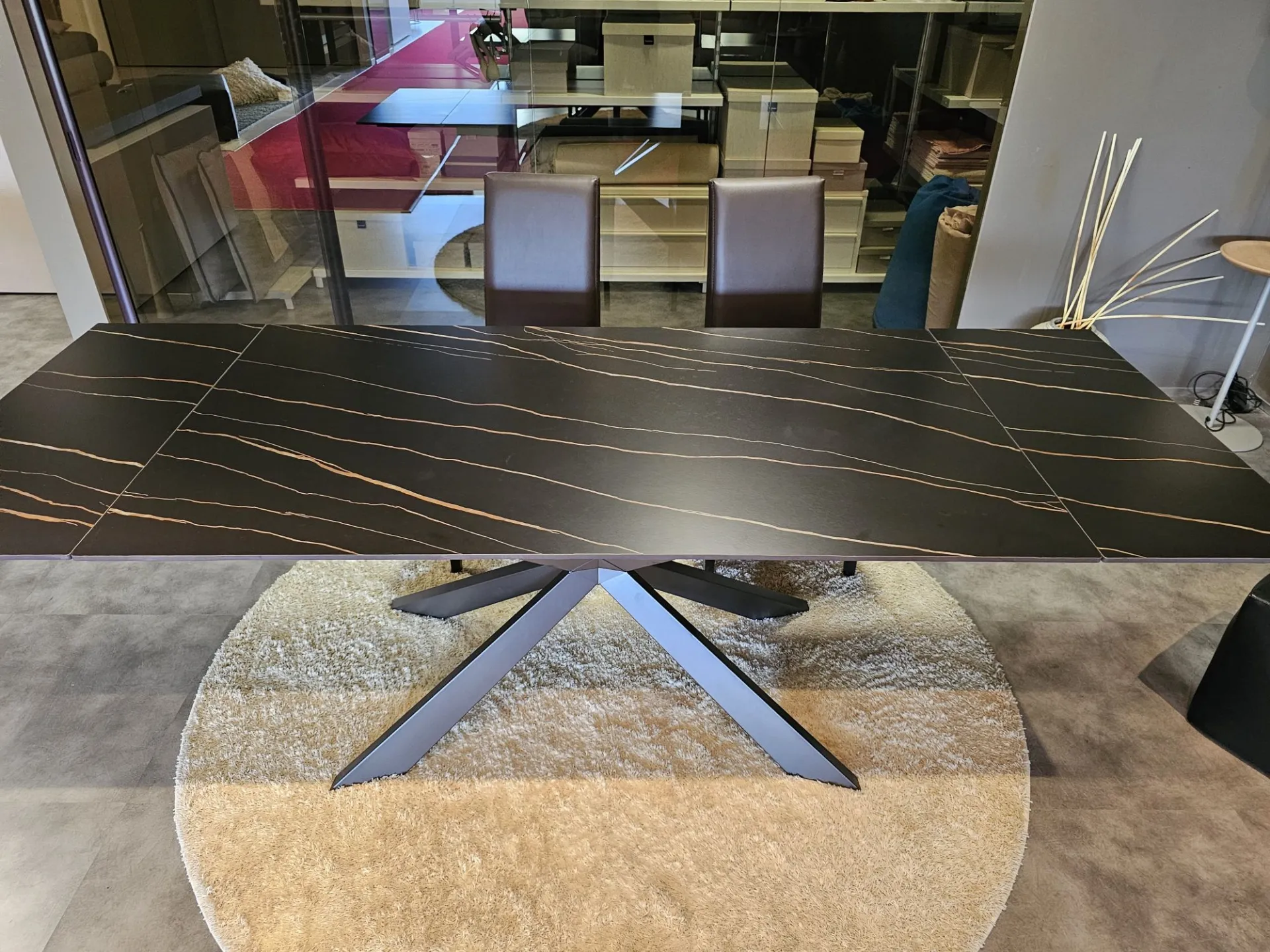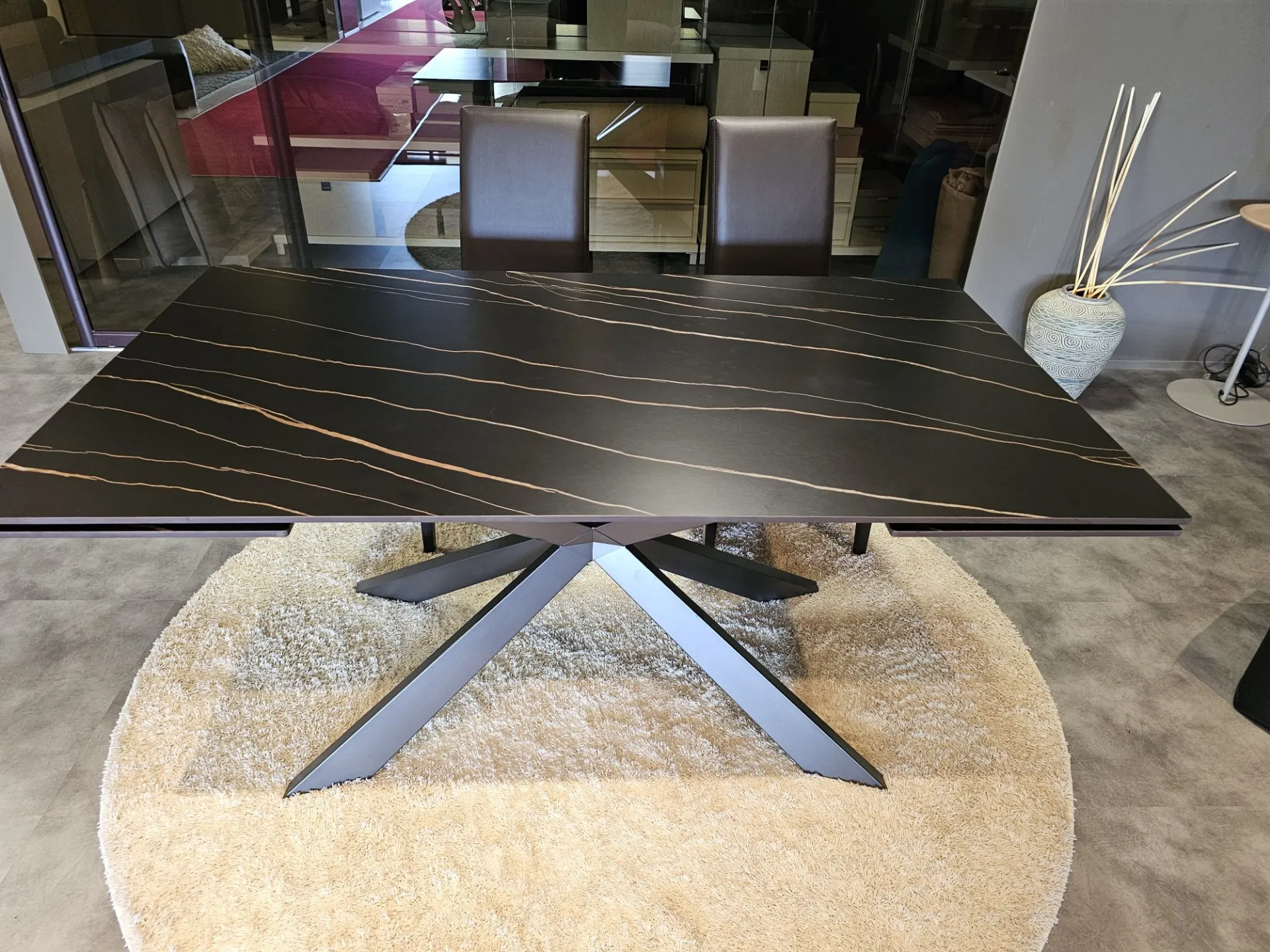 Tavolo allungabile EXCELSIOR con piano in ceramica CC13 NERO GAUDI OPACO e basamento in metallo MT98 GRAFITE OPACO