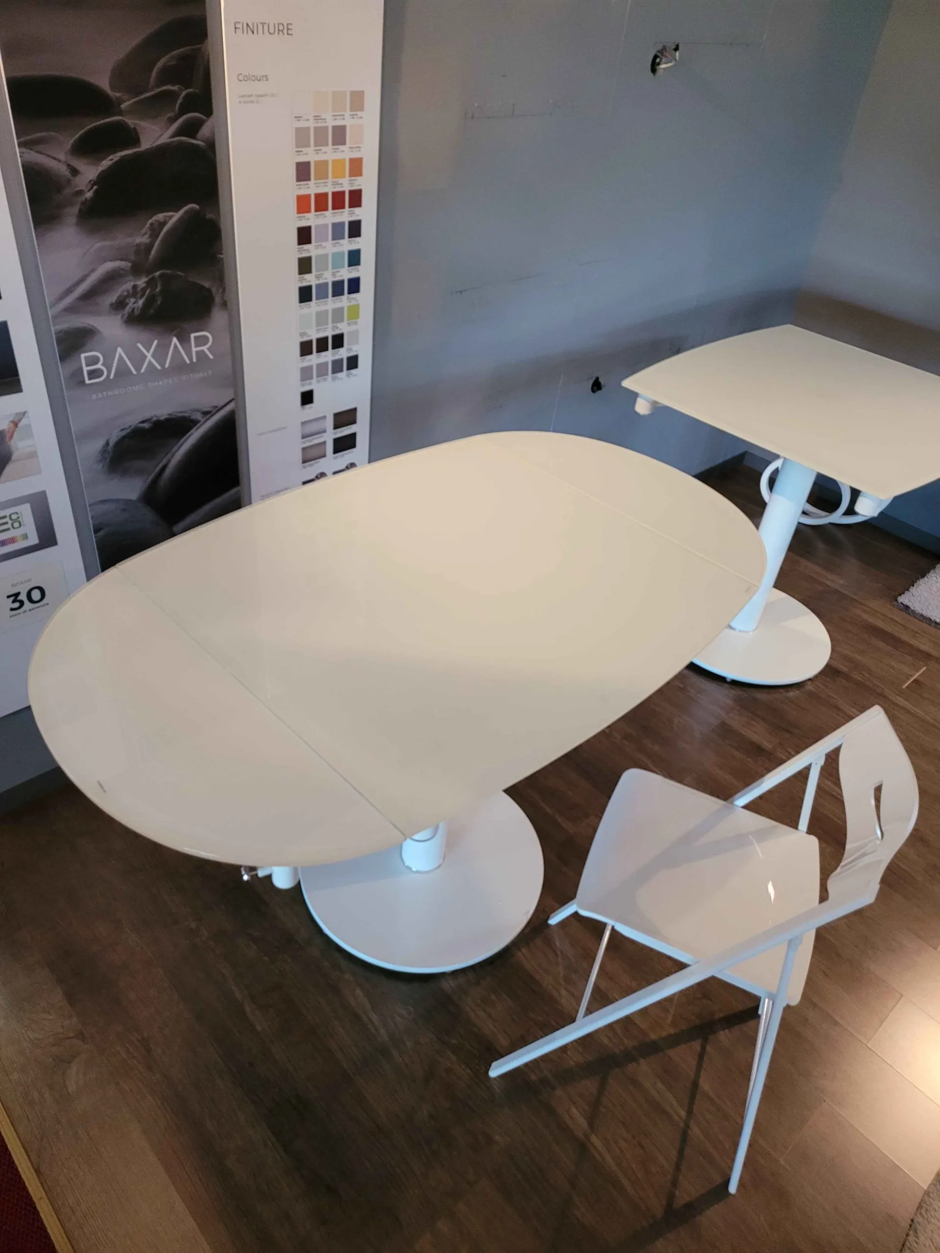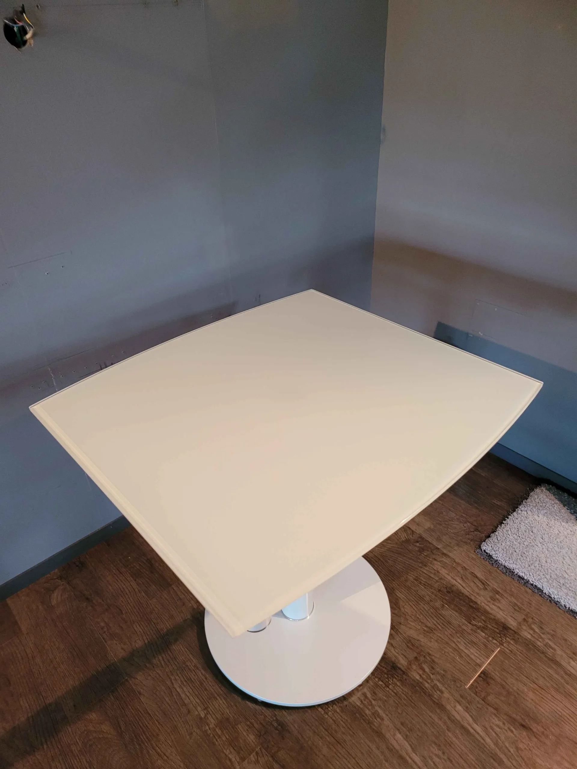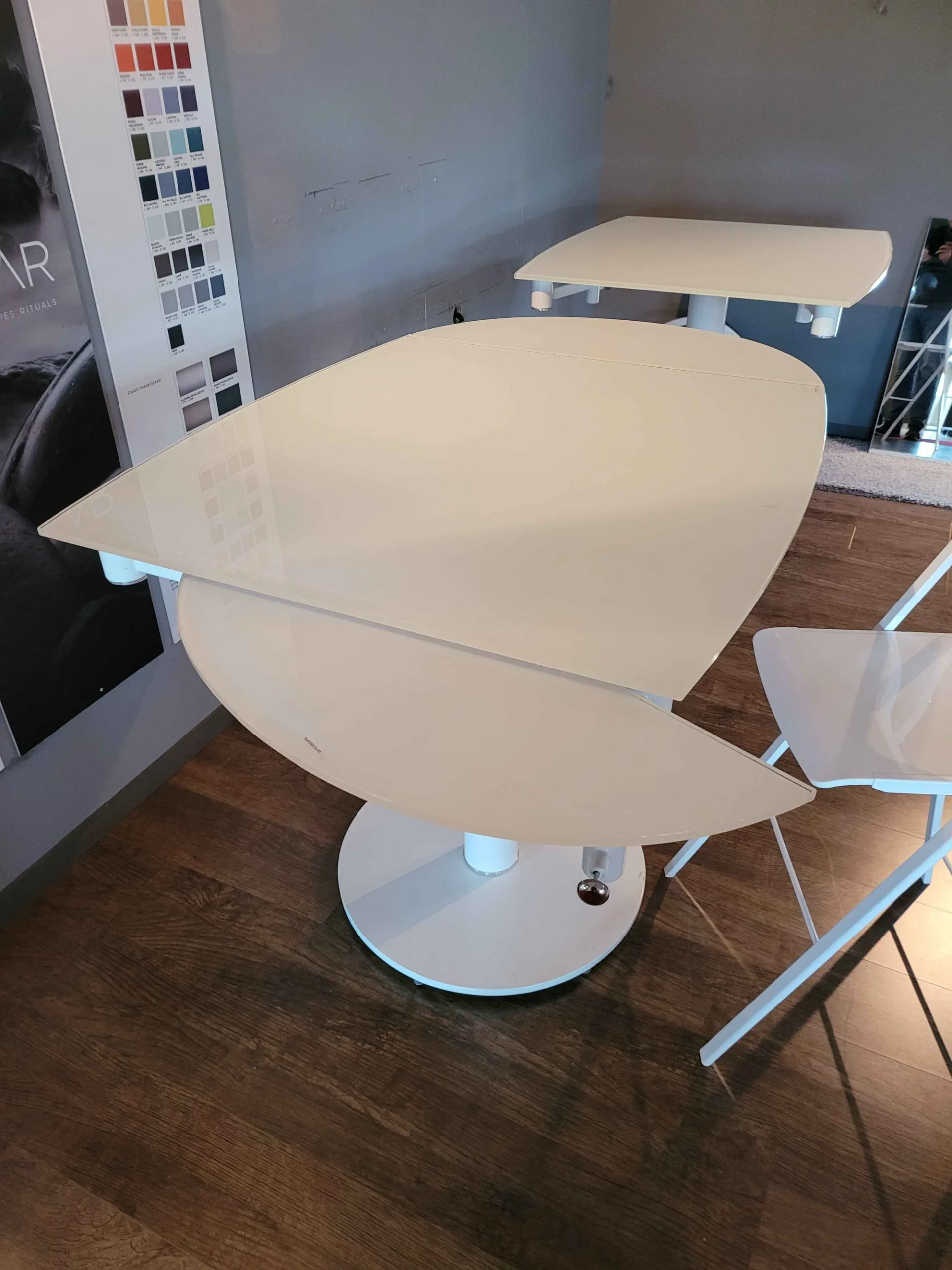 Tavolo EXTRA piano in cristallo lucido bianco, struttura bianco opaco, cm. 94x100(130-160)