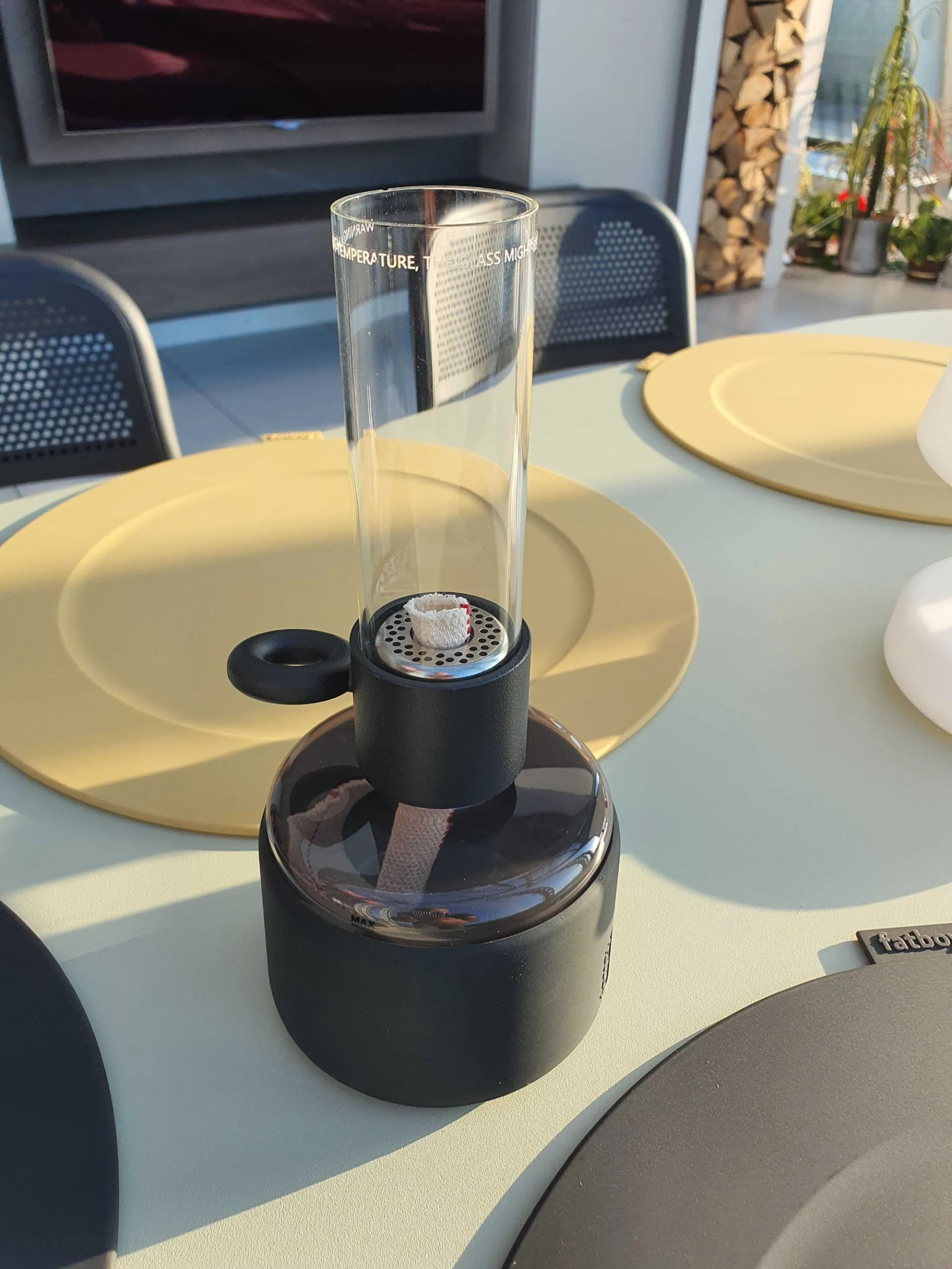 Flamtastique XS è alimentata da olio per lampade. Grazie alla sezione trasparente del suo piedino puoi sempre vedere esattamente quanto olio è rimasto. E il suo rivestimento in silicone opaco rende questa lampada a olio in vetro super resistente.