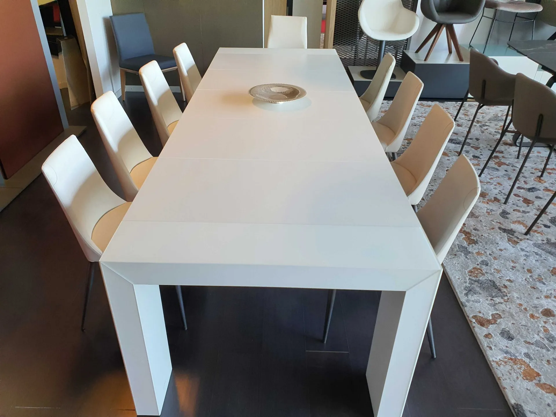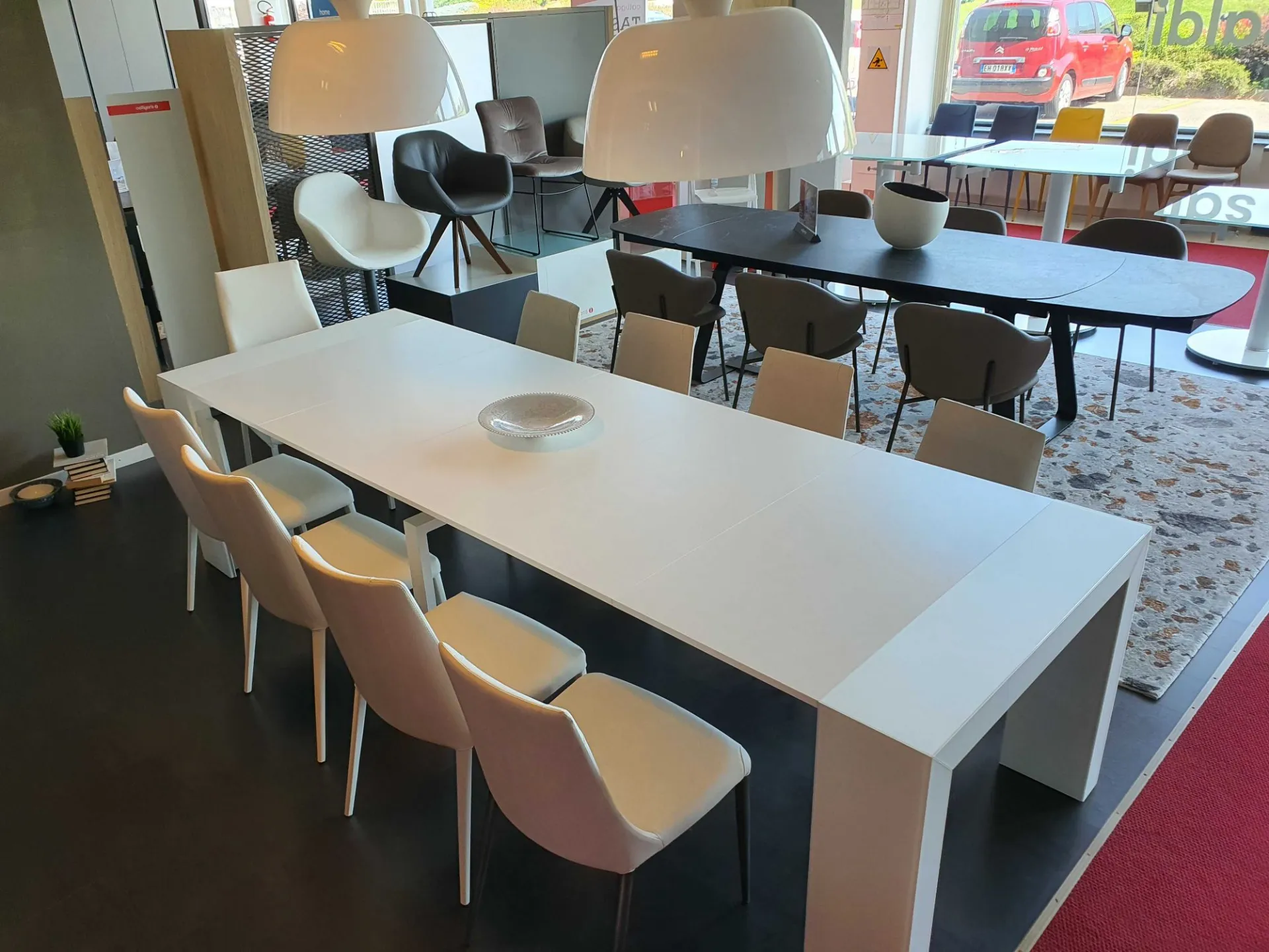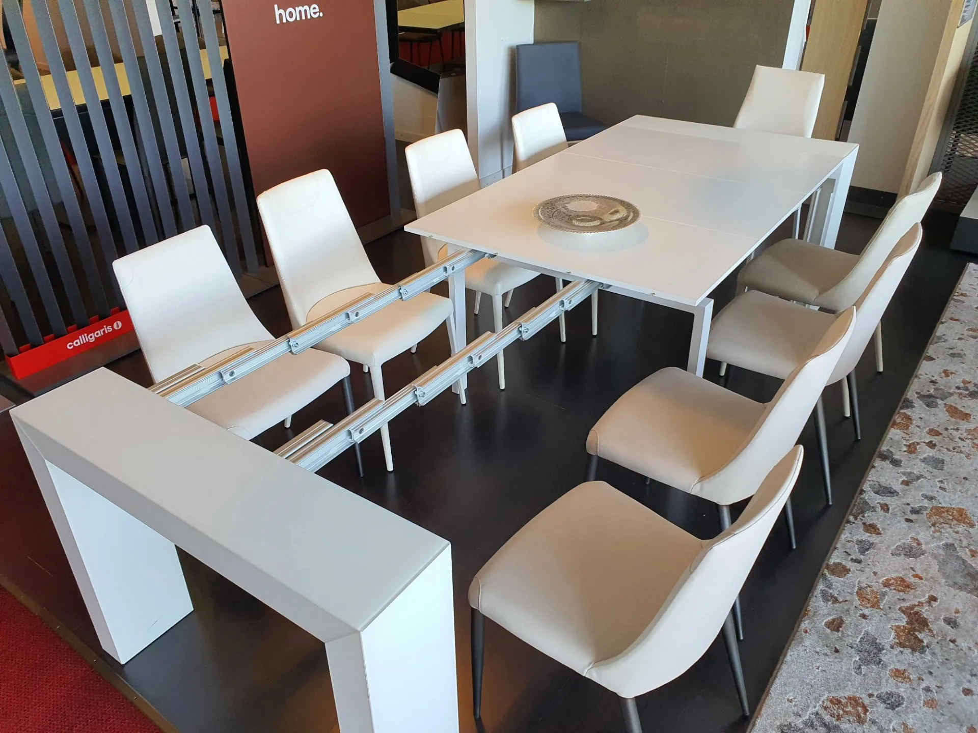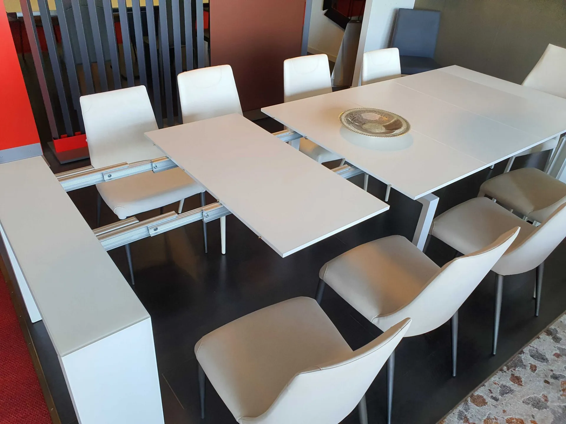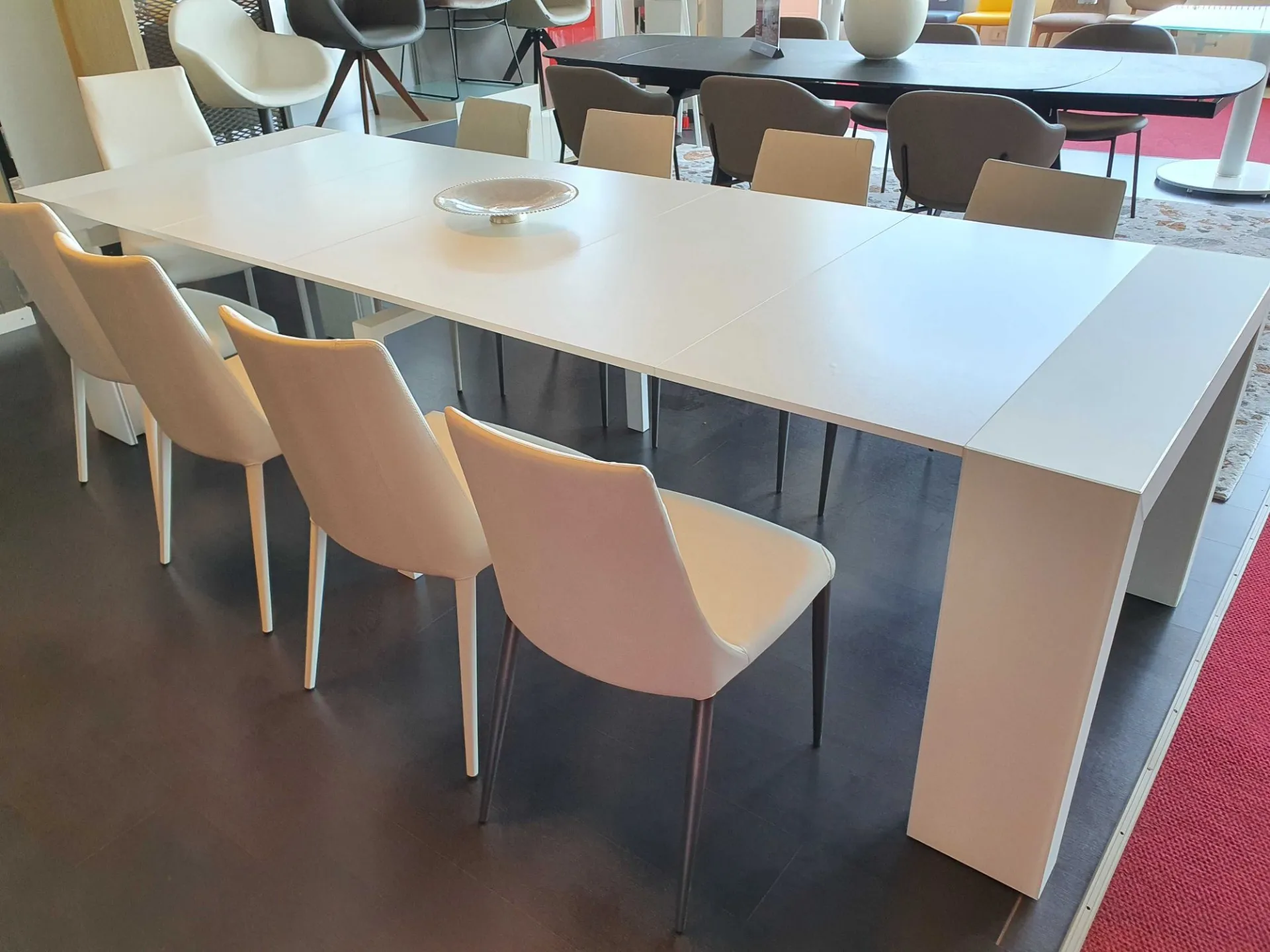 Consolle allungabile GLASS 100X43 vetro antimpronta bianco, allunghe in nobilitato bianco opaco, 12 posti cm 100x43(93-143-193-243-293) prof.x75h.