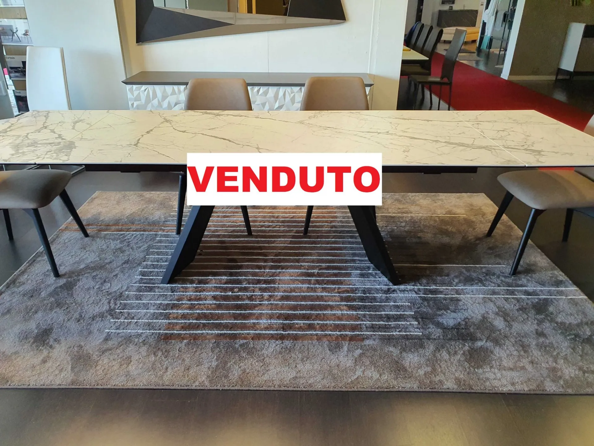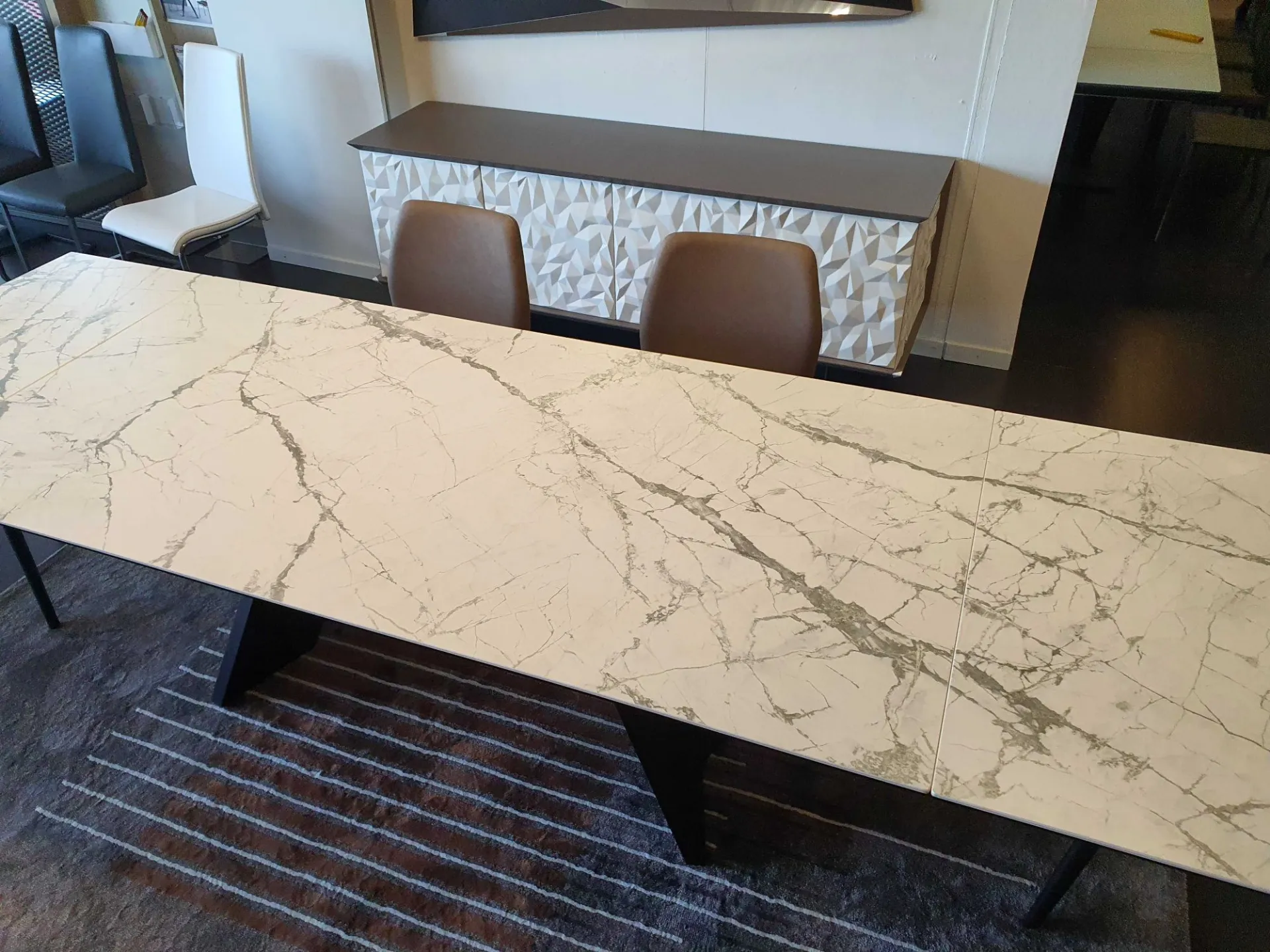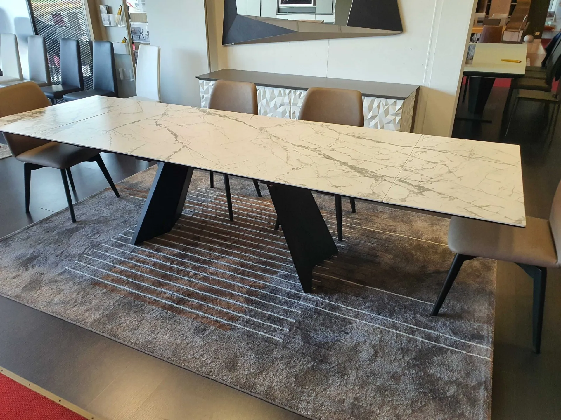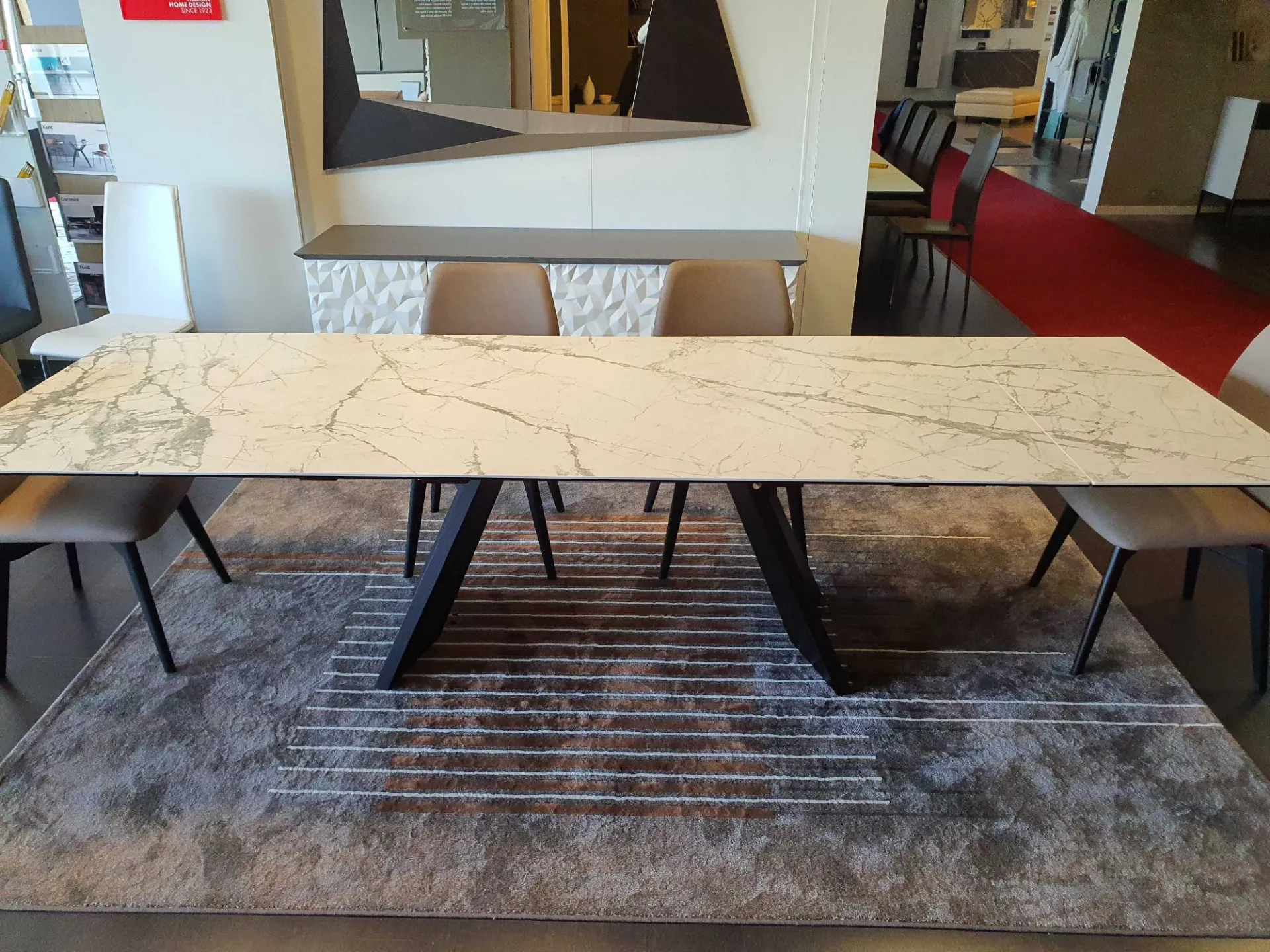 Tavolo mod. Icaro CS4114-R 200 con piano P9C ceramica Marmo Silk White, gambe P15L frassino nero, cassonetto P15 metallo nero opaco, cm. 200(300)x100prof.