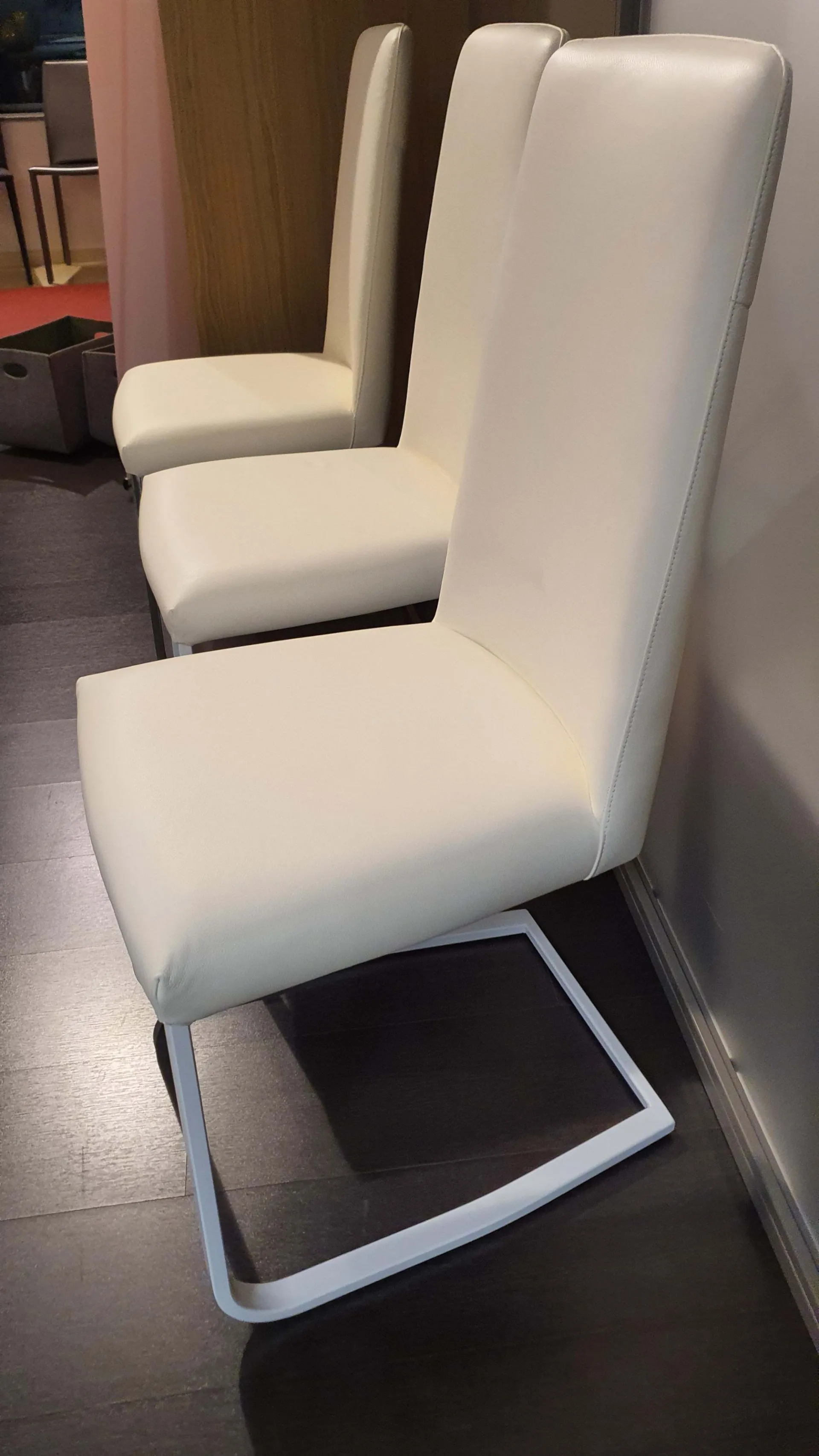 Sedia mod. JAZZ in pelle bianca, gambe in metallo verniciato bianco