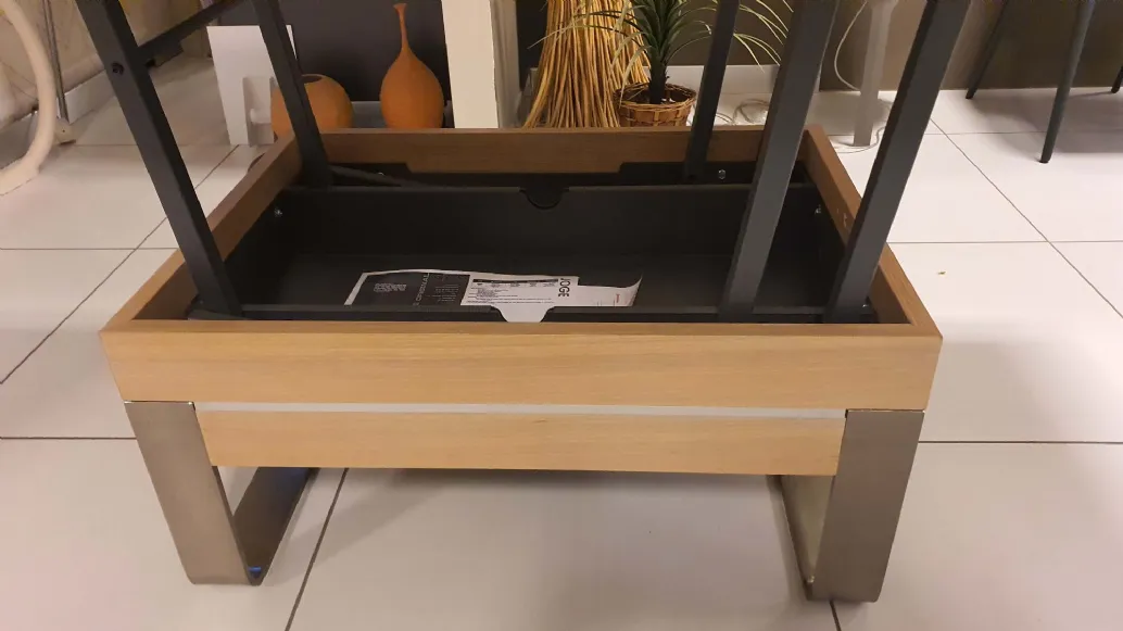 Tavolino trasformabile mod.JOGE che da tavolino da salotto diventa un comodo piano su cui pranzare o da utilizzare come postazione PC quando si sta comodi sul divano