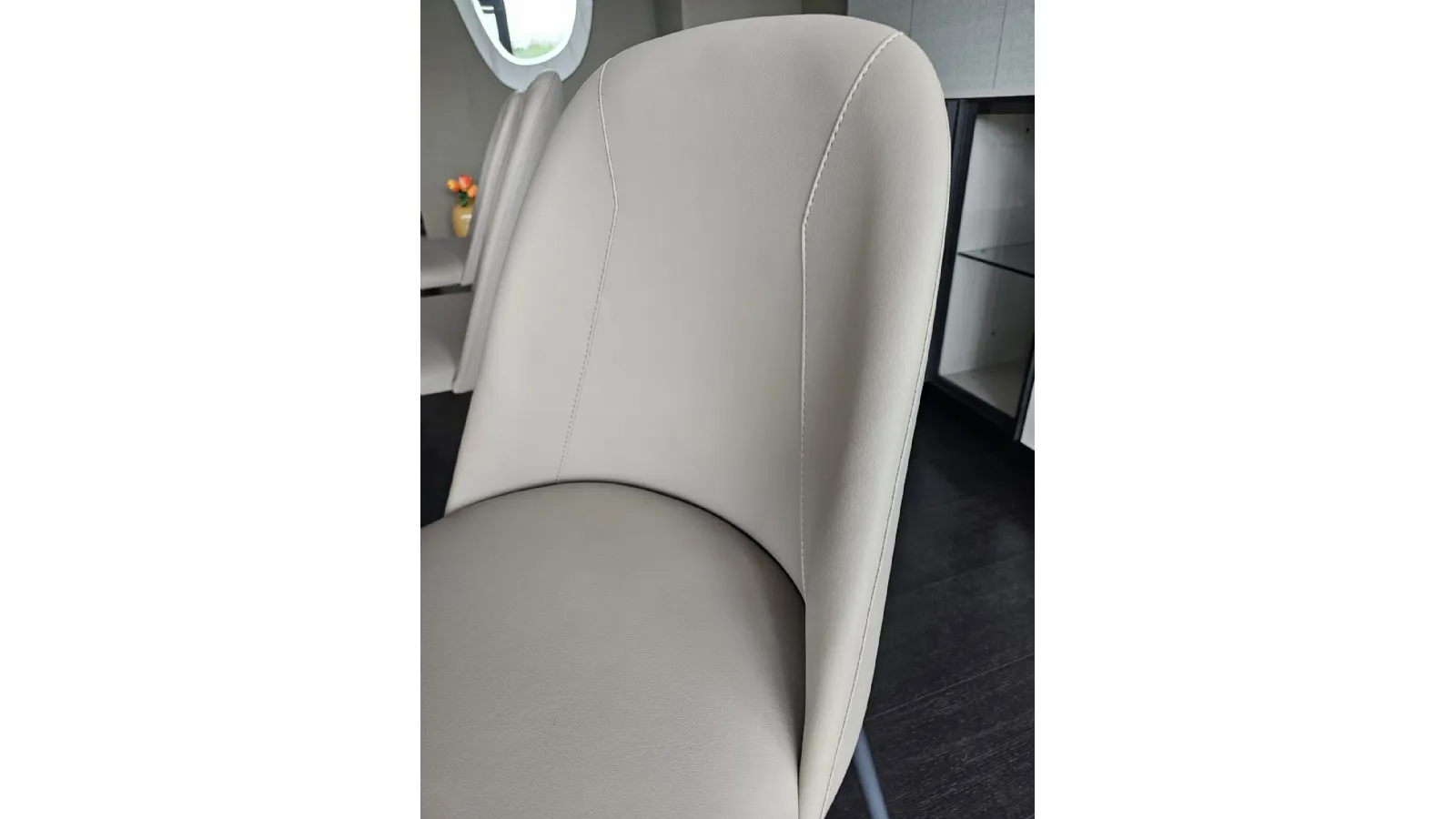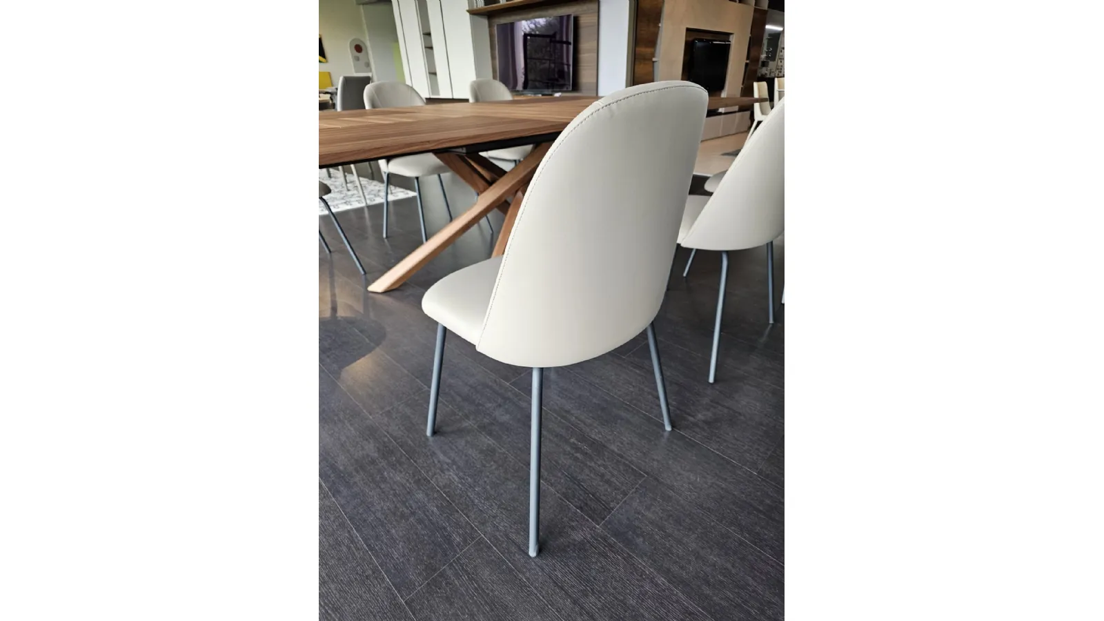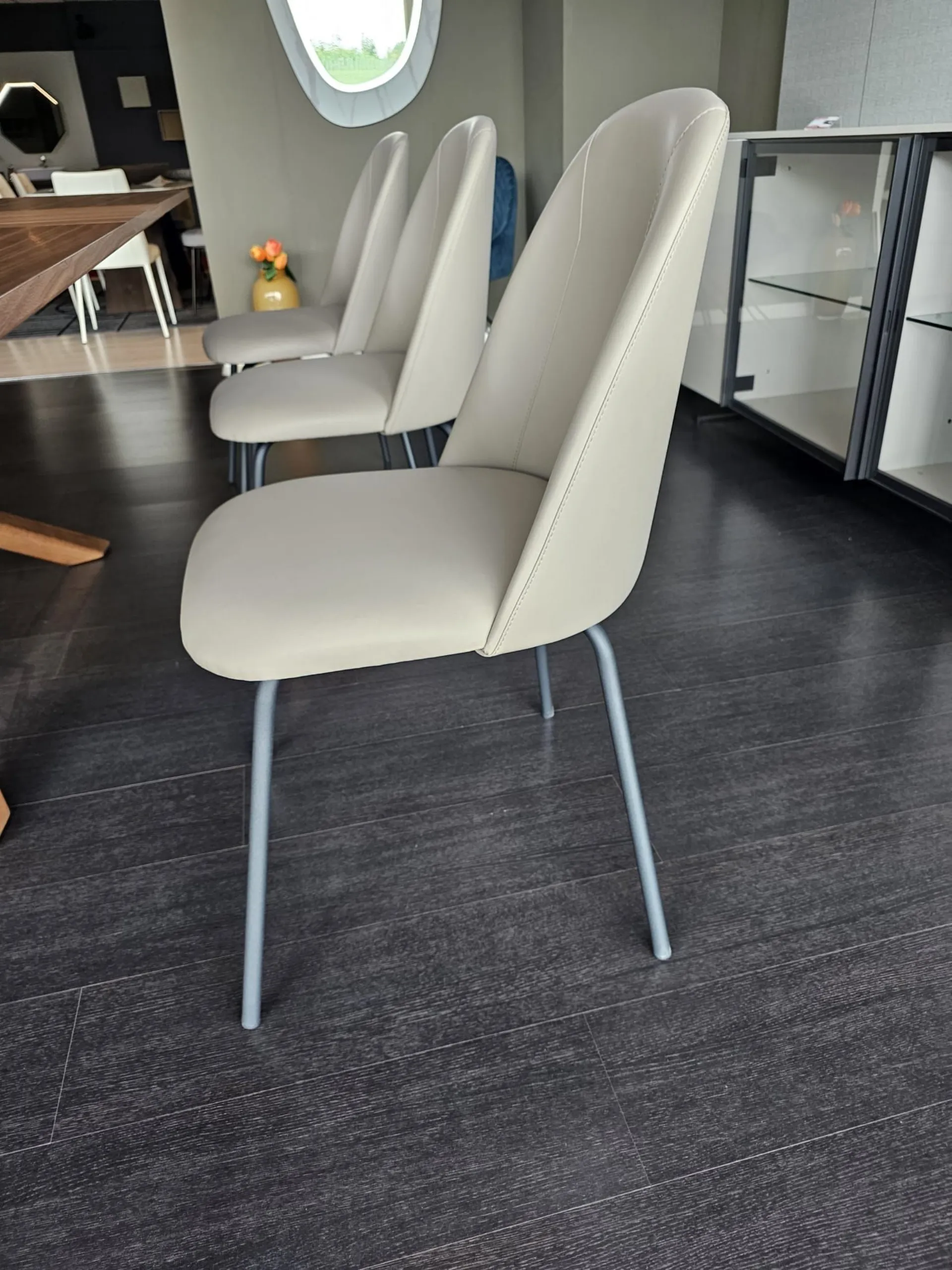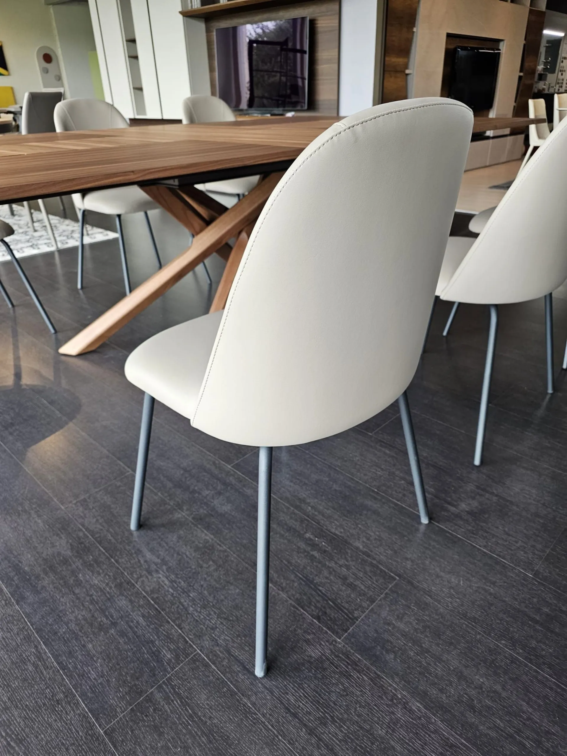 Sedia imbottita mod. JOIS con rivestimento in ecopelle Crema Caffè e gambe in metallo verniciato grafite opaco MT98