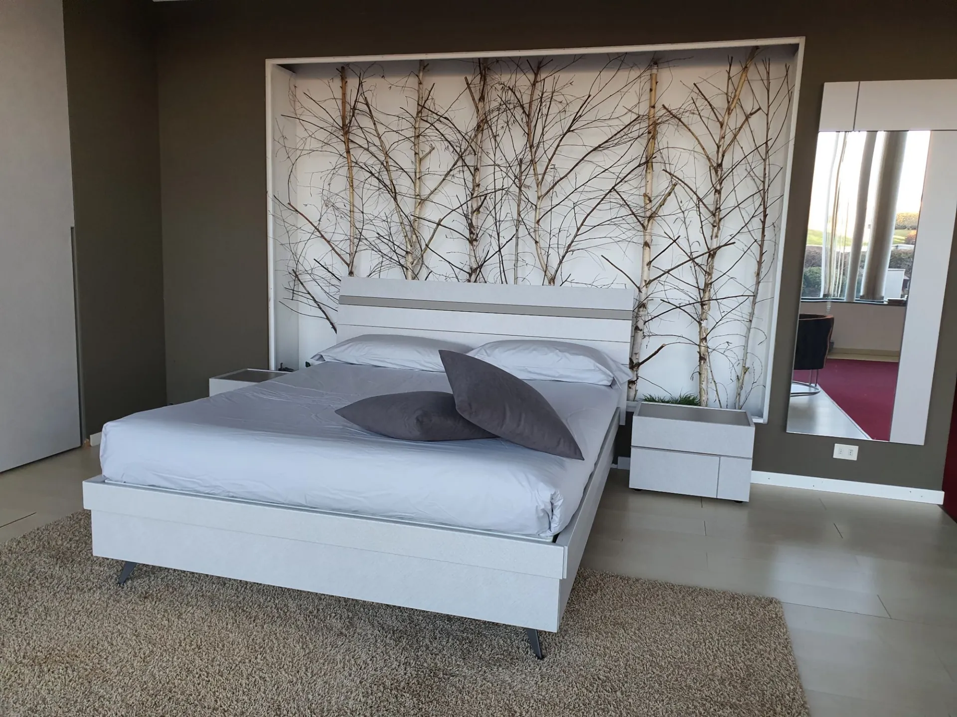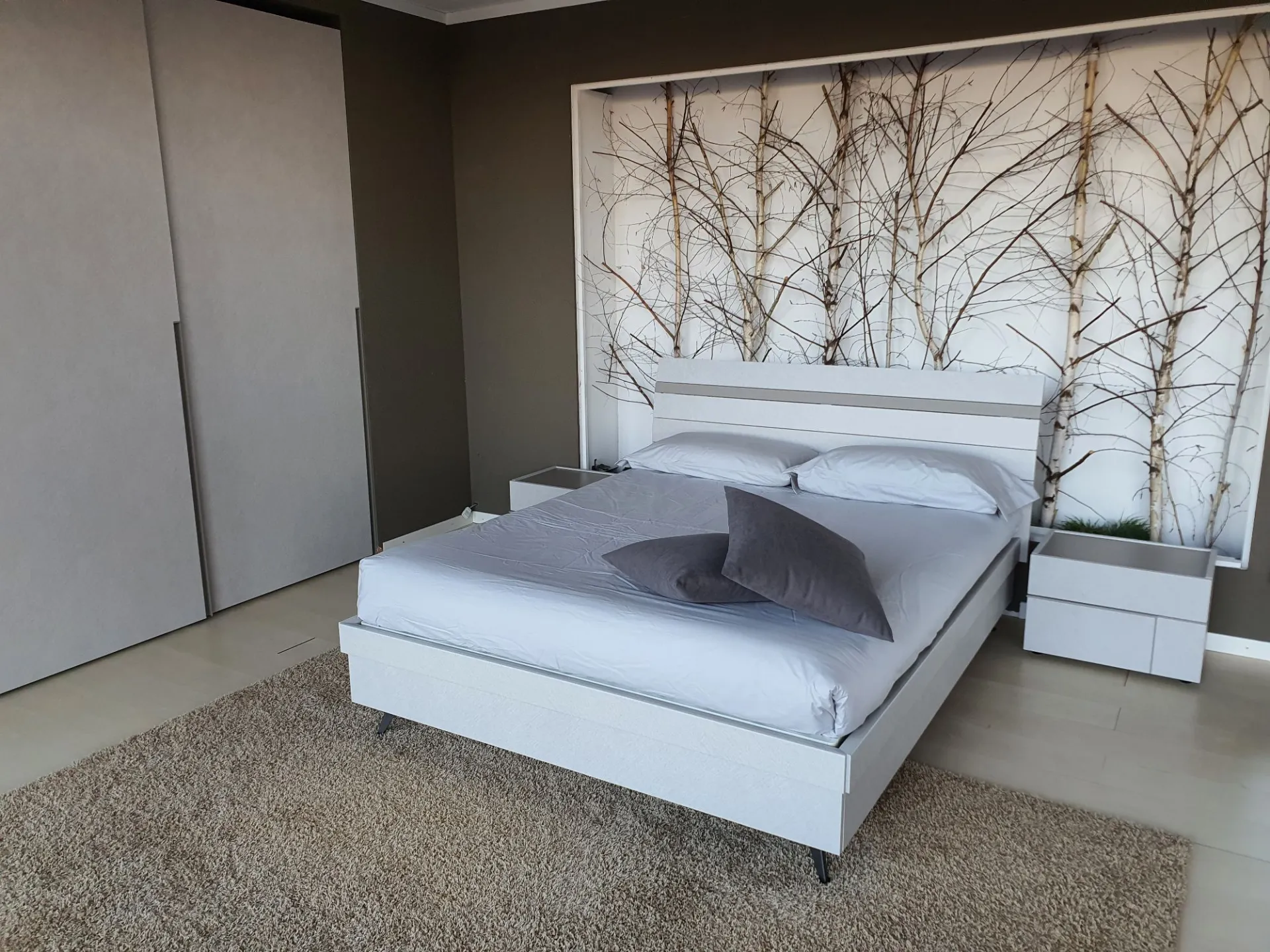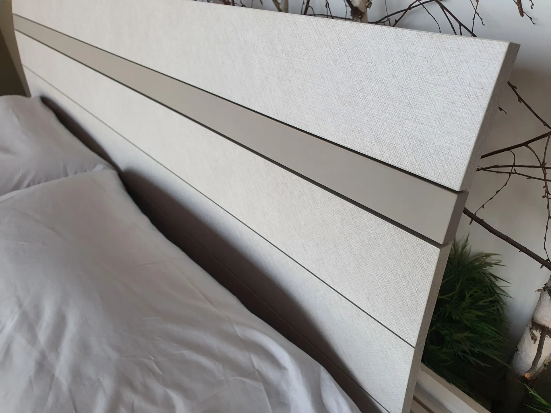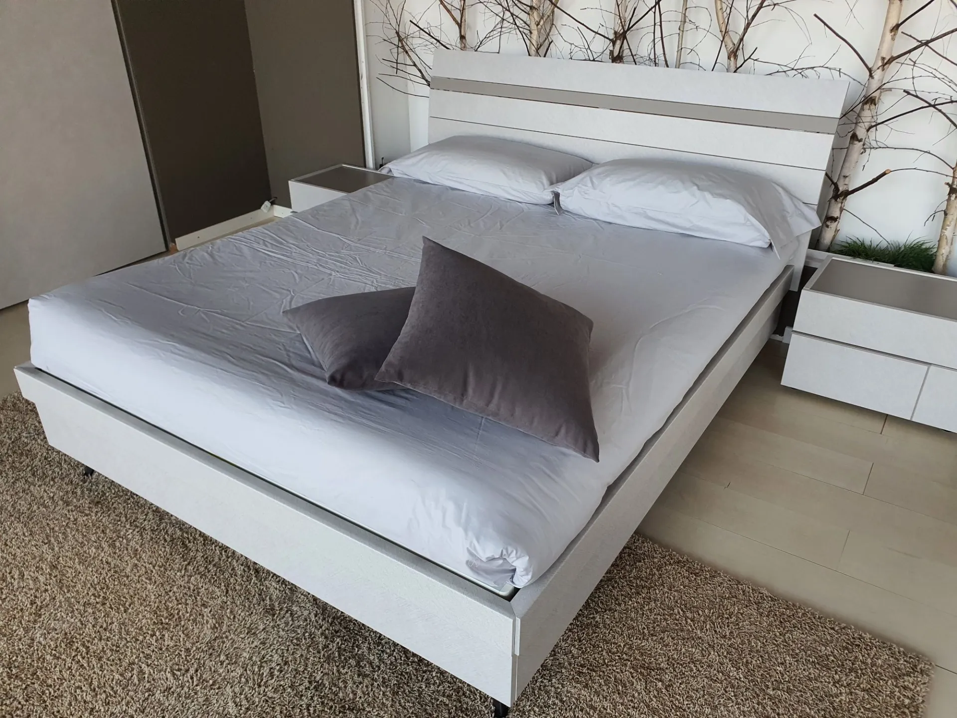 Il letto è sollevato da terra grazie ai piedini in metallo color antracite che permettono di pulire comodamente sotto al letto
