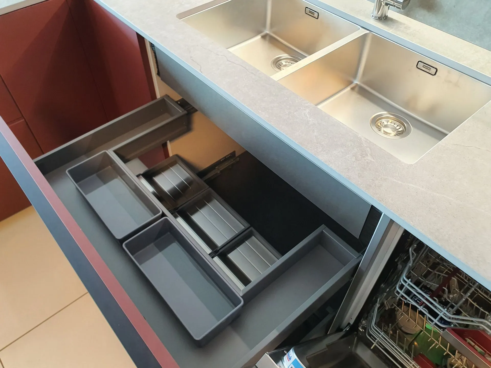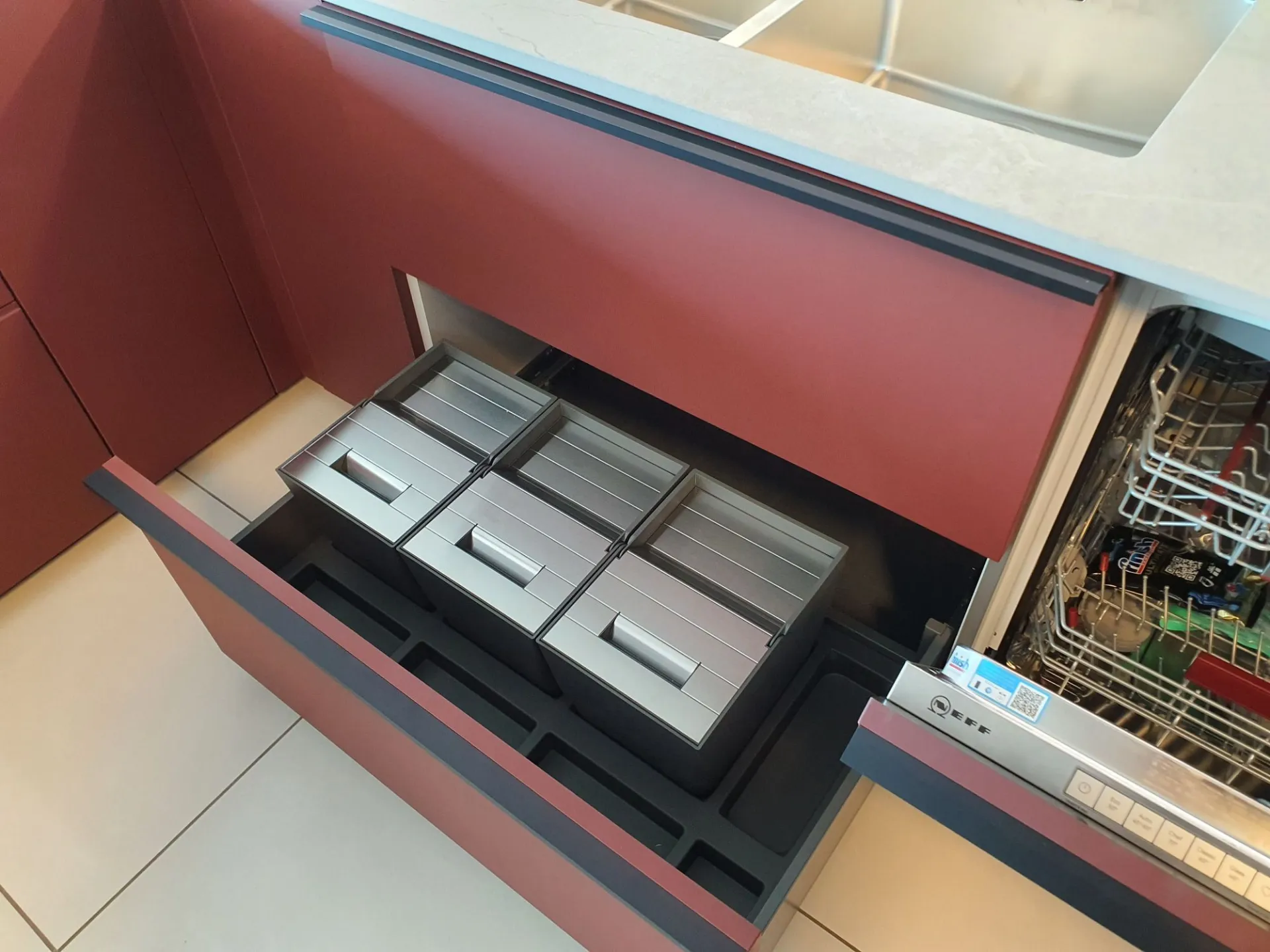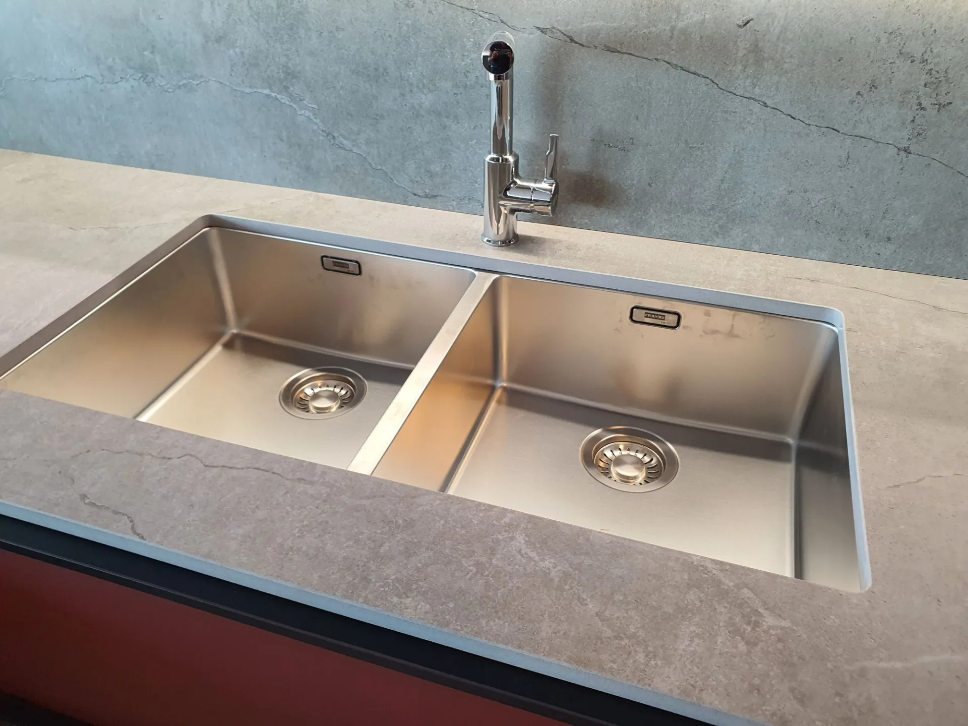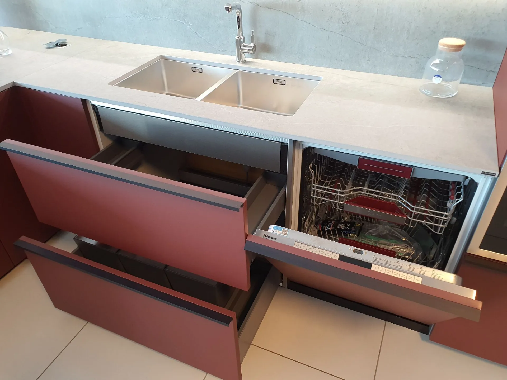 Struttura in colore GRIGIO NEUTRO 09 e TOP/SCHIENALE in Dekton sp.2 Soke