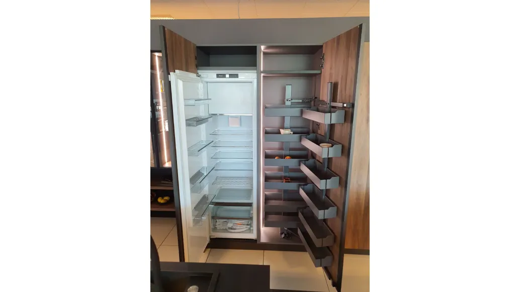 Struttura in colore grigio orion con frontali in 453 - KALI' NERO INGO, elementi effetto legno NOCE IMPERIAL 656 e top in Fenix sp.2 Nero INGO 453