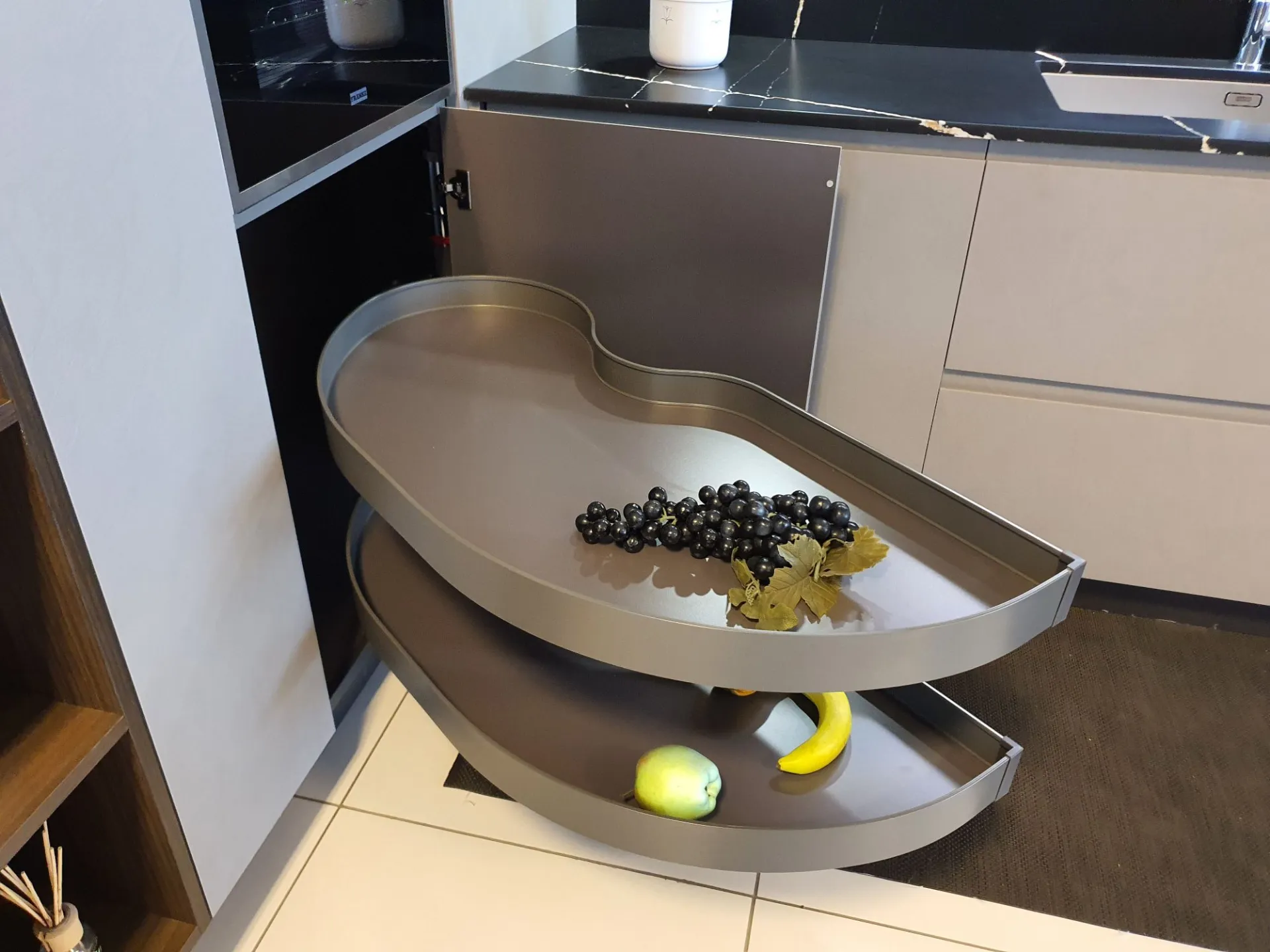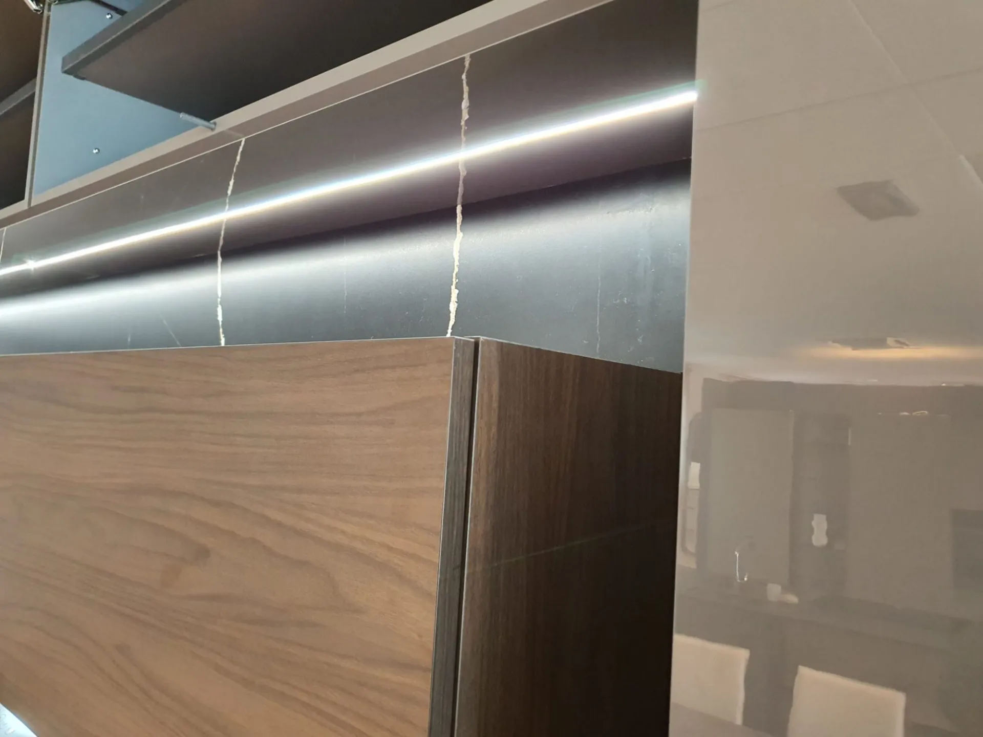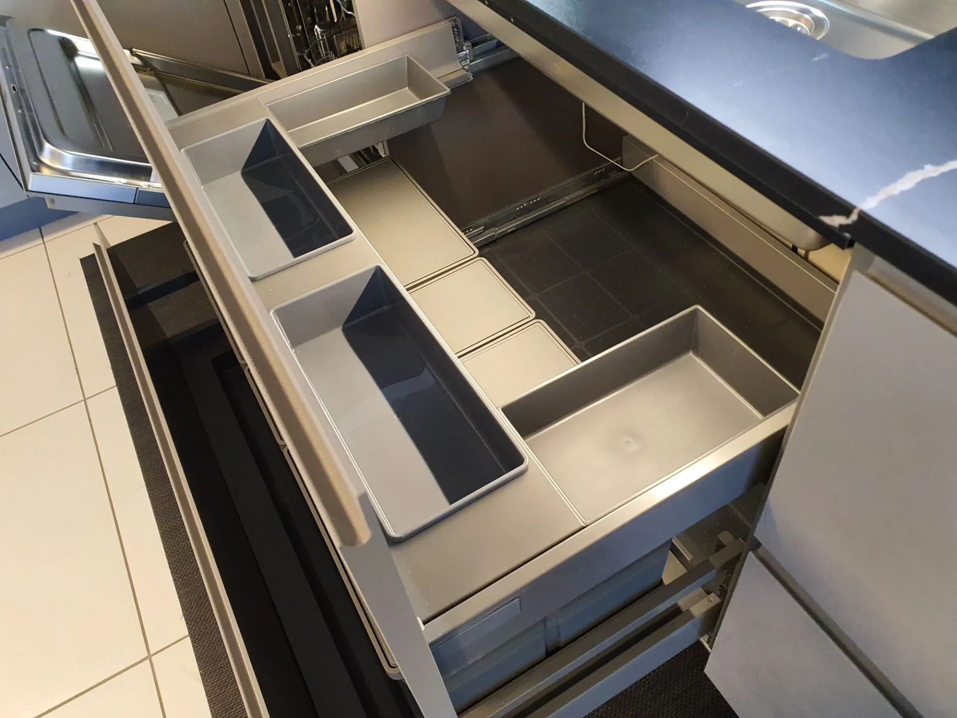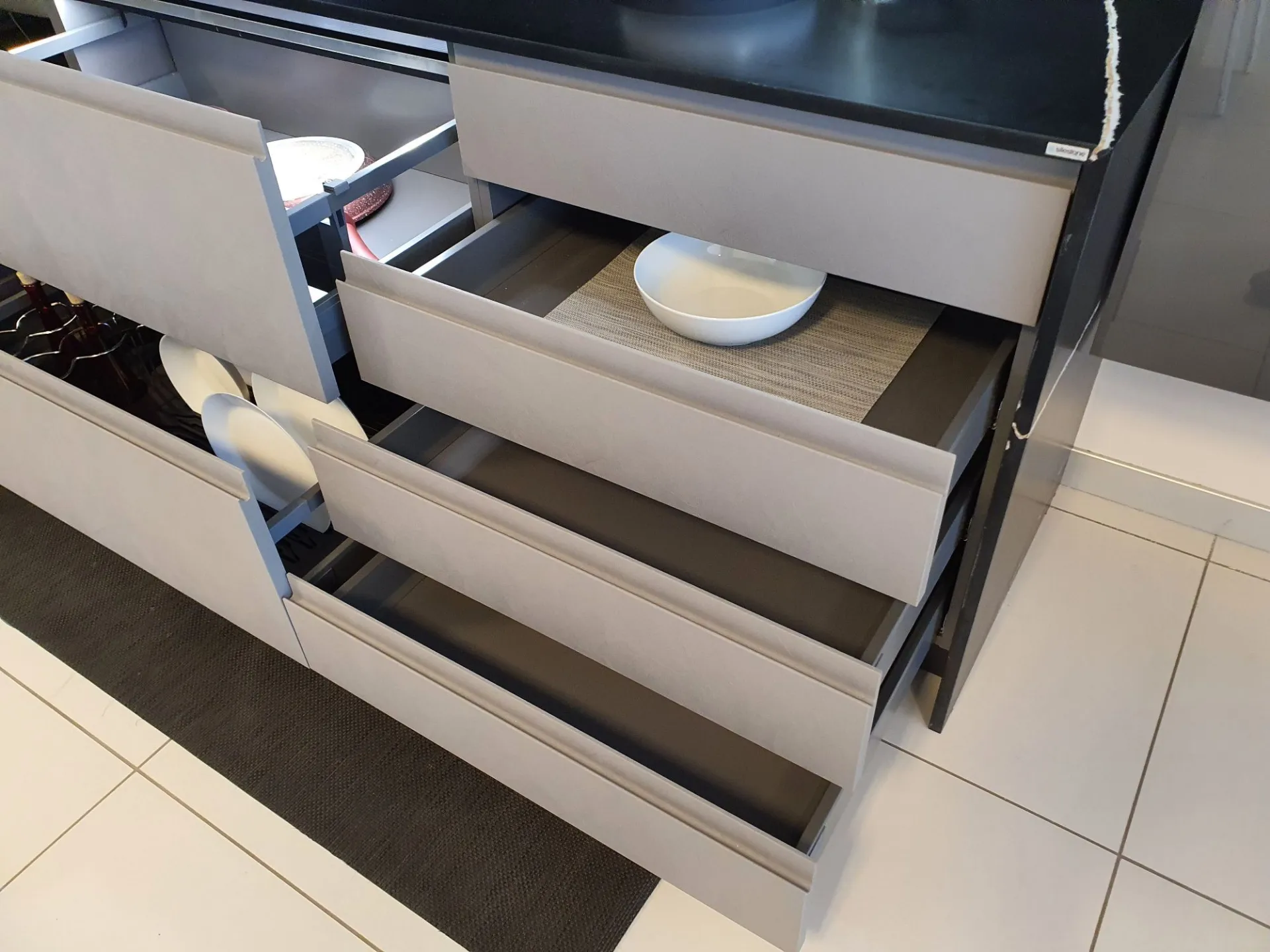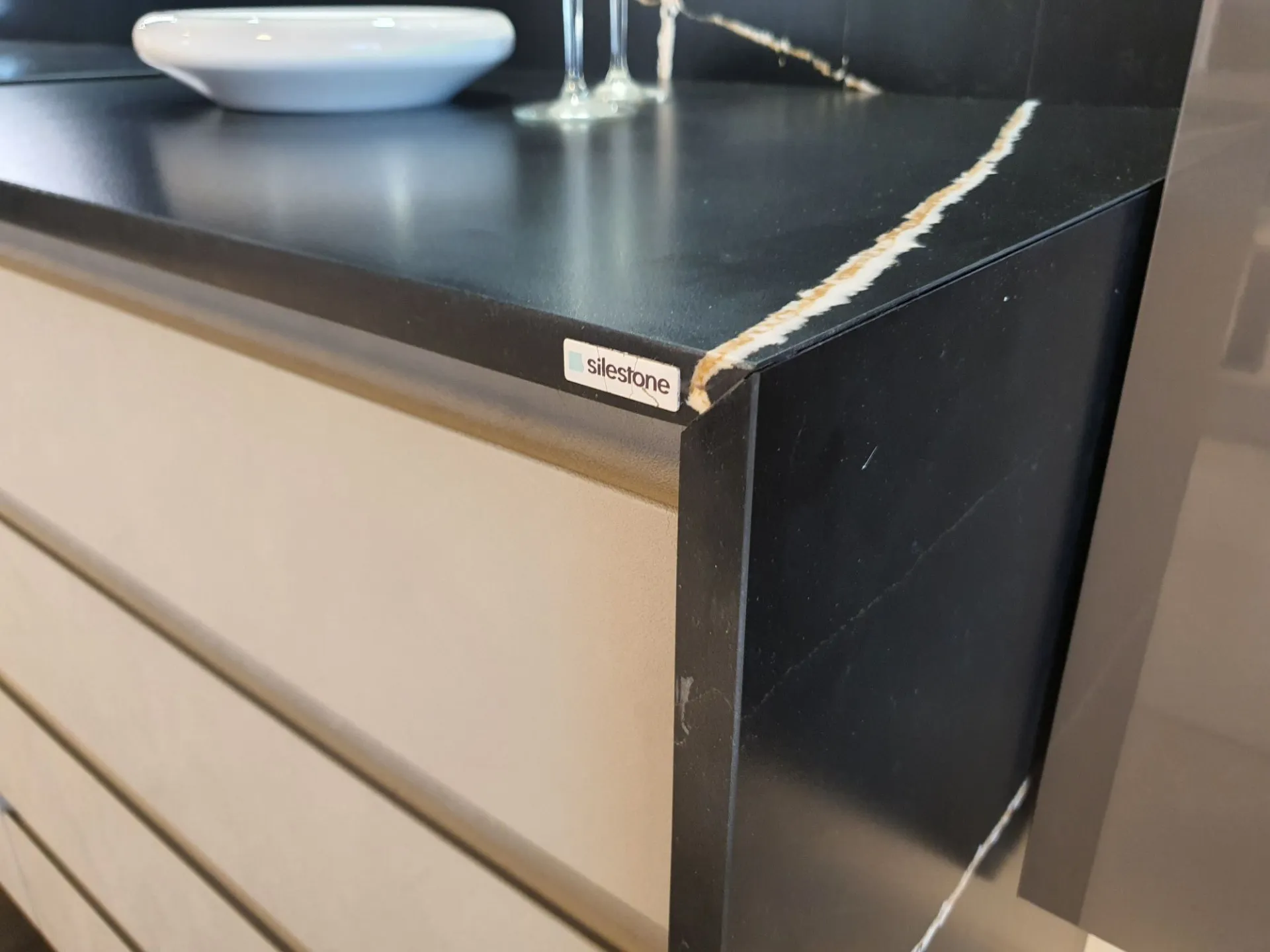 Struttura in colore grigio orion con frontali in RESINA CROMO 1407 e TOP, schenale e fianco in Silestone sp.2 ET Noire