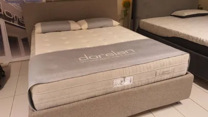 Letto matrimoniale SIRIO di Dorelan con rivestimento in tessuto completamente sfoderabile color beige chiaro Penelope col.03 Contenitore con rete ...