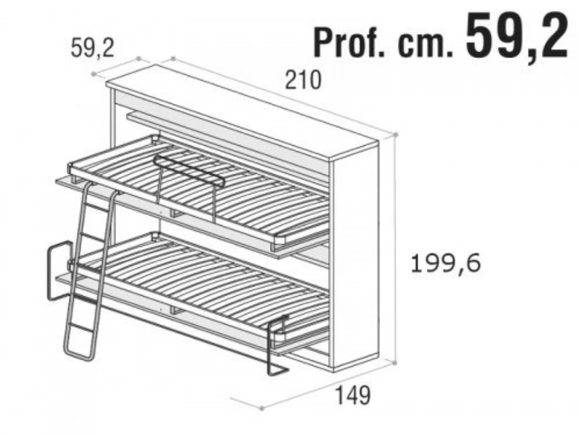 Letto a Vagone in nobilitato finitura Tortora, maniglia mod. Union in finitura Stromboli, cm. 210x197h.x59prof.