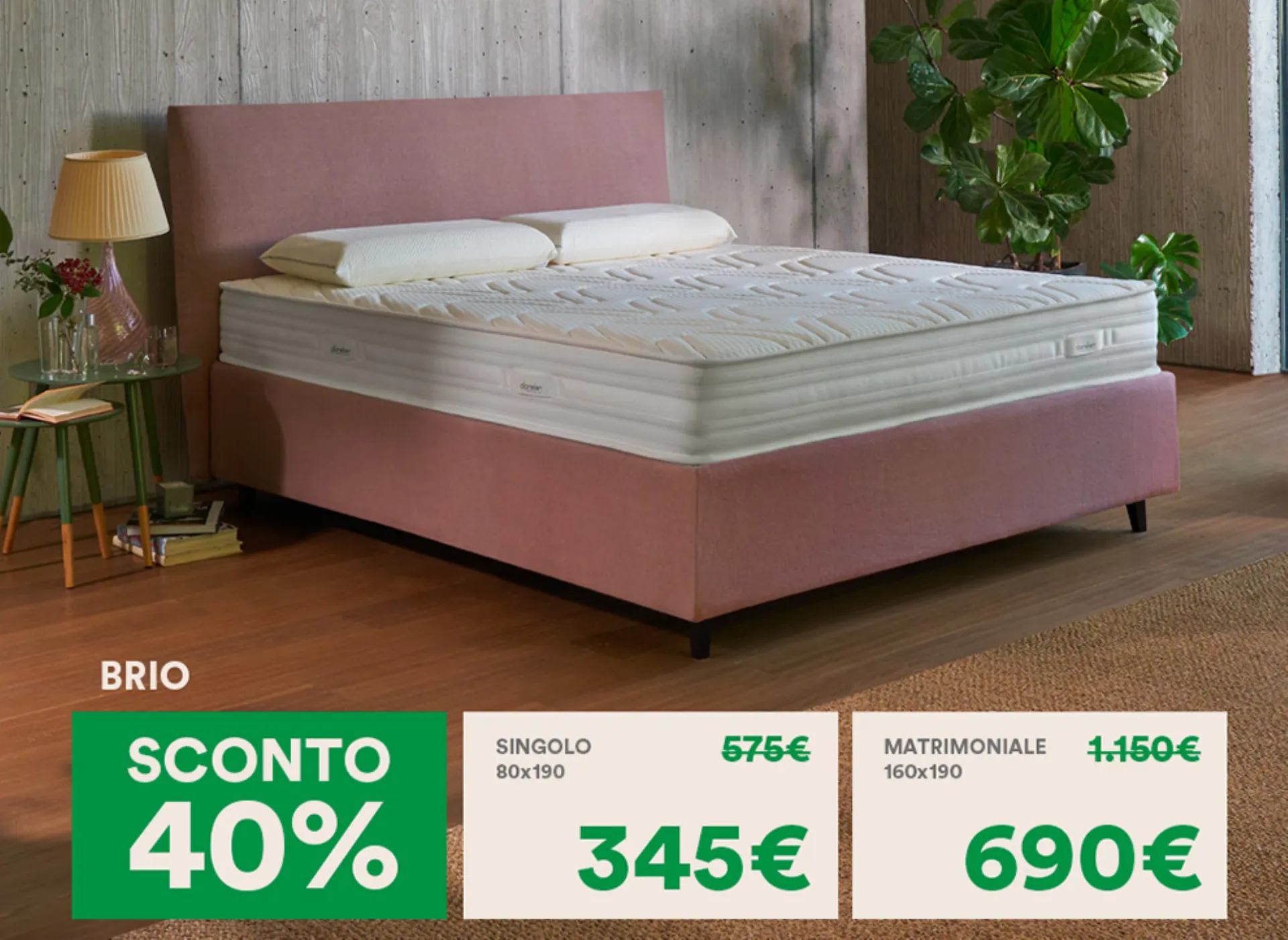 - singolo 80x190 prima €. 742,00 Iva inclusa ► ora €. 445,00 Iva inclusa