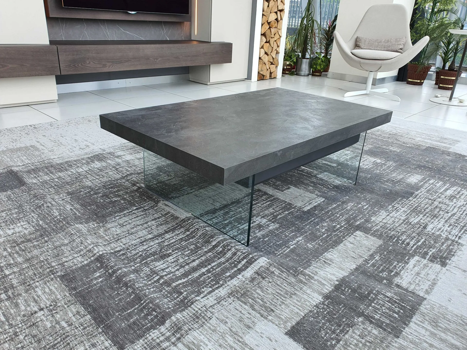 È caratterizzato da un piano robusto sostenuto da eleganti gambe in vetro trasparente che lo fanno sembrare sospeso, è un pratico punto dove poter appoggiare gli aperitivi o il mangiare durante una festa oppure nella normale routine quotidiana nel contempo è anche un comodo contenitore per riporre riviste, telecomandi, cuscini.