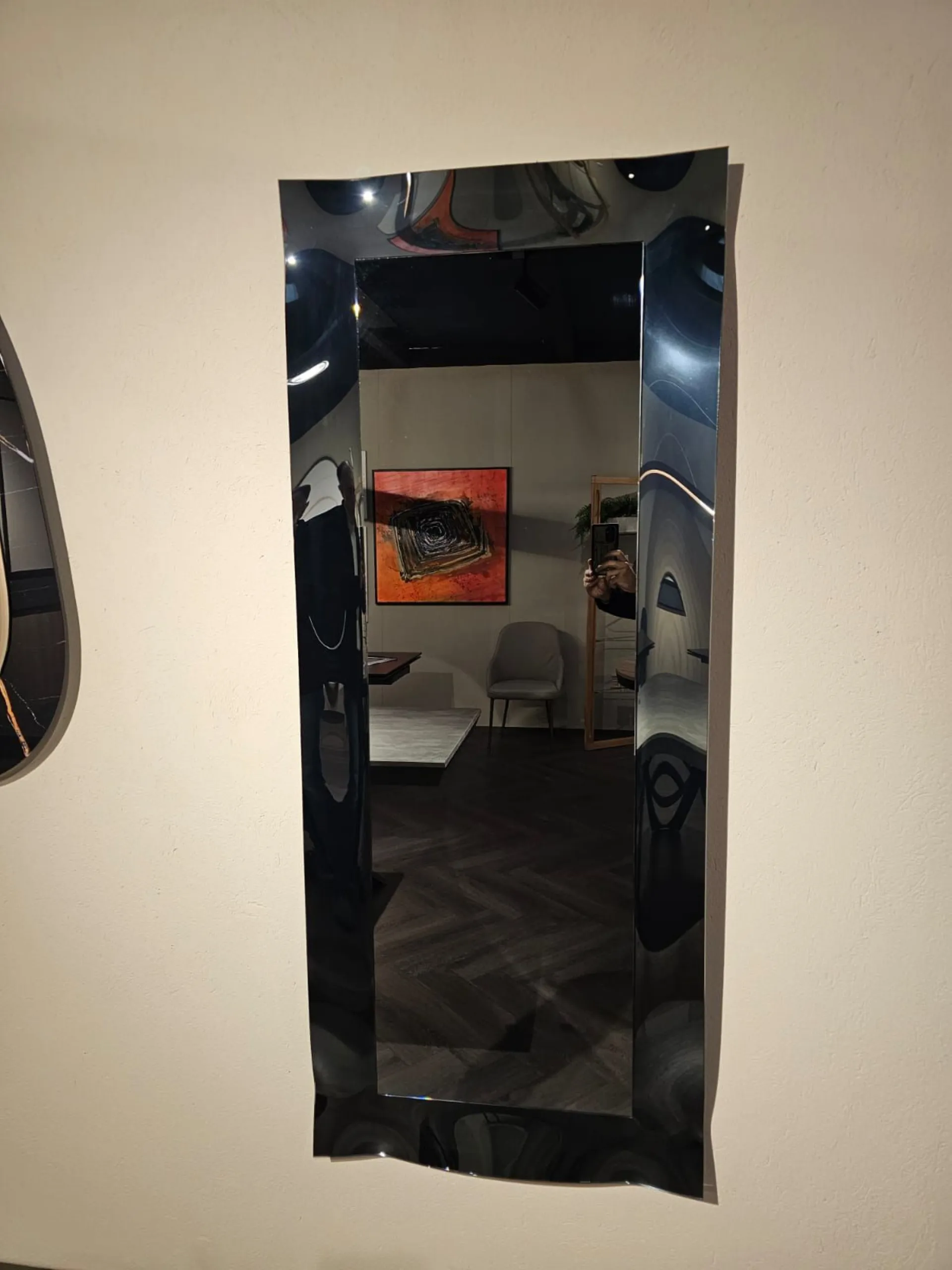 Specchio rettangolare con cornice in specchio deformato, di dimensioni cm P7 X H170 X L70. Prodotto disponibile in pronta consegna.