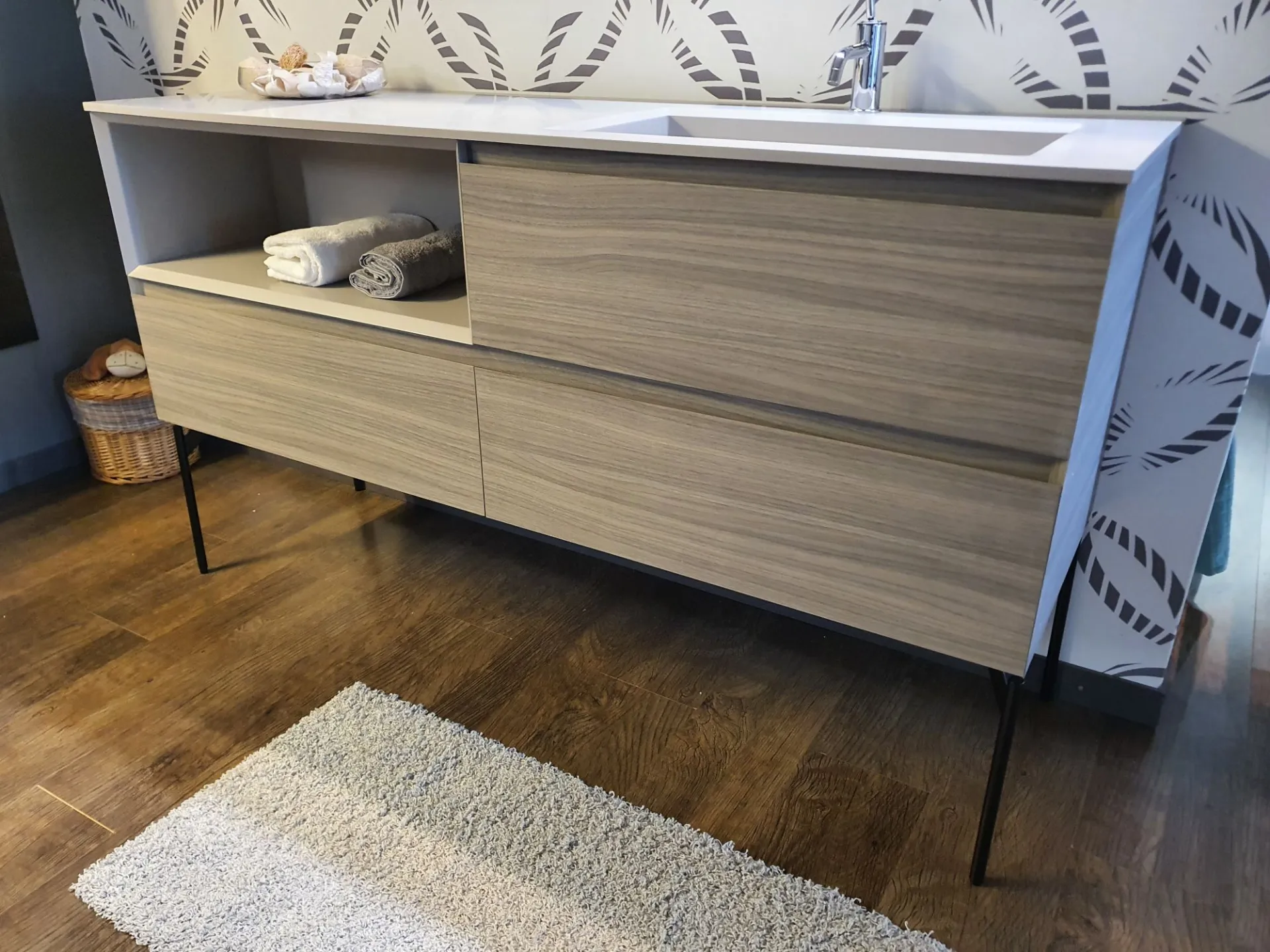 Il mobile bagno è caratterizzato dal basamento in metallo H.35cm