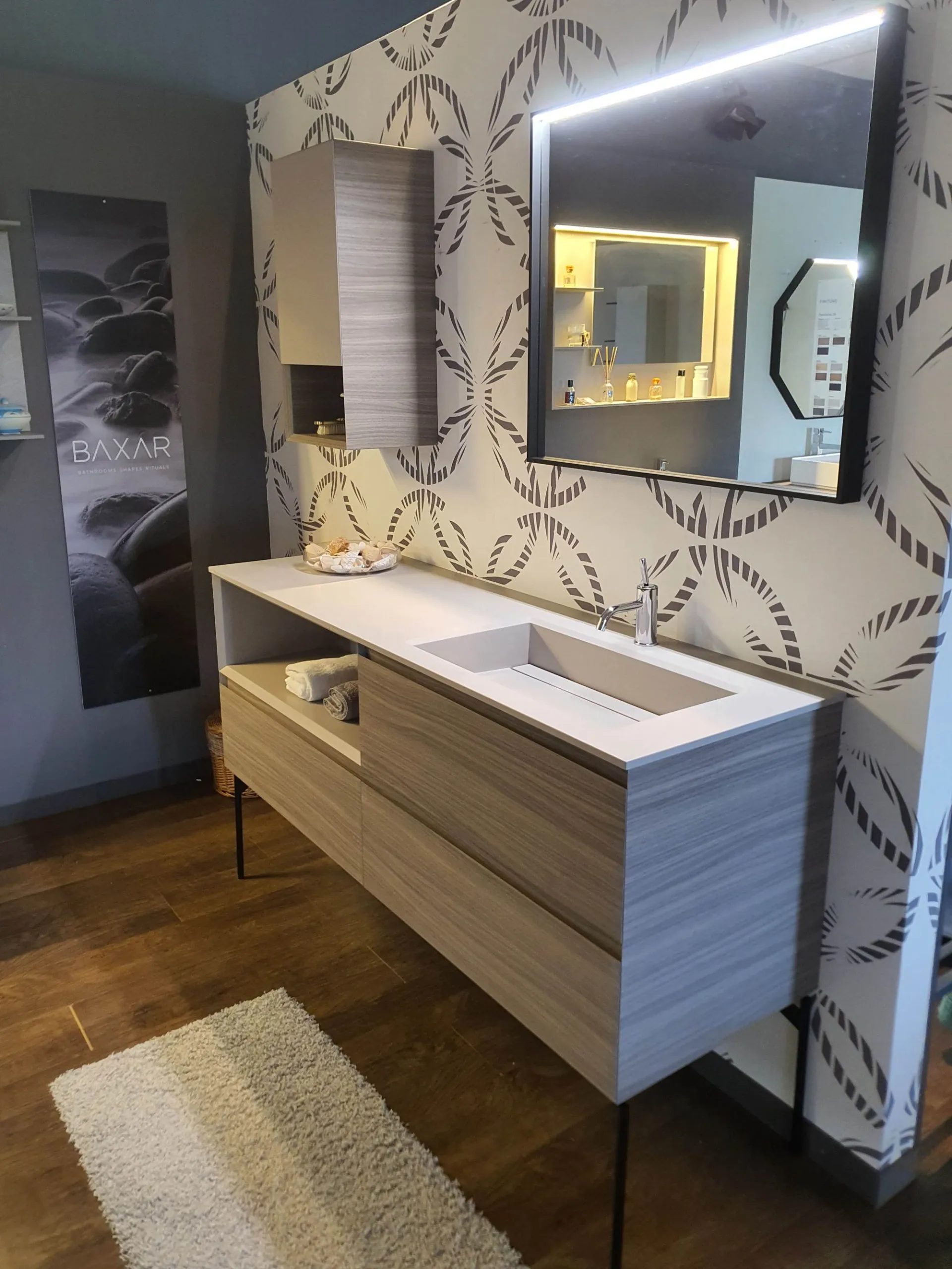 Mobile bagno Baxar della nuova collezione M3 SYSTEM, caratterizzata da fianchi e frontali a 45°.