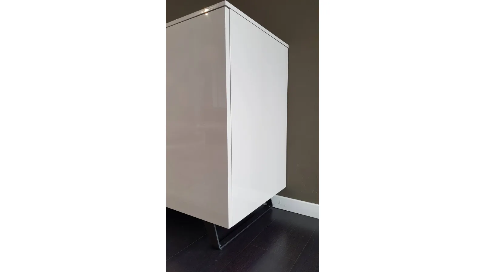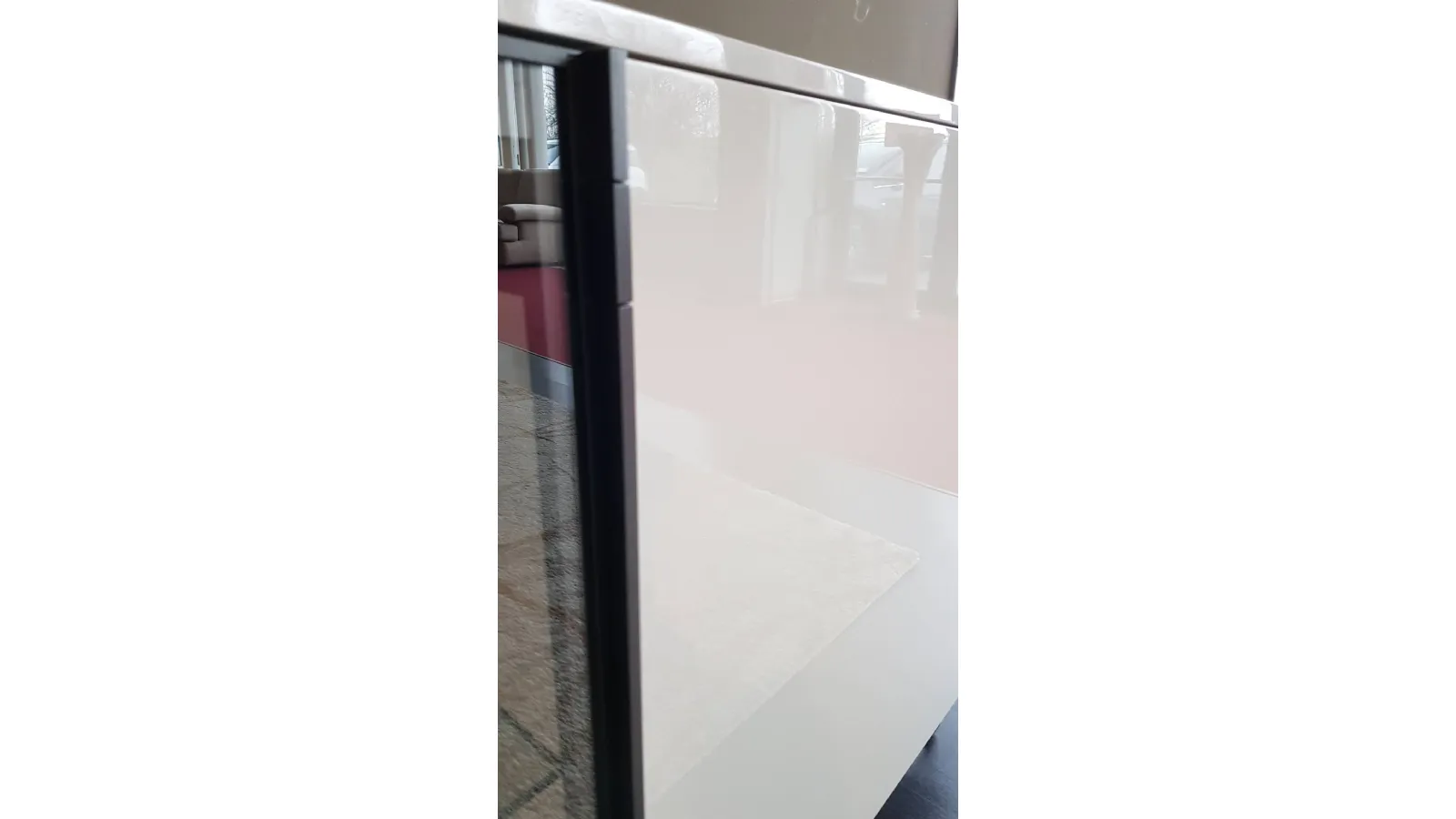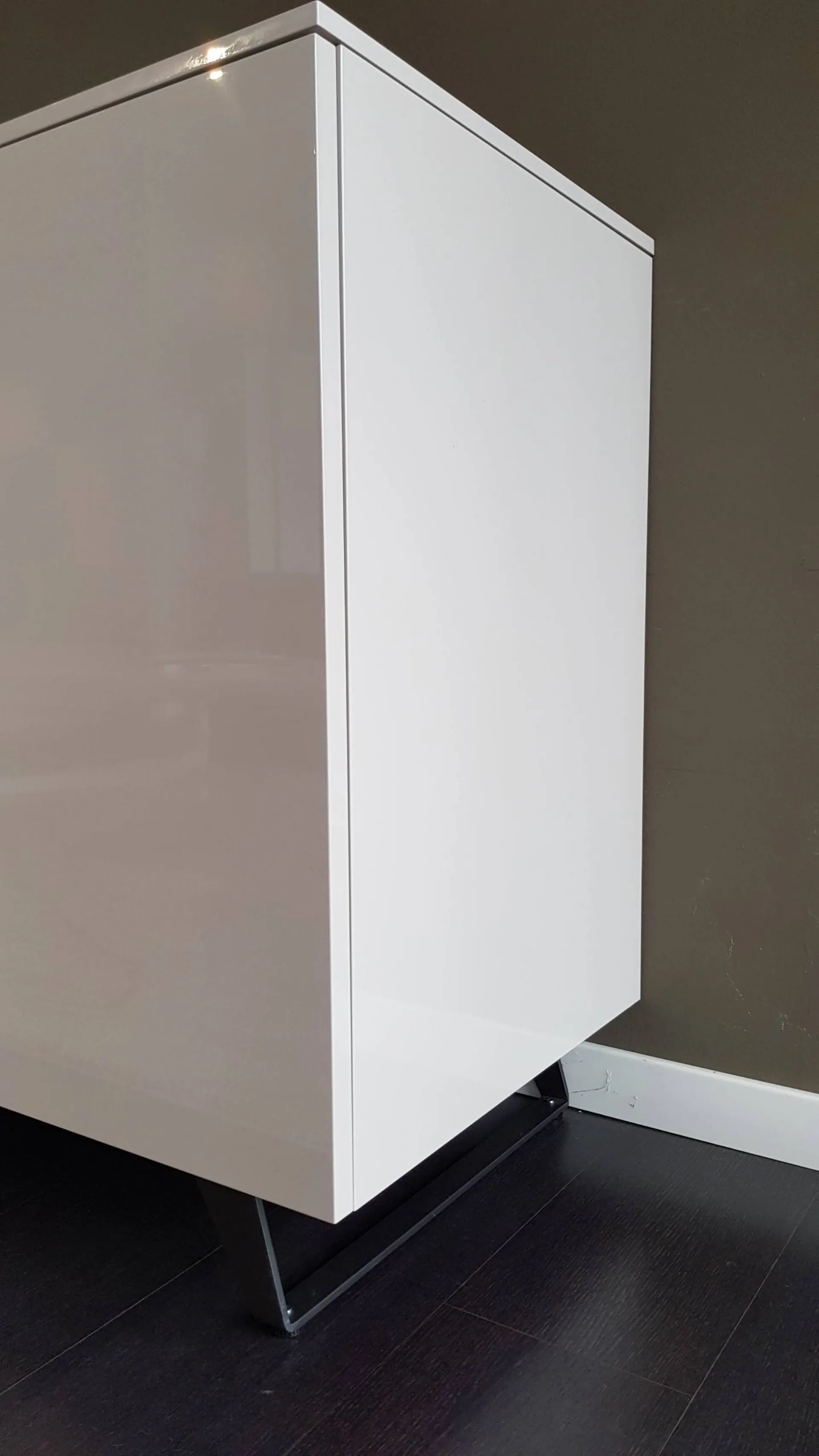Madia originale dal design elegante, capiente ma leggera, con struttura laccata lucida colore madreperla, ante laterali SX e DX in finitura laccata lucida colore madreperla, apertura push&pull, n.2 ante centrali mod. METROPOLIS SX e DX ad apertura a 180° con telaio colore antracite e vetro trasparente, basamento in metallo colore antracite, ripiani interni in vetro trasparente , meccanismi di apertura eleganti, poco visibili e regolabili lungo i tre assi, dimensioni totali cm 216.2 x p 51.5 x h 85.5