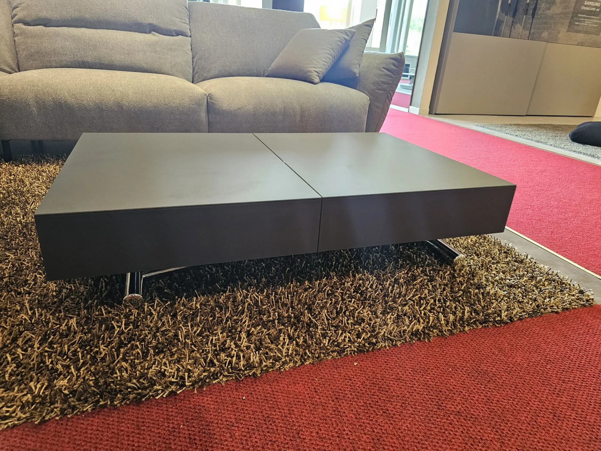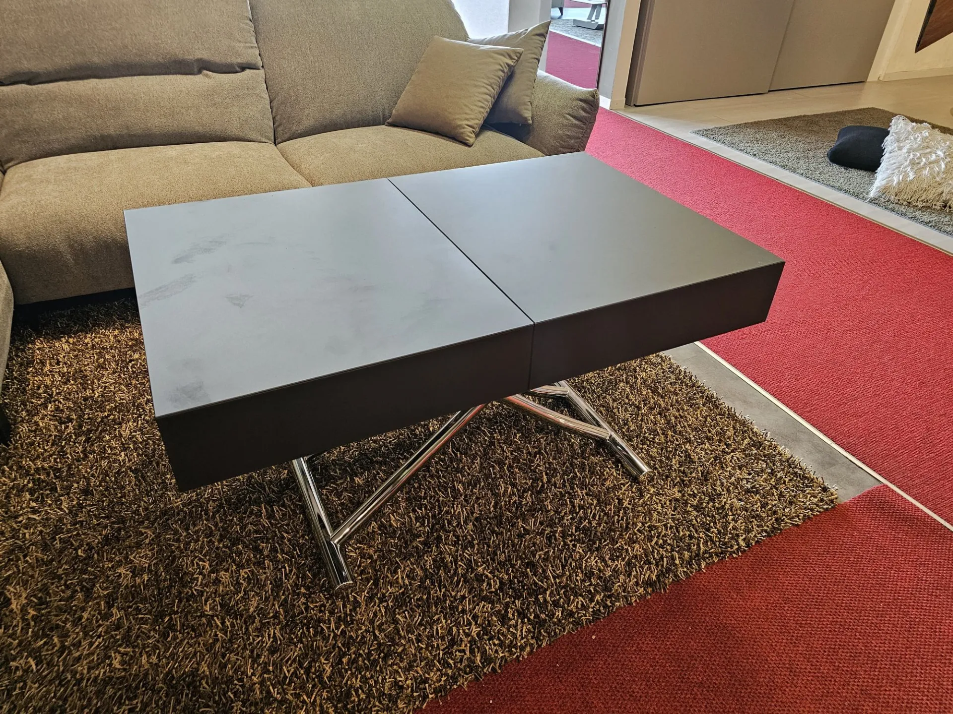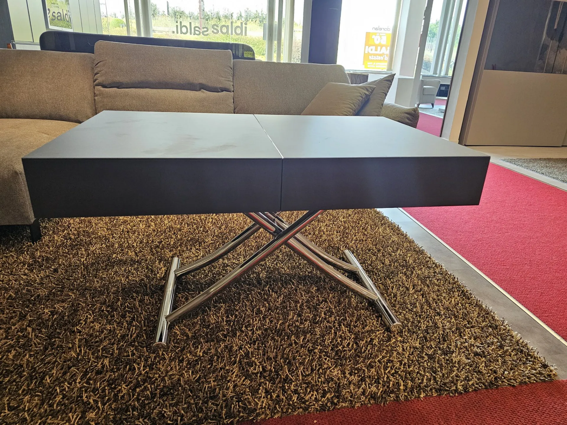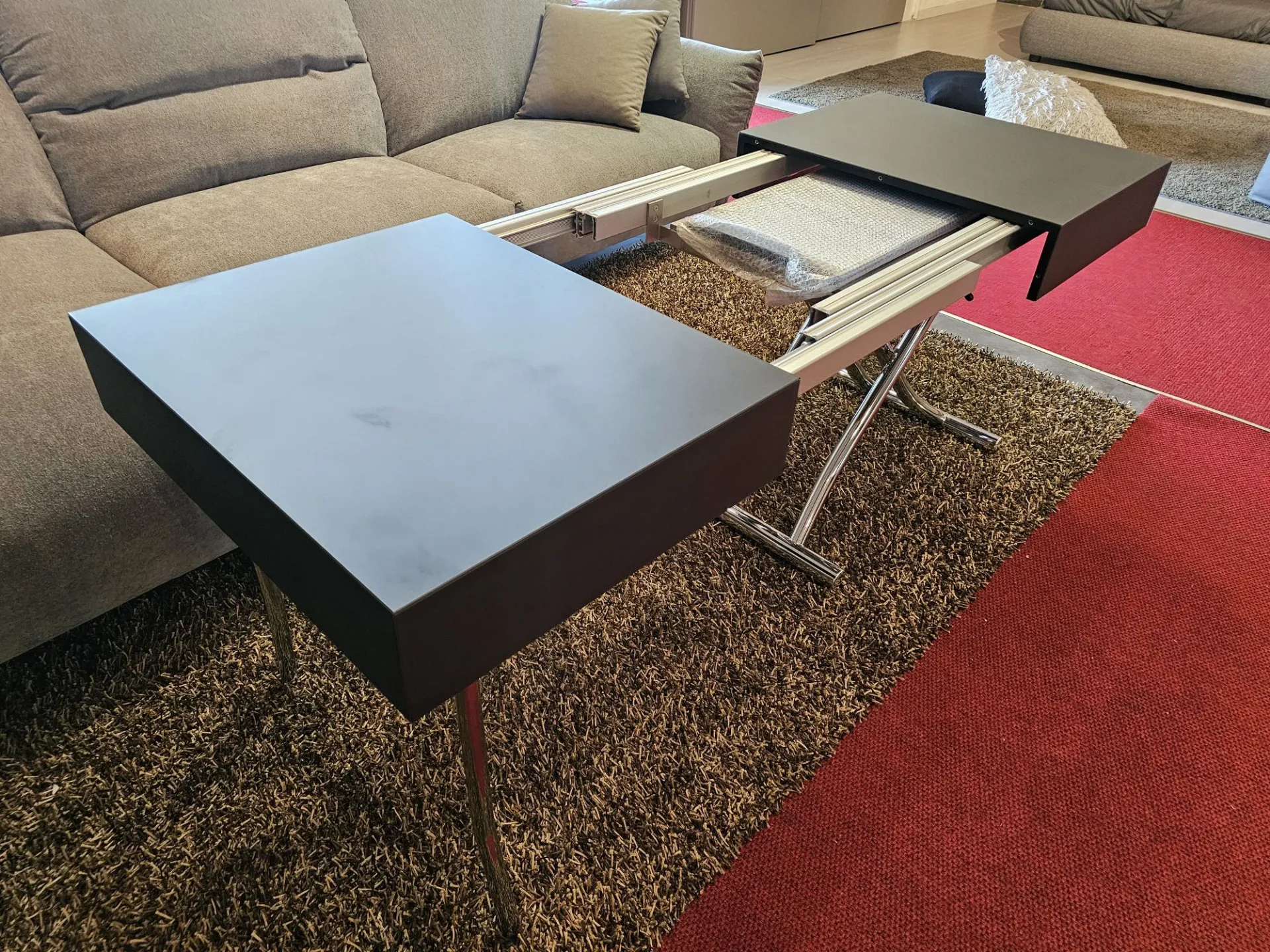 Tavolino trasformabile MAGNUM con base cromo e piano in cristallo antimpronta colore grafite