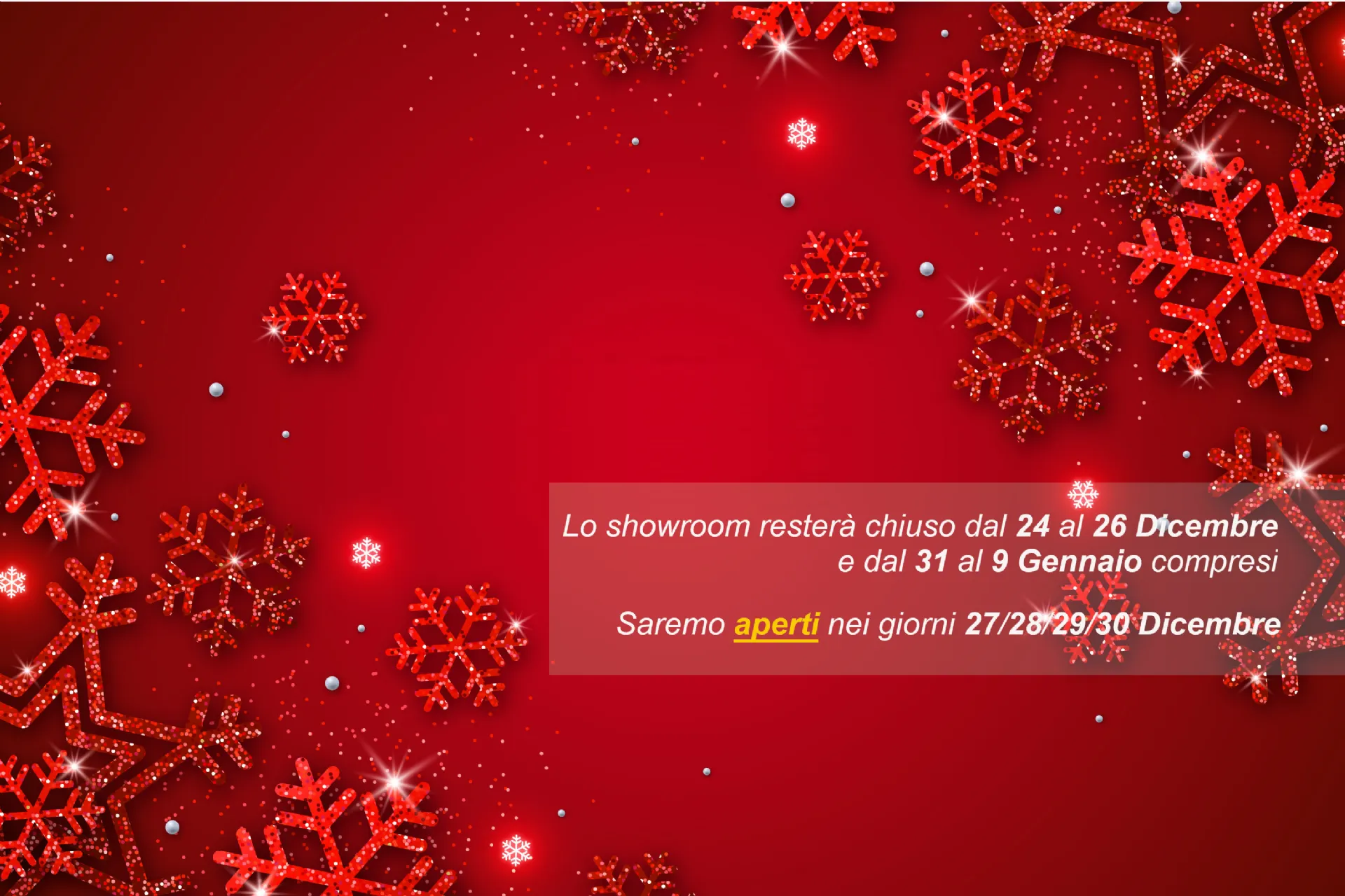 Saremo aperti nei giorni 27/28/29/30 Dicembre 2021