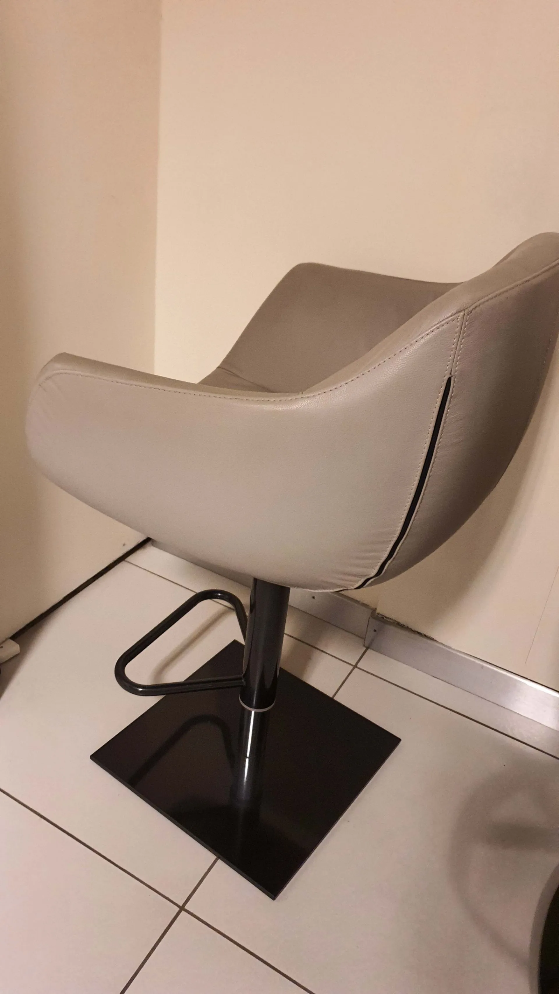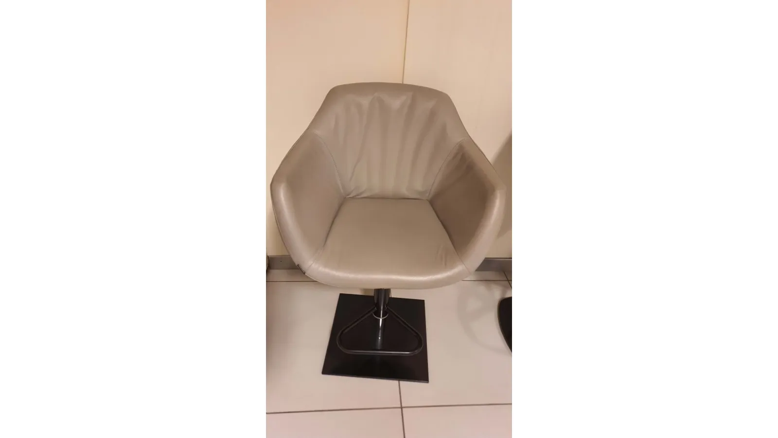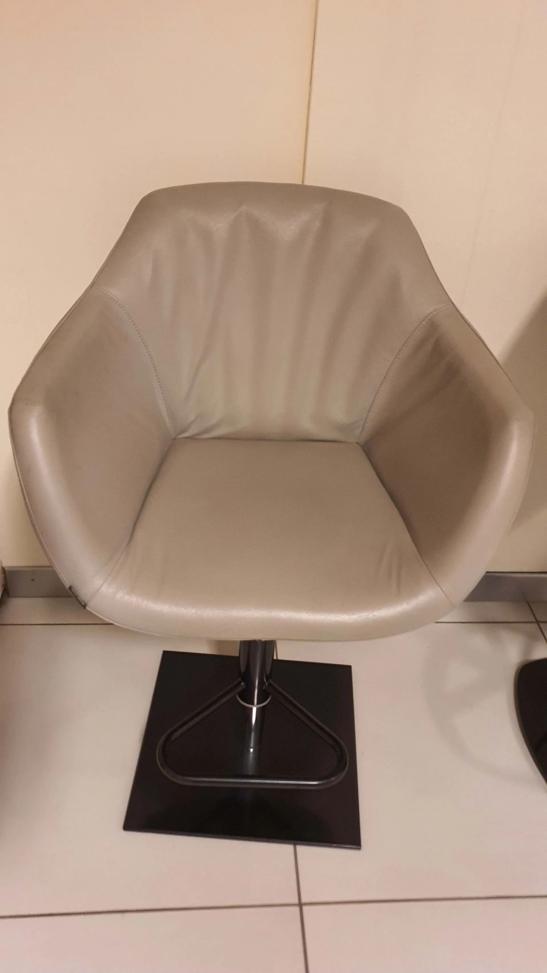 Sgabello Nemo in pelle vera colore polvere con base quadra colore nero, apposito poggiapiedi in metallo curvato