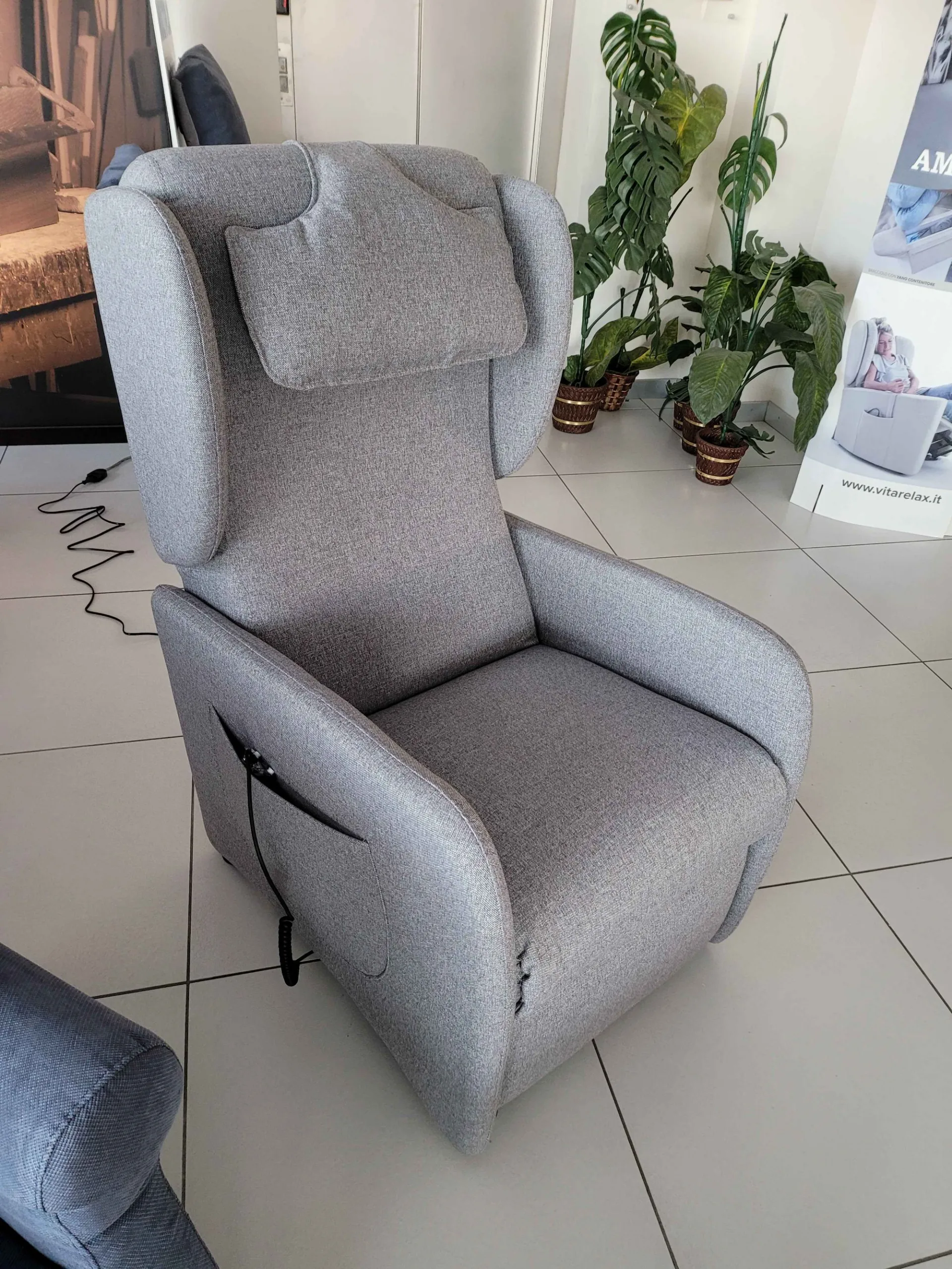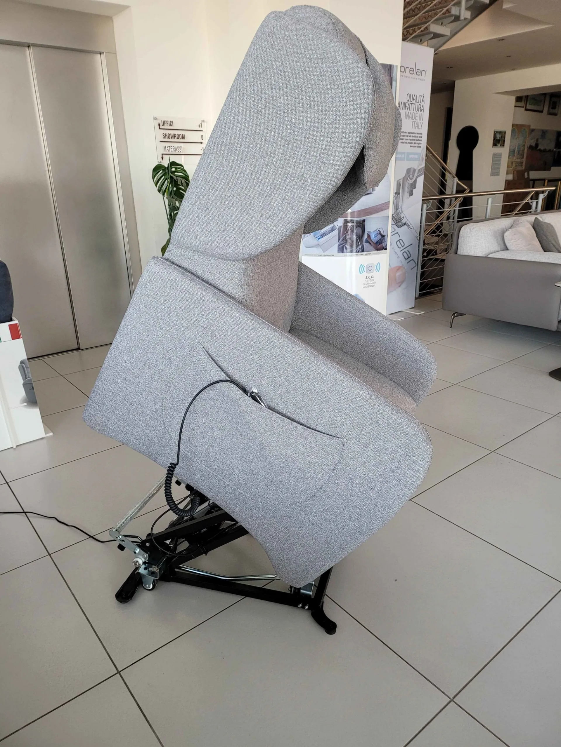 Compatta e morbida, Orietta è la poltrona nata per avere una struttura straordinariamente solida e offrire una comodità incredibilmente avvolgente al minimo dell’ingombro. Infatti passa comodamente da porte larghe 70 cm. Raggiunge la posizione di relax con il movimento indipendente dello schienale e della pediera per poter regolare in modo autonomo la posizione di massimo comfort. Il poggiapiedi può essere quindi sollevato in qualsiasi momento, senza abbassare lo schienale, consentendo quindi di ottenere una perfetta posizione davanti alla TV. Dispone anche di un movimento Lift che consente di assumere la posizione eretta a persone con difficolta di deambulazione. Inoltre è presente il kit roller che permette di spostare la poltrona comodamente, anche con una persona seduta sopra. Il tessuto di rivestimento è colore grigio . La seduta è molto comoda ed in memory per il miglio comfort assoluto! **D' DISPOSITIVO MEDICO PER CUI DETRAIBILE FISCALMENTE**