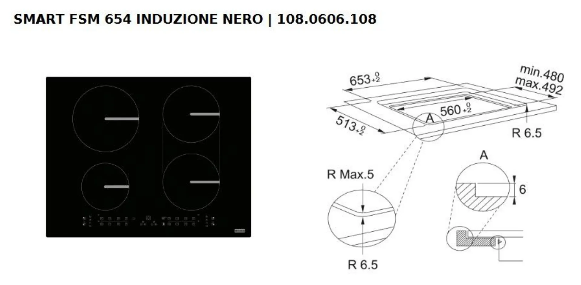PIANO INDUZIONE FRANKE cod. FSM 654 I B BK zona Bridge, sicurezza bambini, misura cm. 65x51