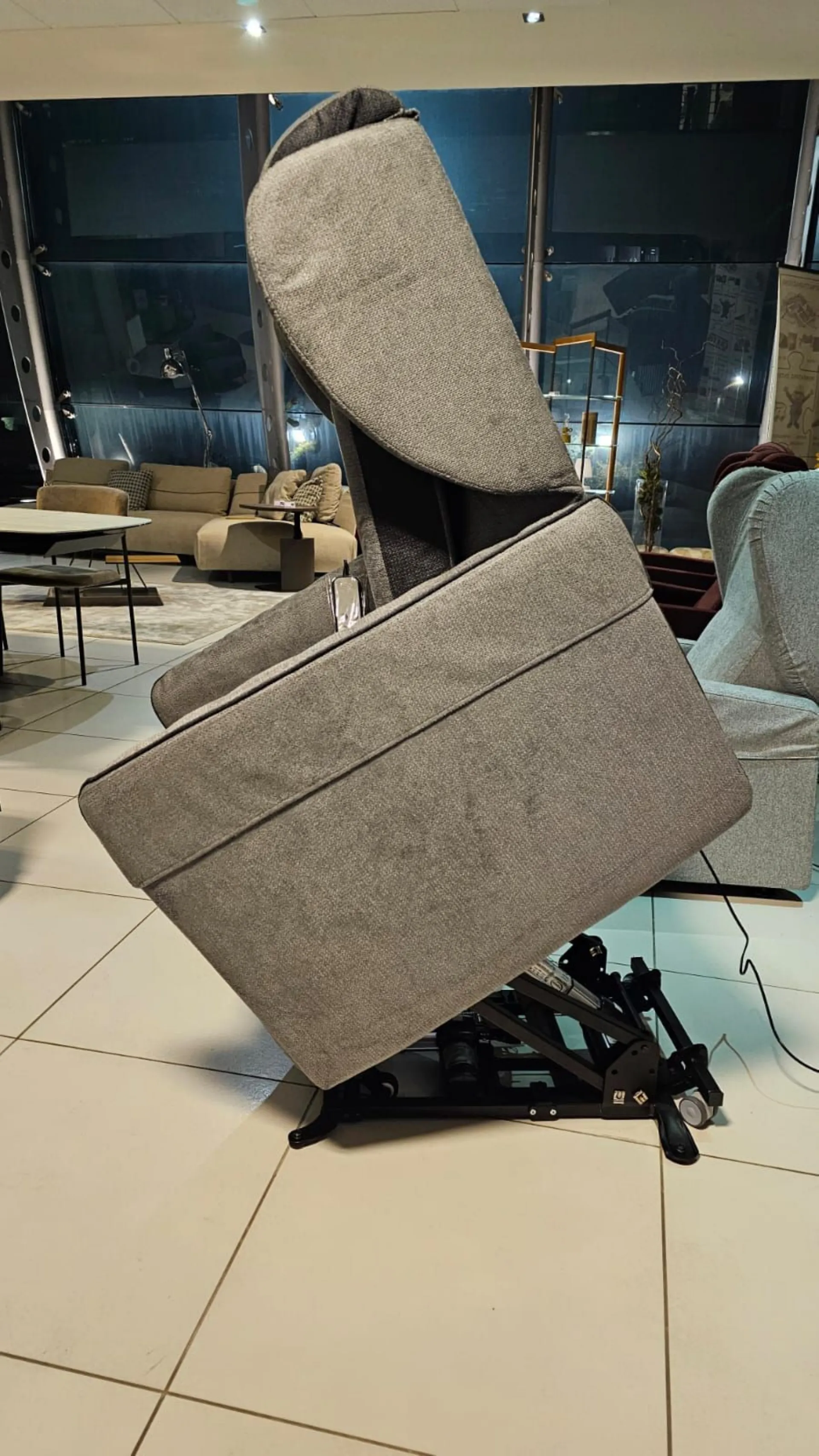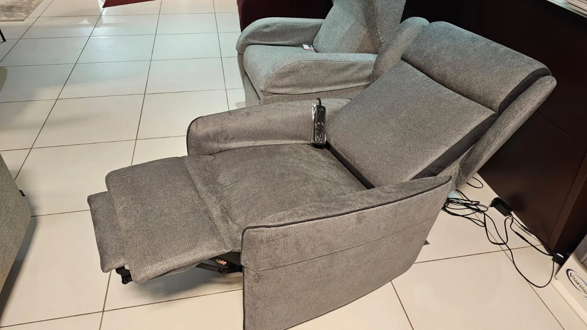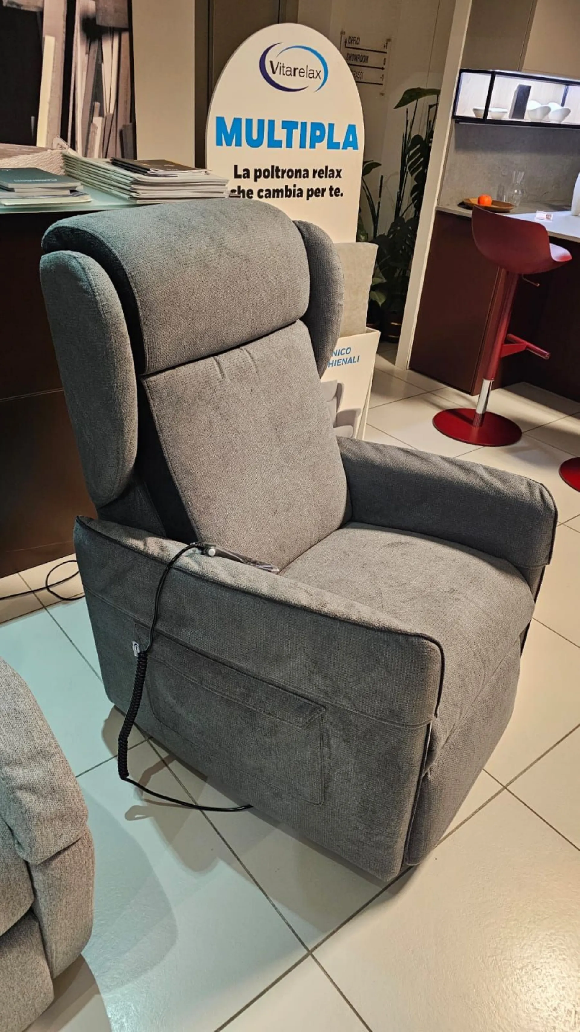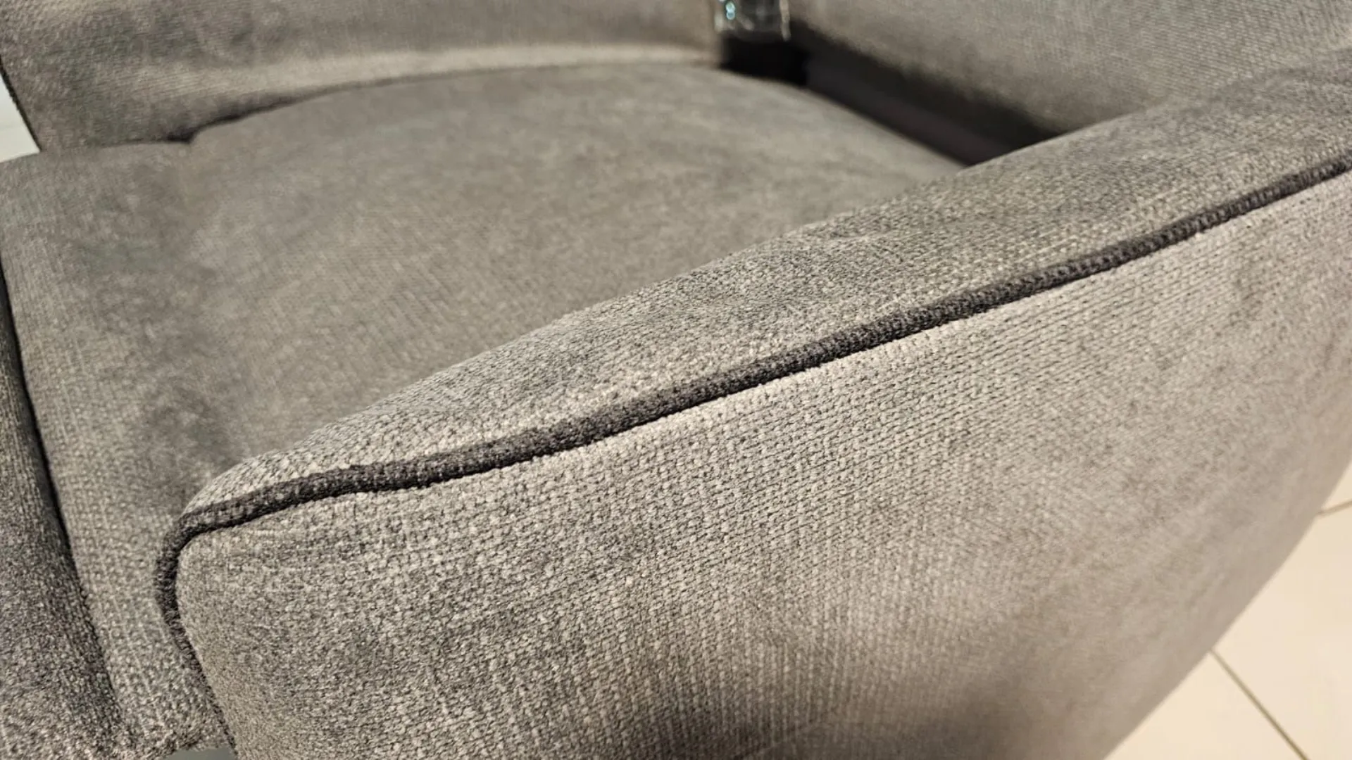 Poltrona relax mod. ANDROMEDA, rivestimento in tessuto sfoderabile ad esclusione dello schienale, dotata di roller motorizzato Click&Roll, predisposizione per batteria, doppia pediera, kit fodere copribracciolo, possibilità di gestire la cucitura in contrasto, dispositivo medico detraibile classe 1, posizione TV, dimensioni cm. 75x93prof.x113h. (in massima estensione la misura d'ingombro in profondità diventa di cm. 168)
