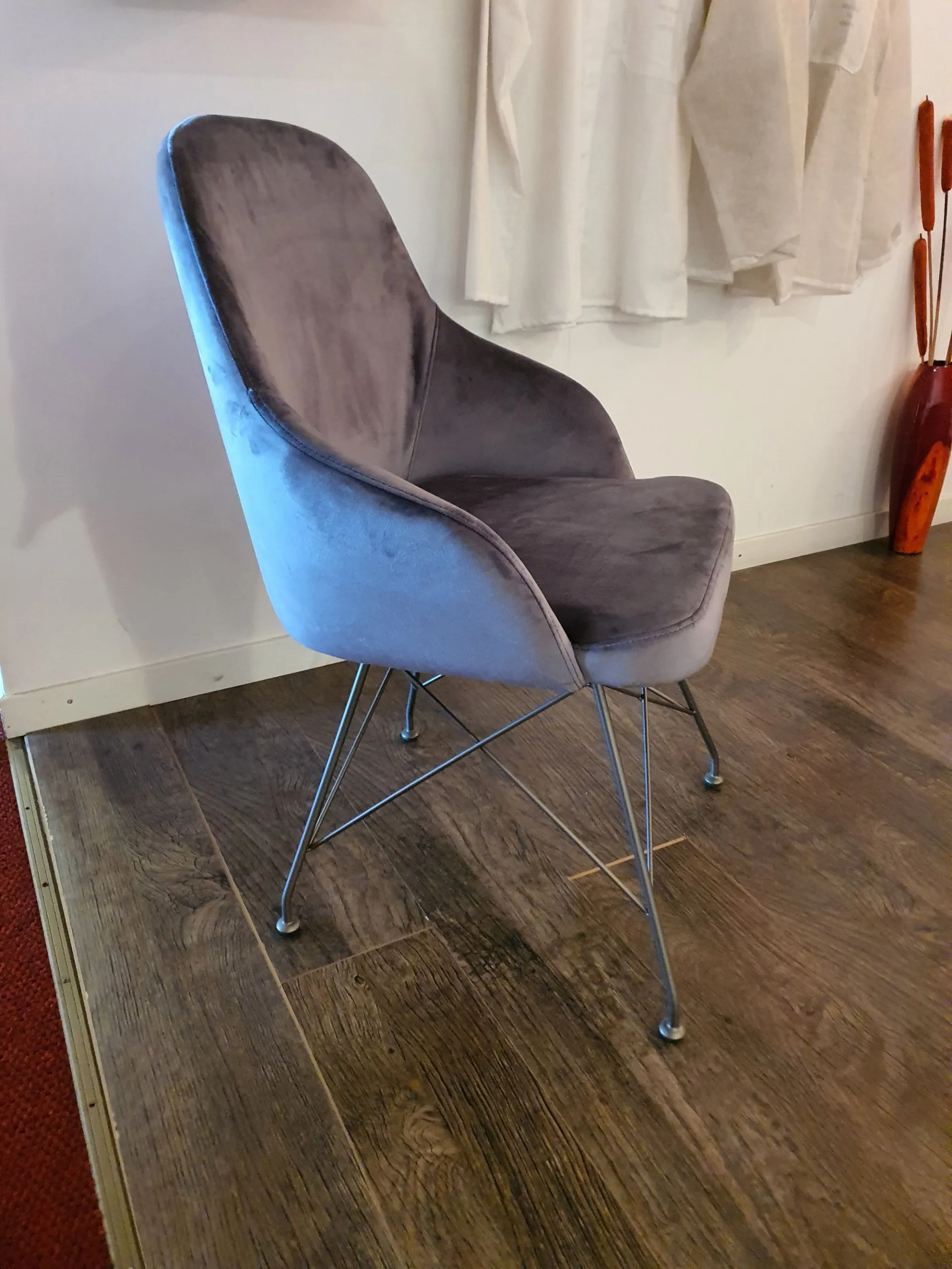 Poltroncina OZZIO modello LARA rivestita in Nabuk grigio con base in metallo finitura bronzo