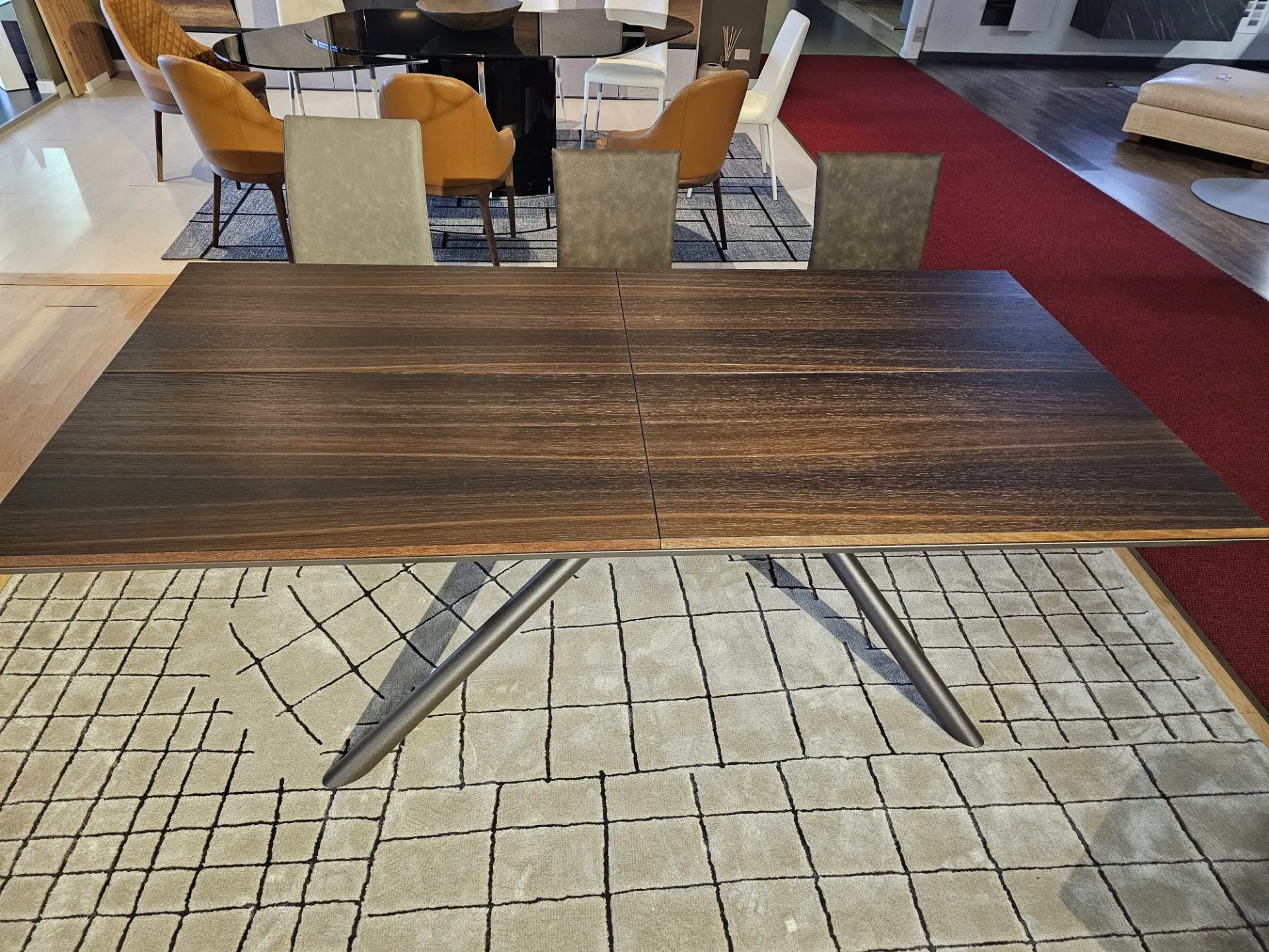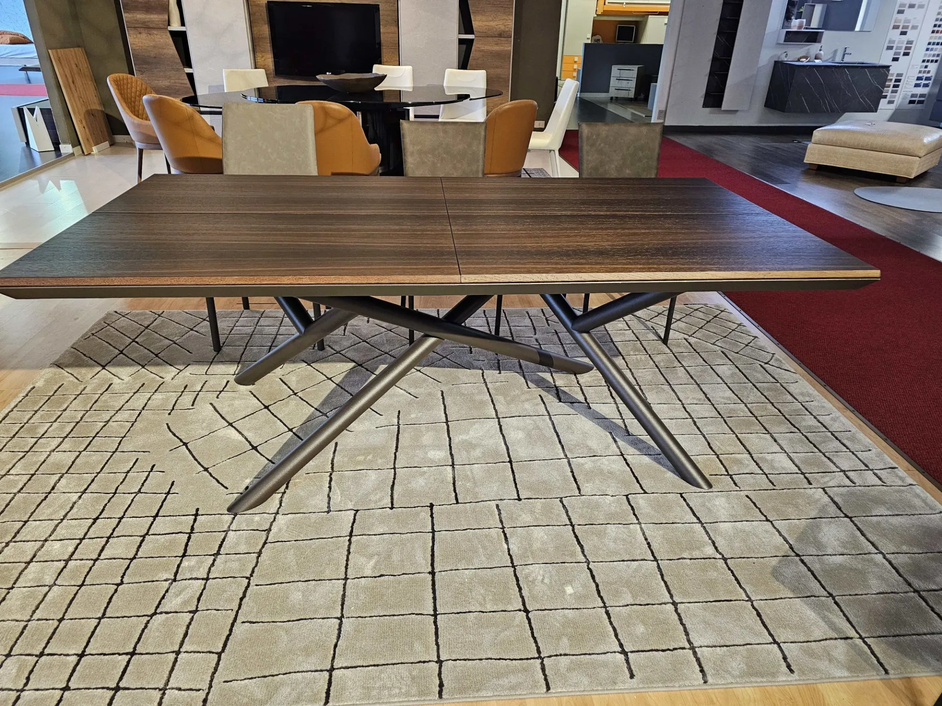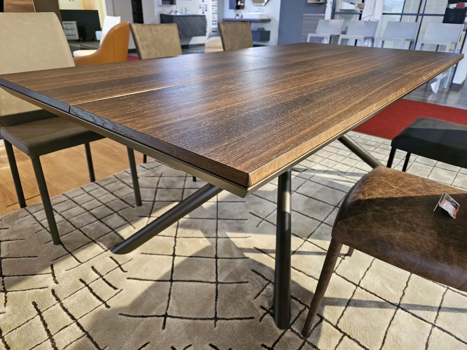 Tavolo allungabile RANDOM con piano in legno Rovere Termotrattato PZ98 e basamento in metallo finitura bronzo opaco MT97, 12 posti cm. 100(138)x200(254)