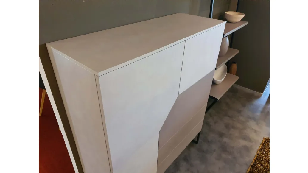 Madia mod.REMIX di misura cm L.108xP.40,3xH.129,4 in finitura materico cemento chiaro e materico cemento cava