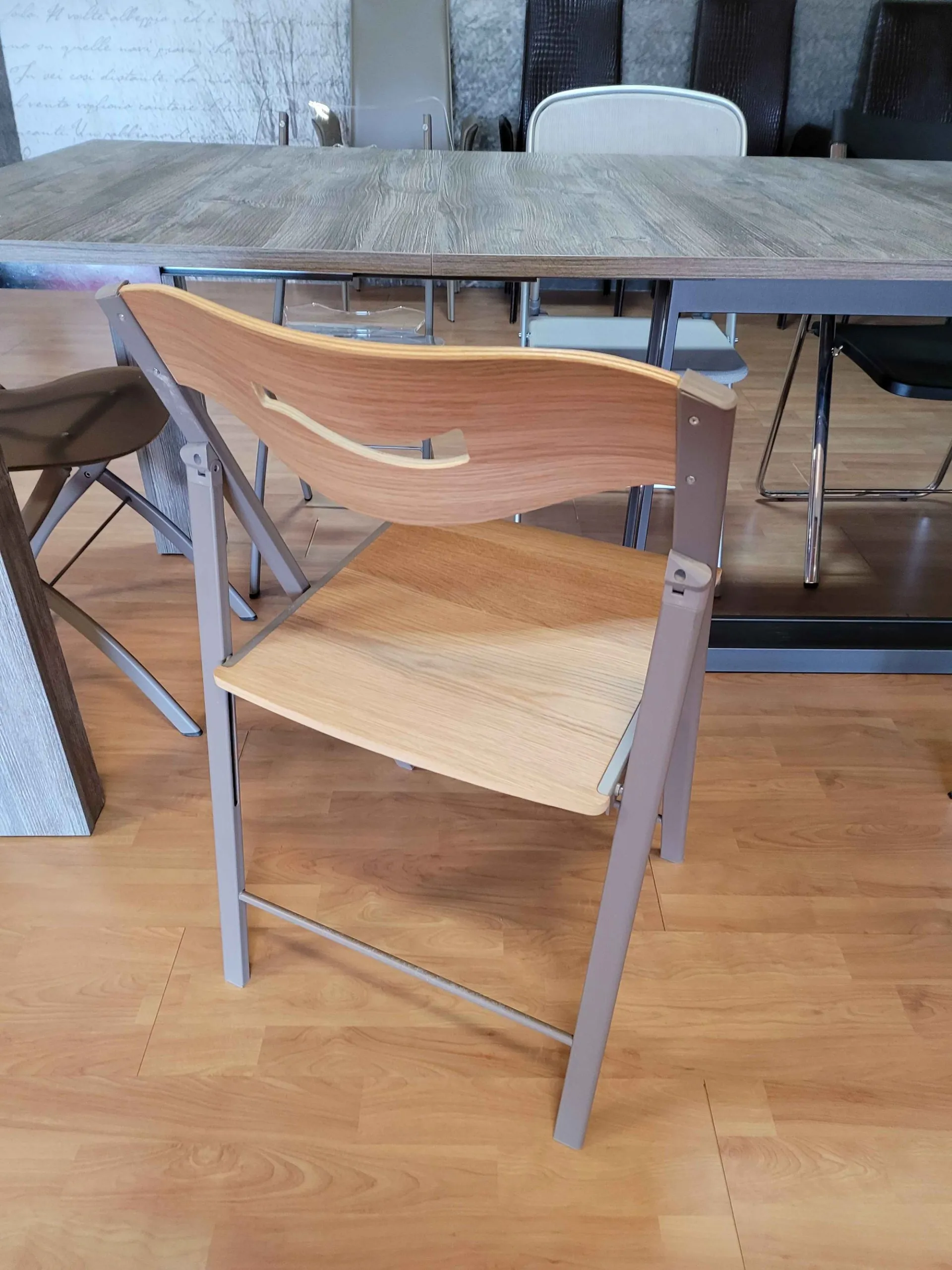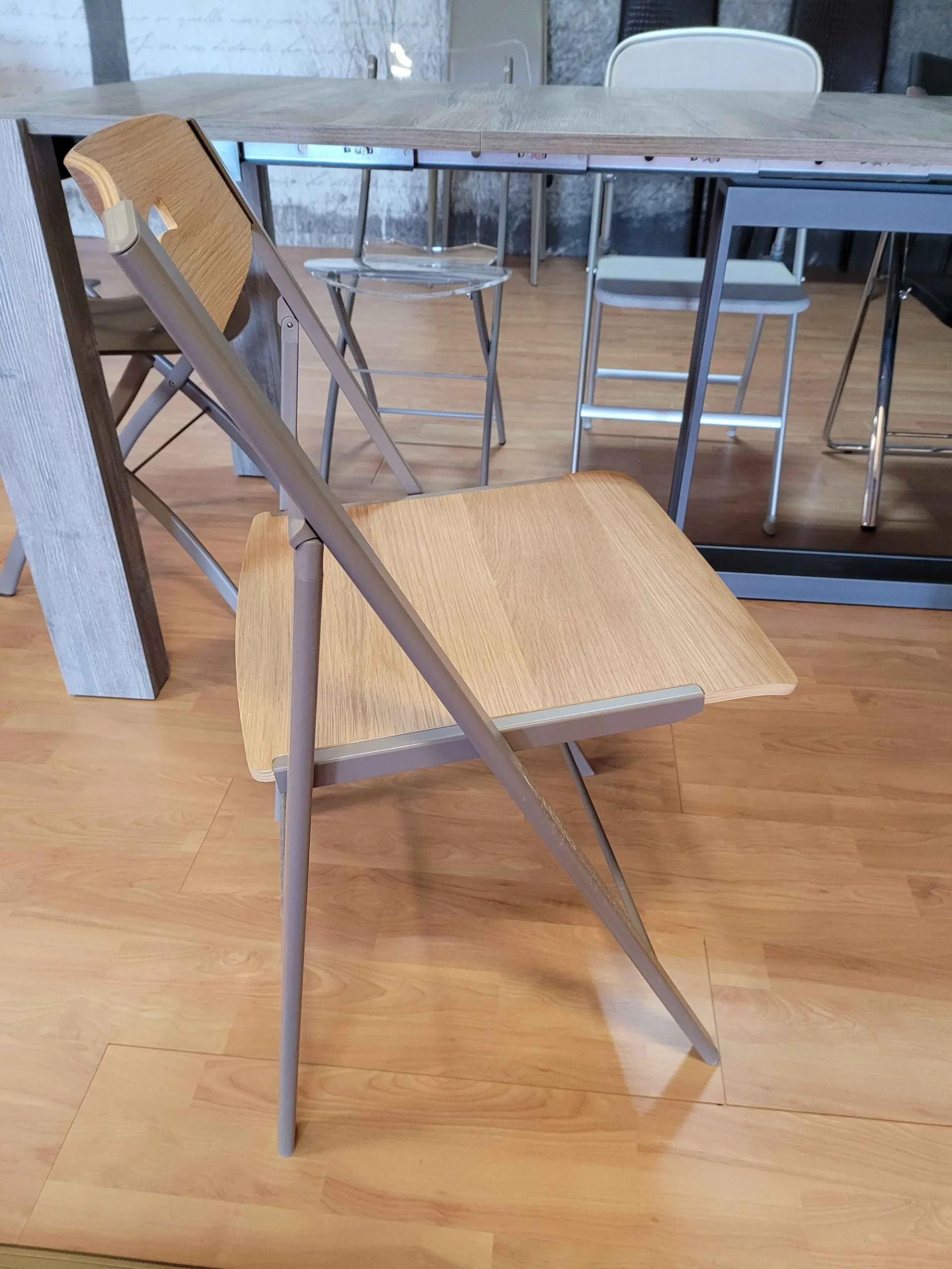 Sedia pieghevole RIPIEGO S215 struttura tortora, seduta in legno rovere wild naturale PW91