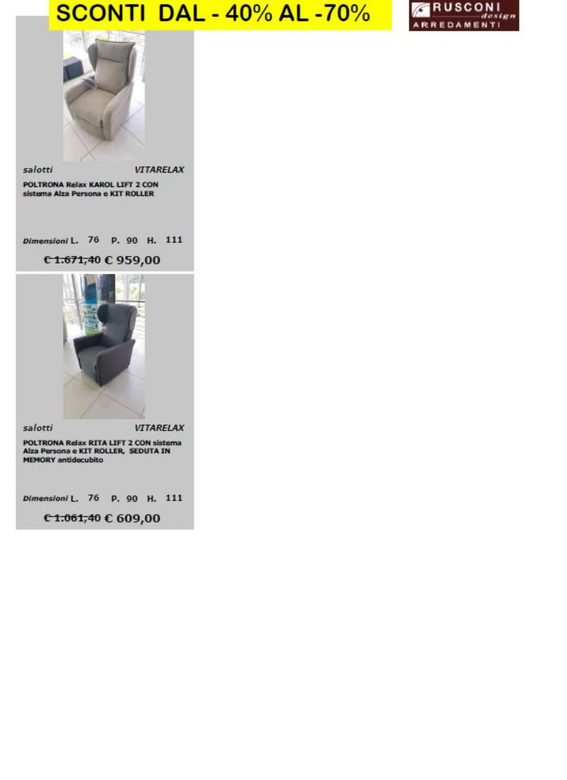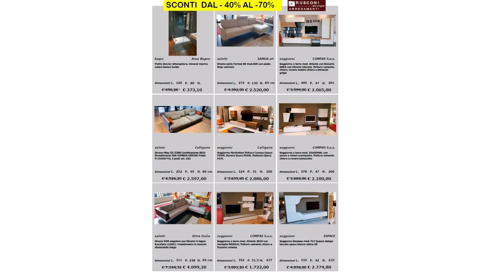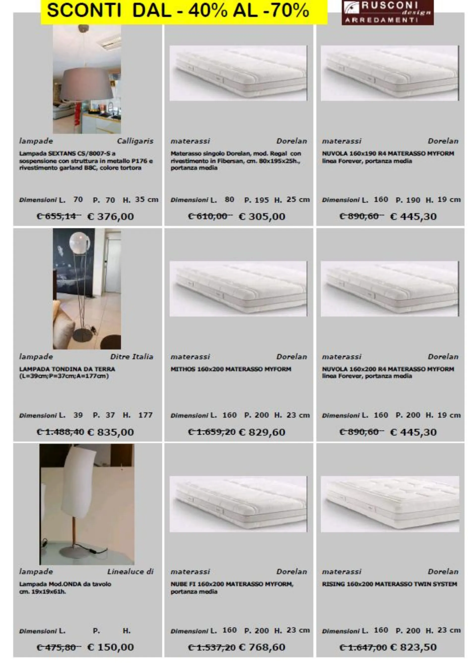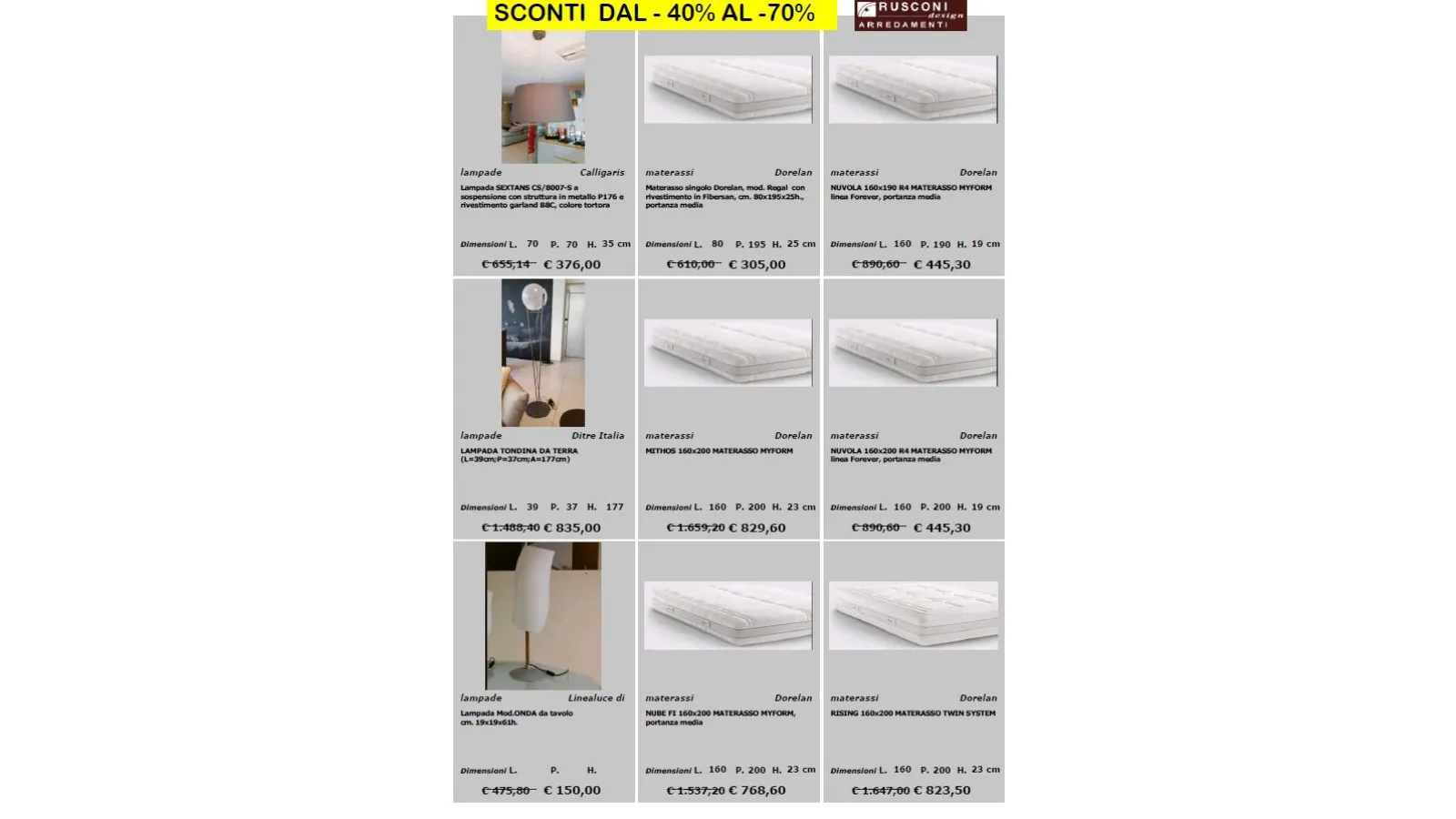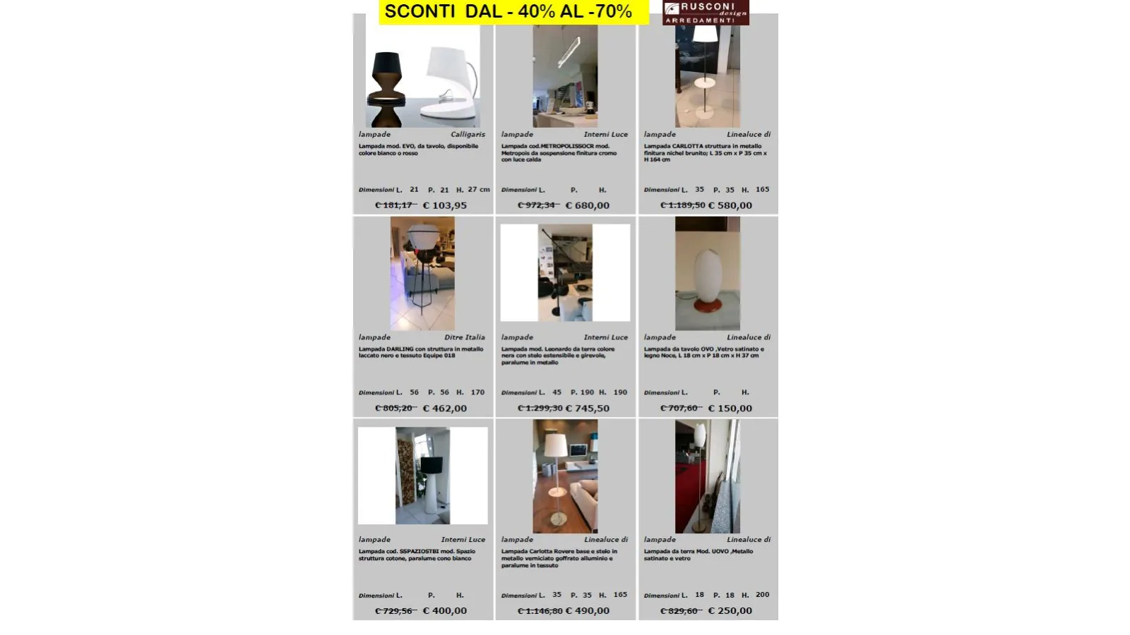 per richieste e prenotazioni scrivi a : online@rusconiarredamenti.it