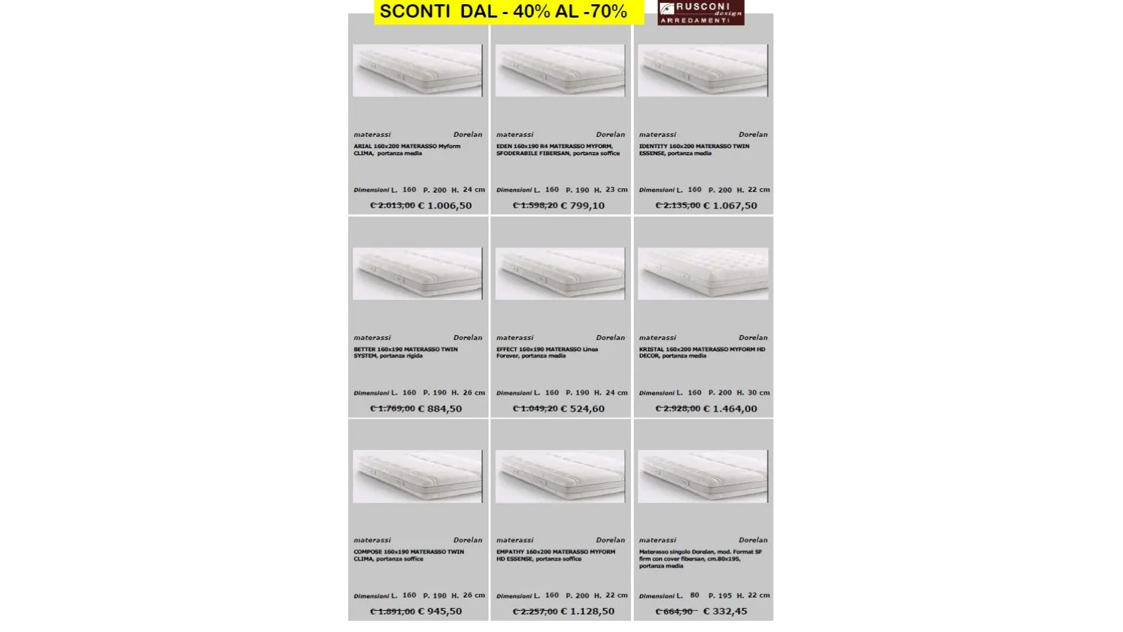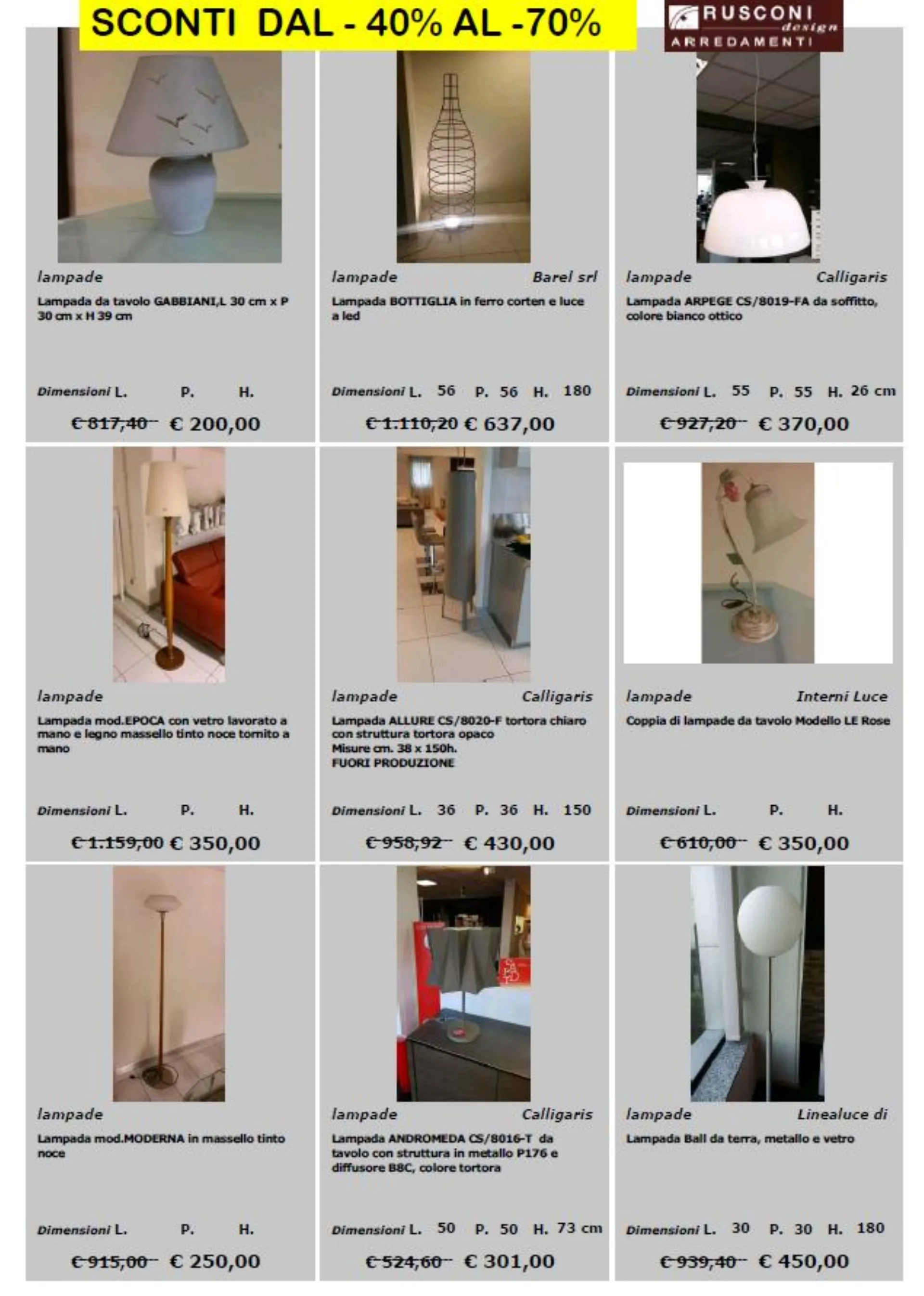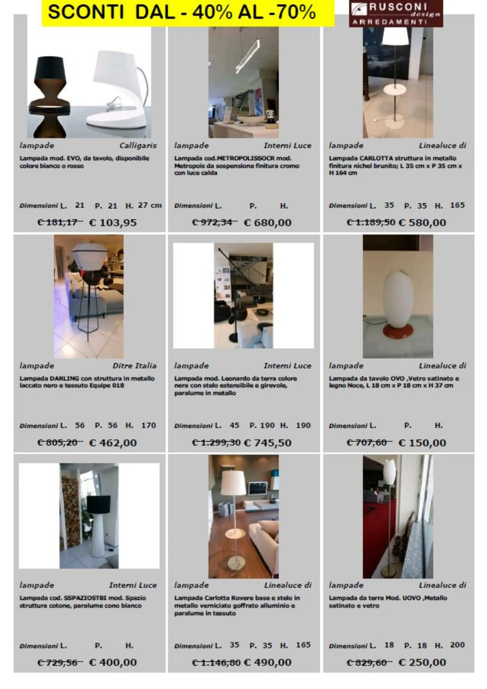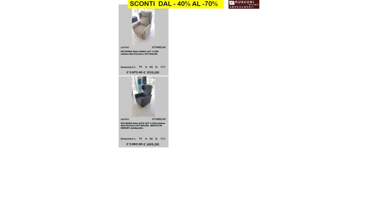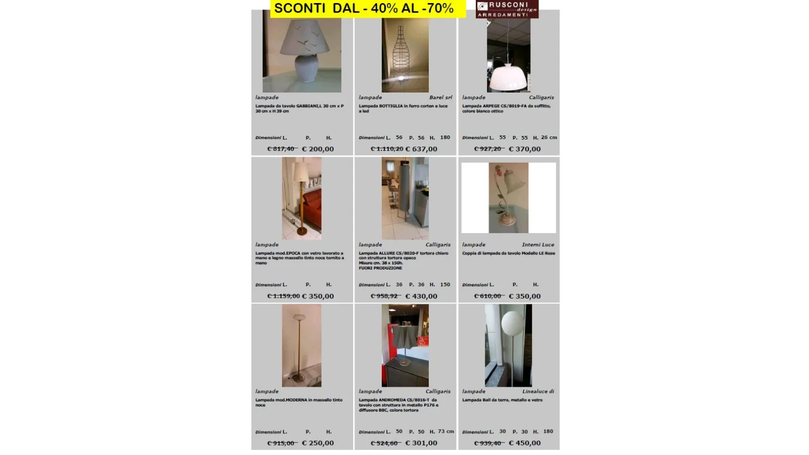 per richieste e prenotazioni scrivi a : online@rusconiarredamenti.it