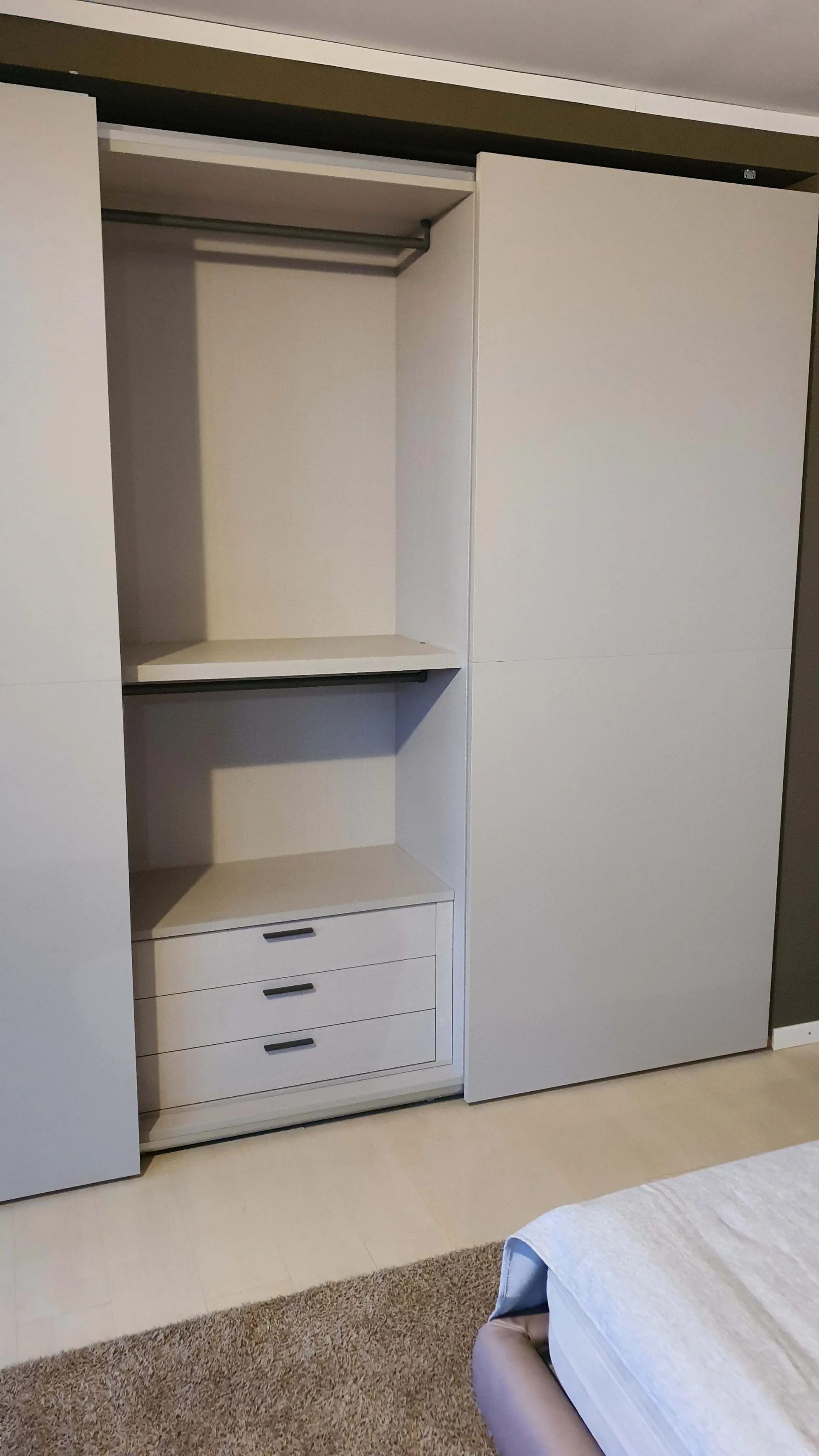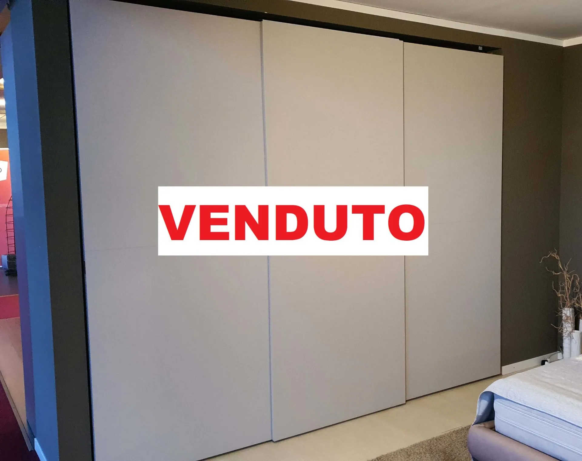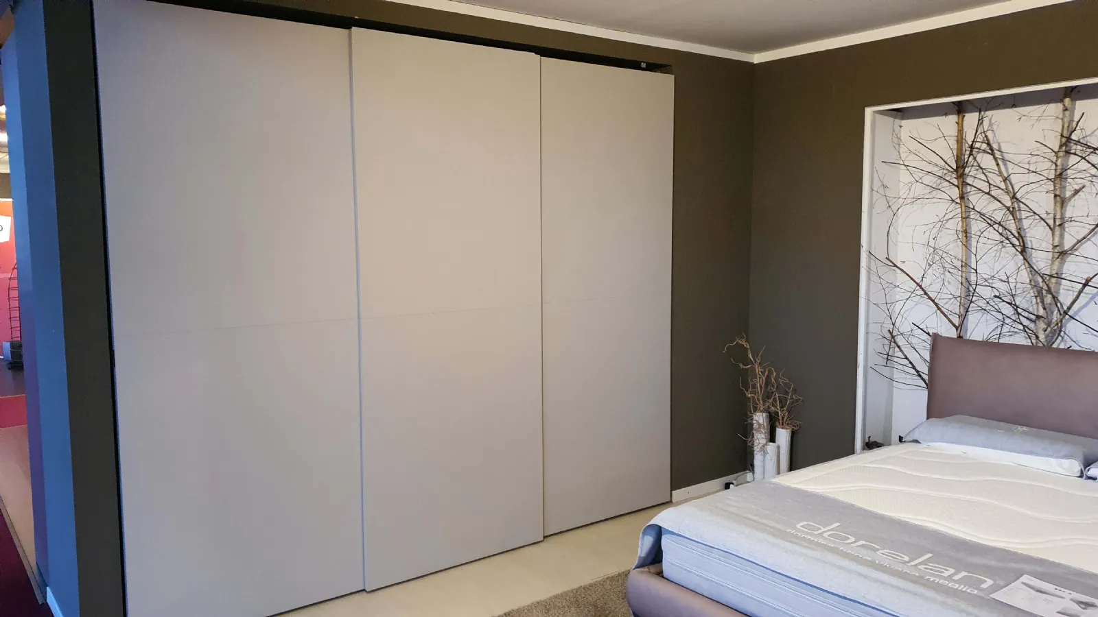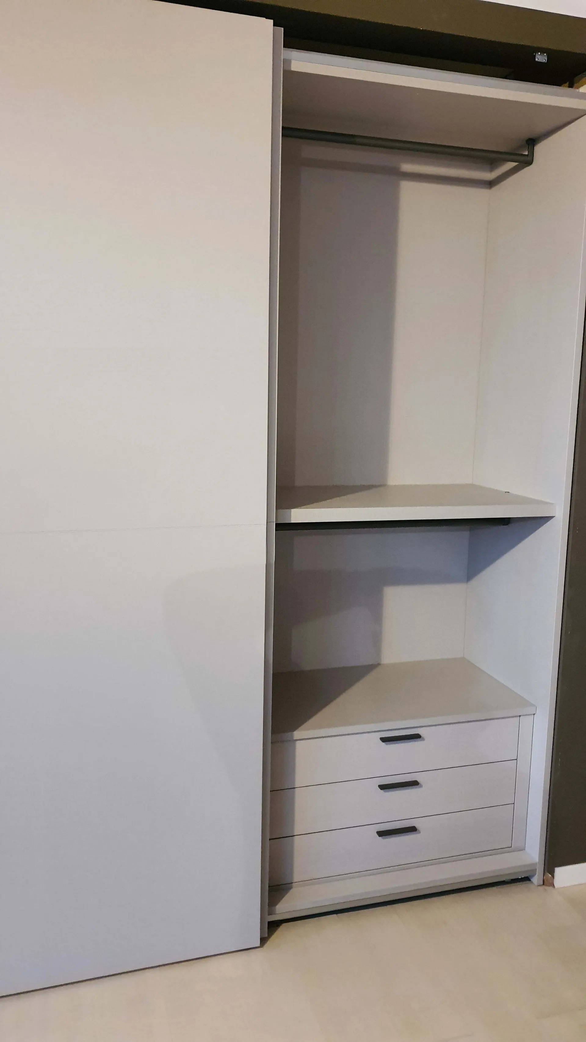 Armadio scorrevole LISCIA 2 Settori con ante in materico a poro aperto madreperla, maniglia Clip, interni tramato madreperla, n.3 moduli da cm. 98