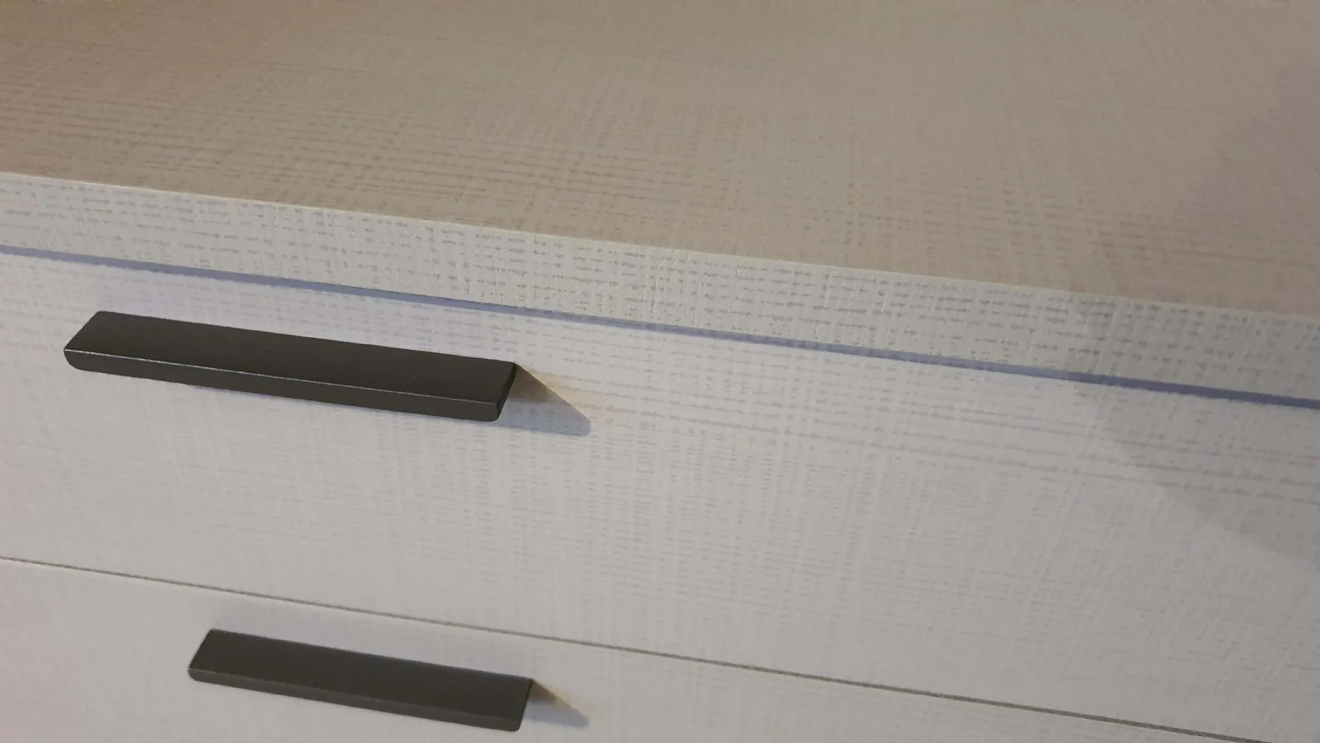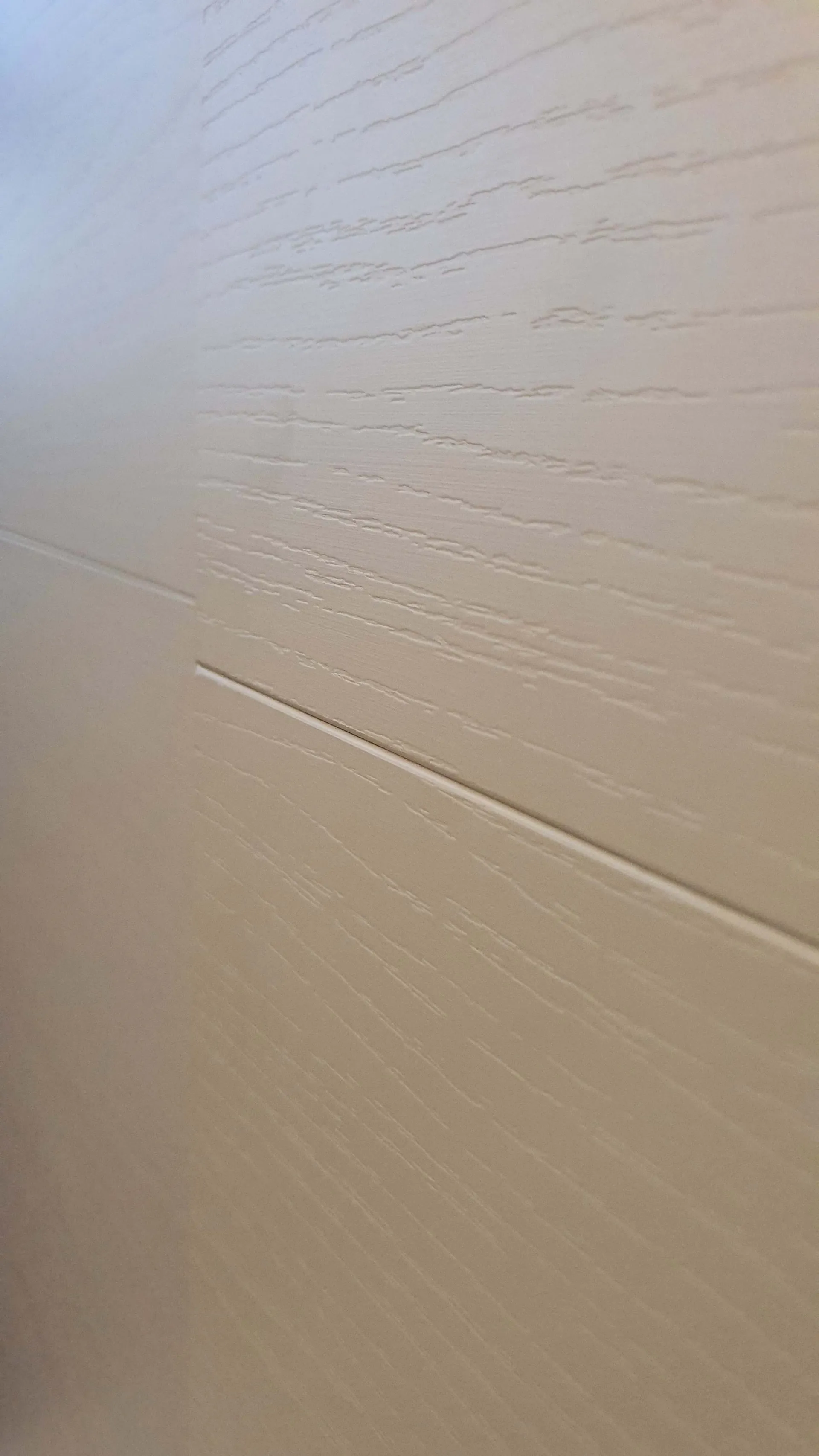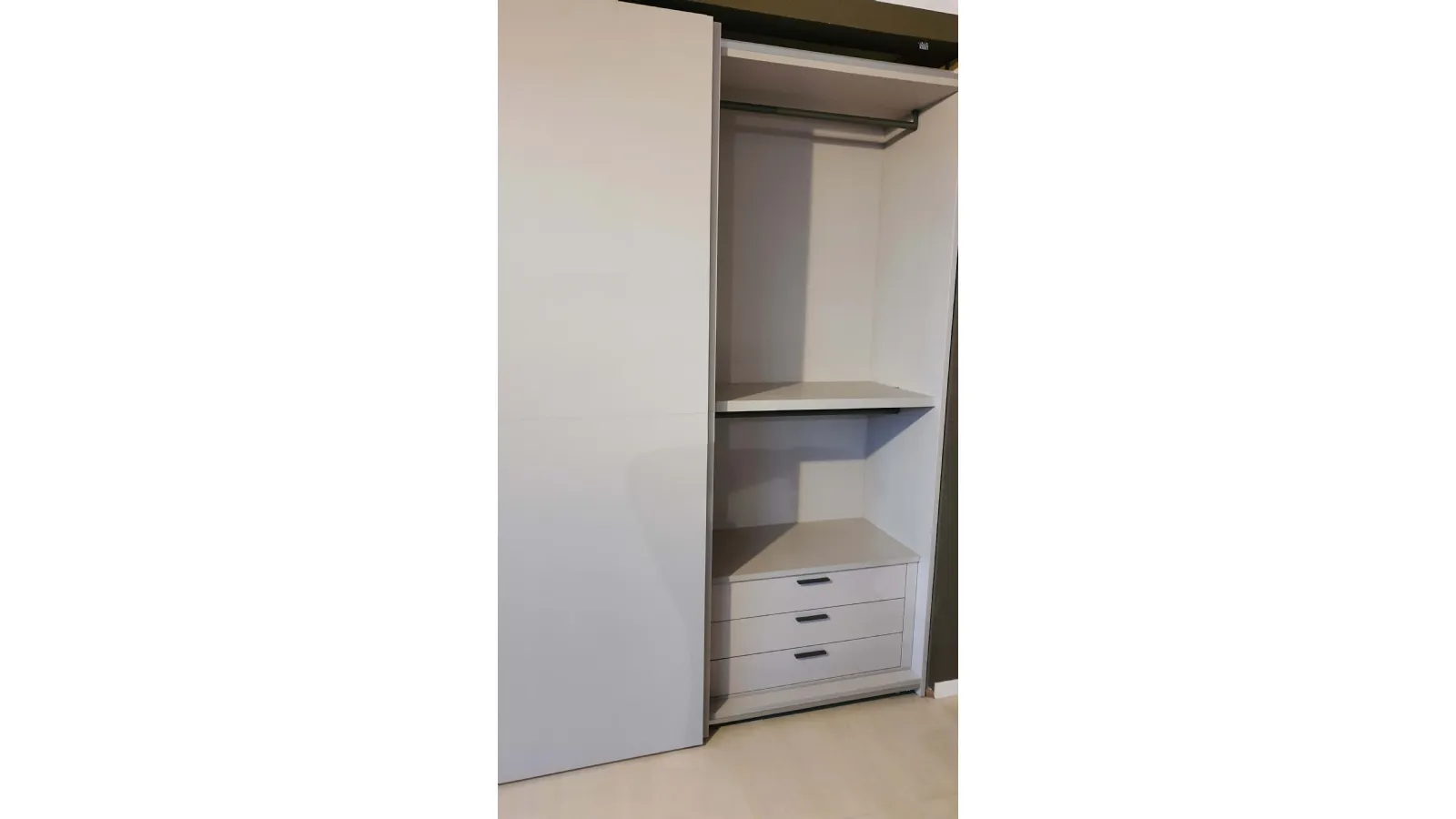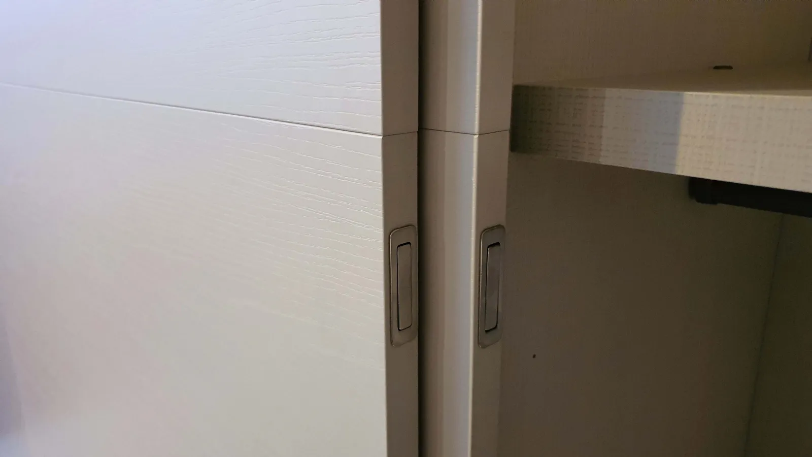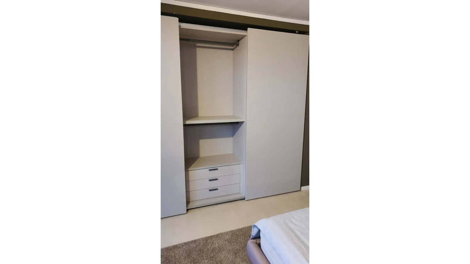 Armadio scorrevole LISCIA 2 Settori con ante in materico a poro aperto madreperla, maniglia Clip, interni tramato madreperla, n.3 moduli da cm. 98