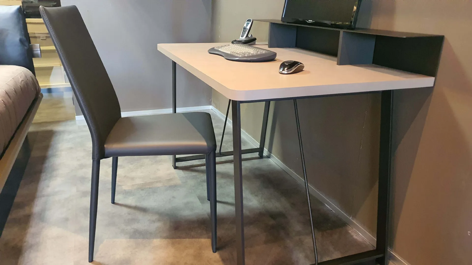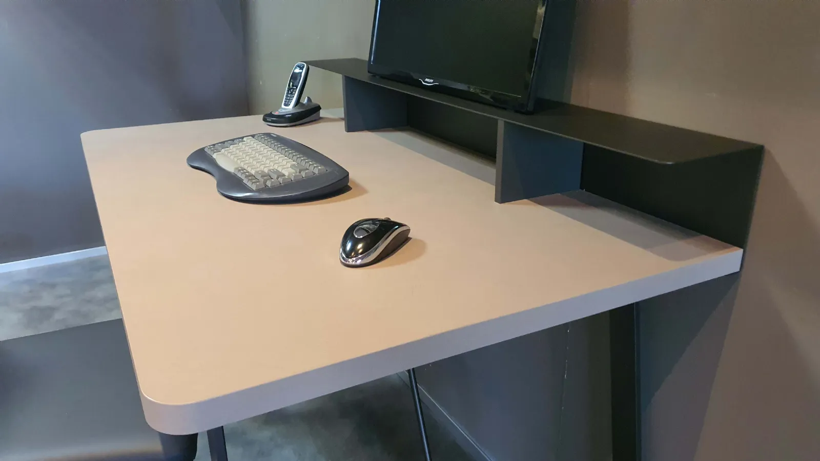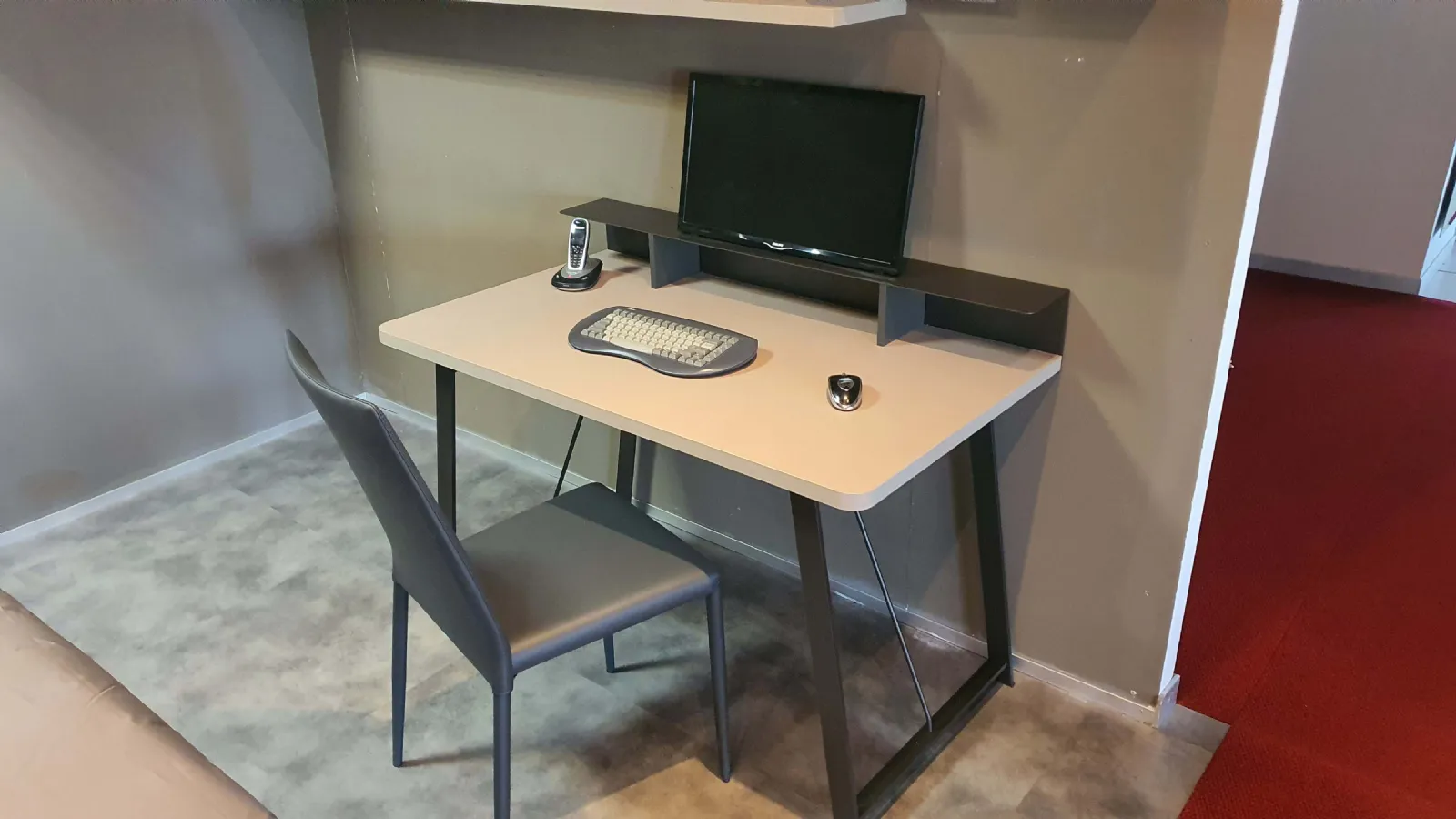Il piano scrittoio è completo di rialzo in metallo ANTRACITE, comodo come appoggio per libri o pc
