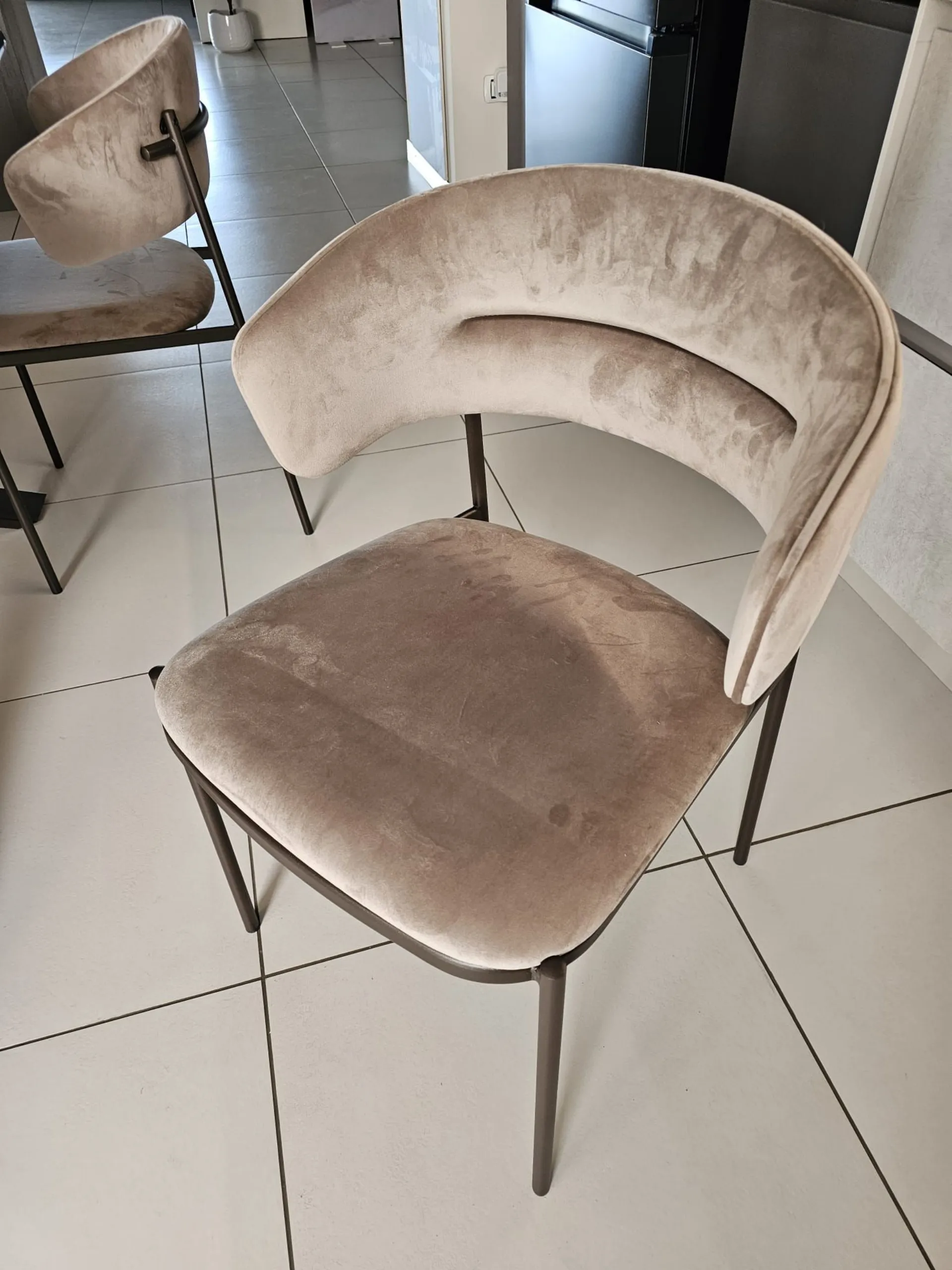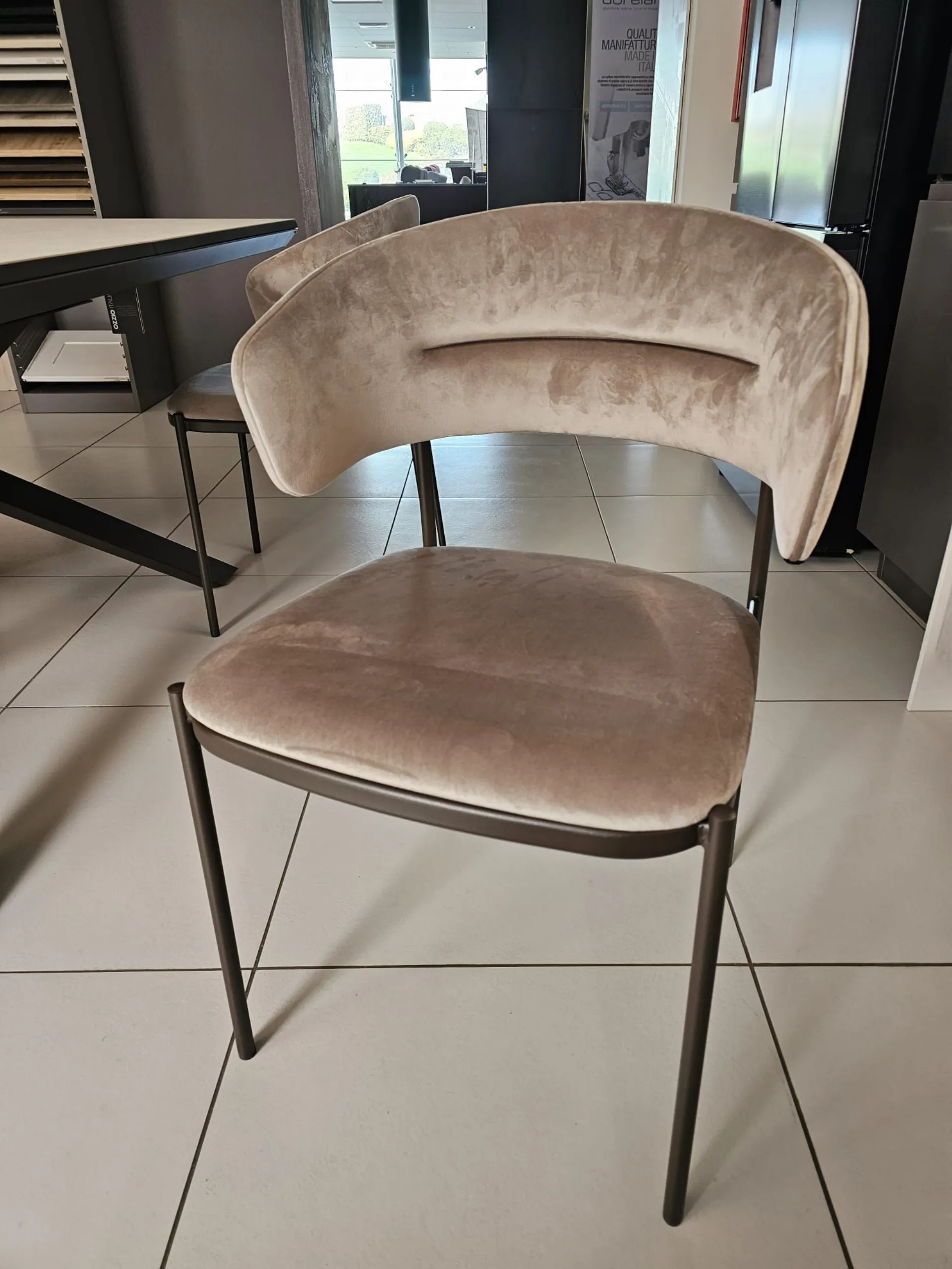 Sedia mod. EGO BR con bracciolo, in rivestimento velluto VE05.