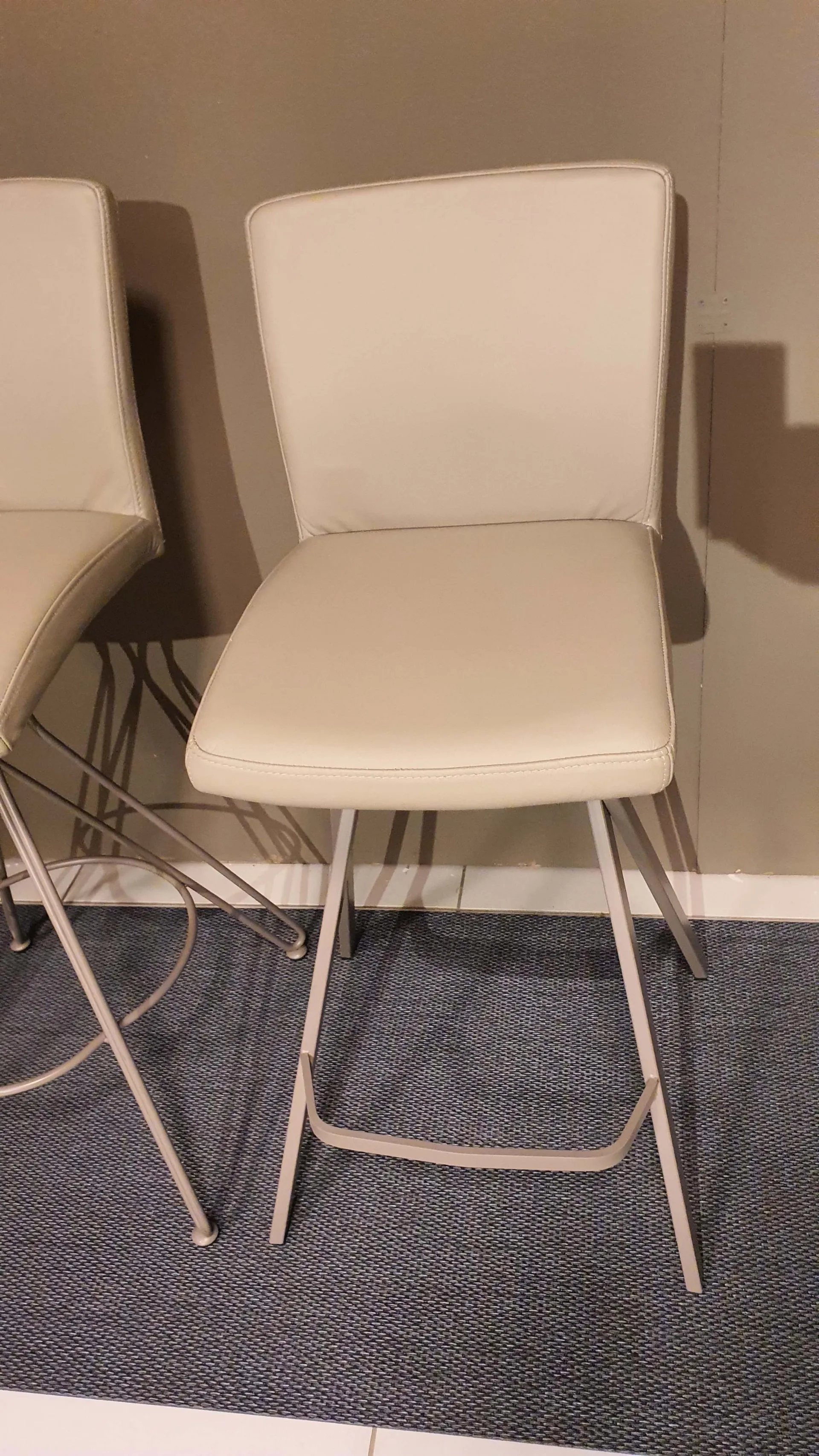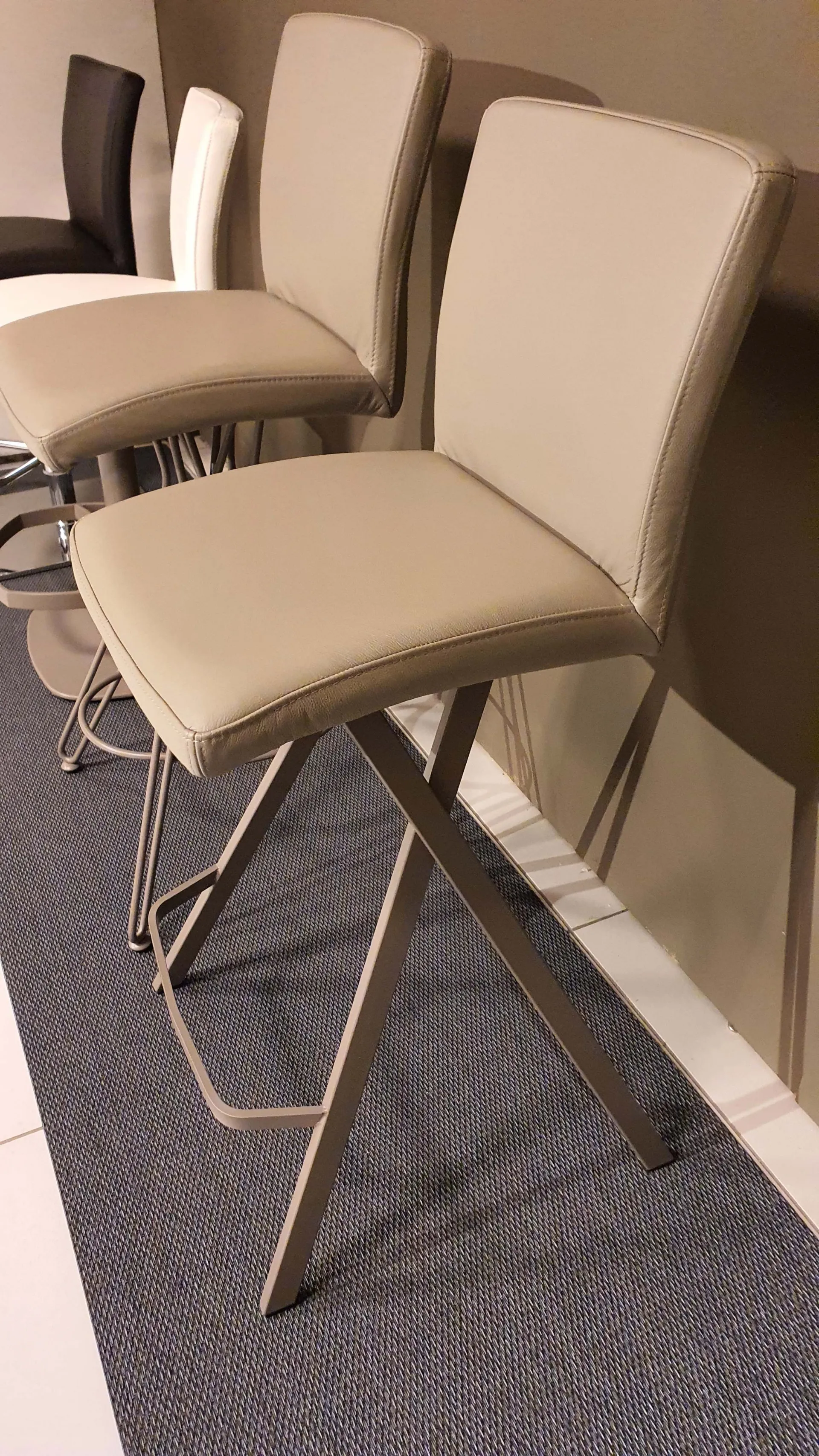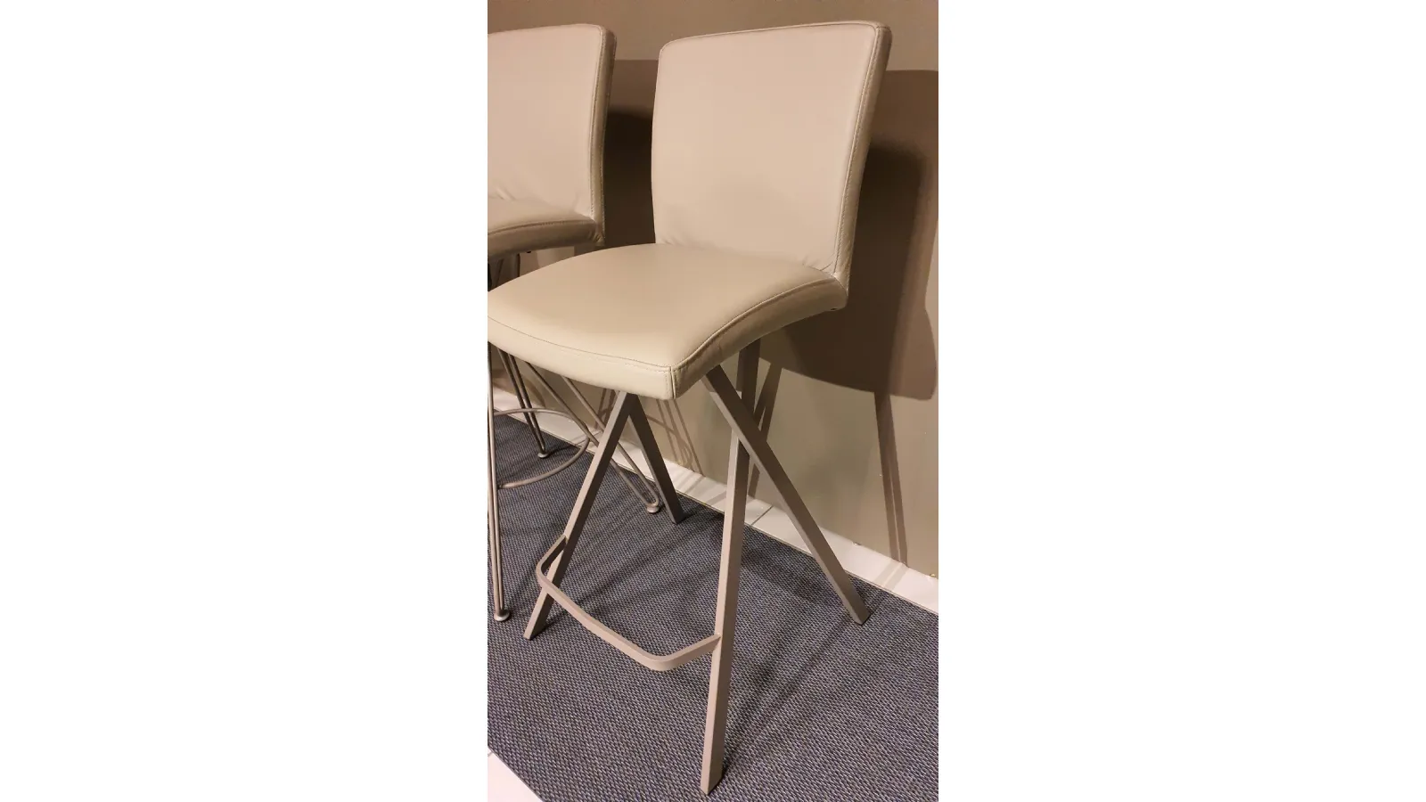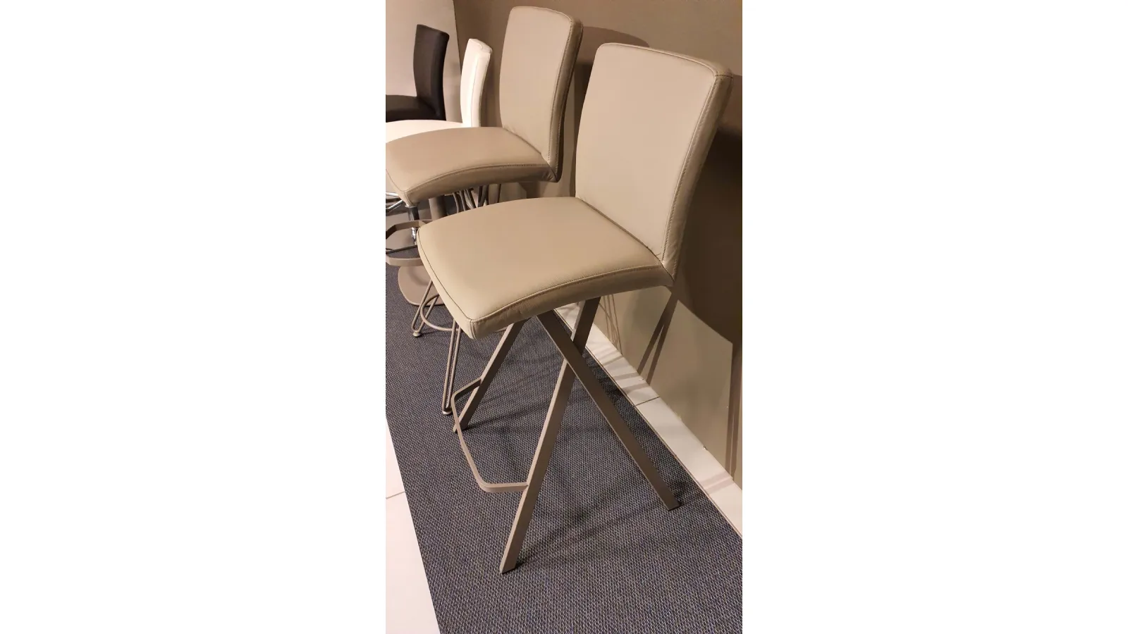 Sgabello Etienne con seduta imbottita e rivestita in pelle vera colore crema caffè