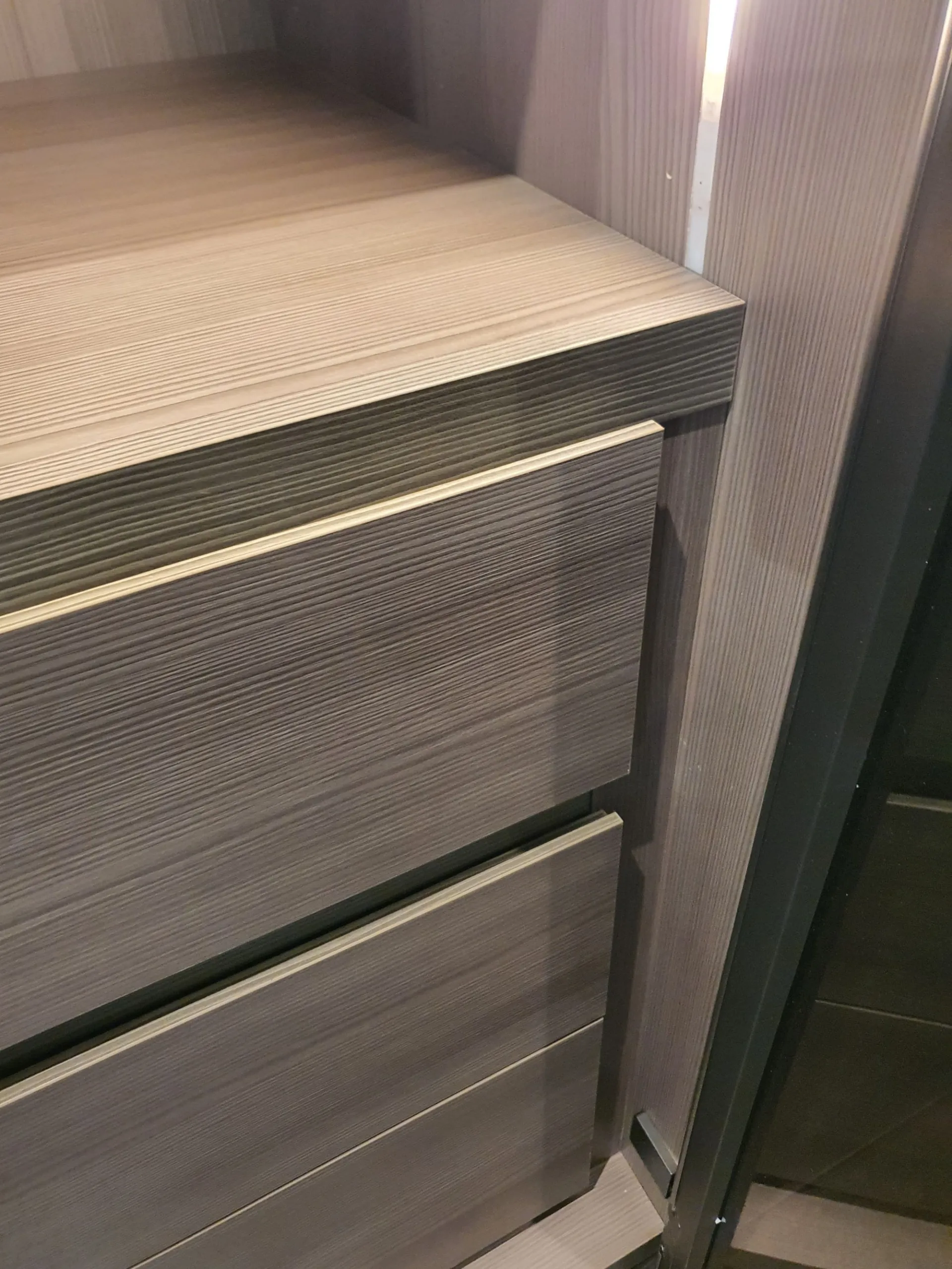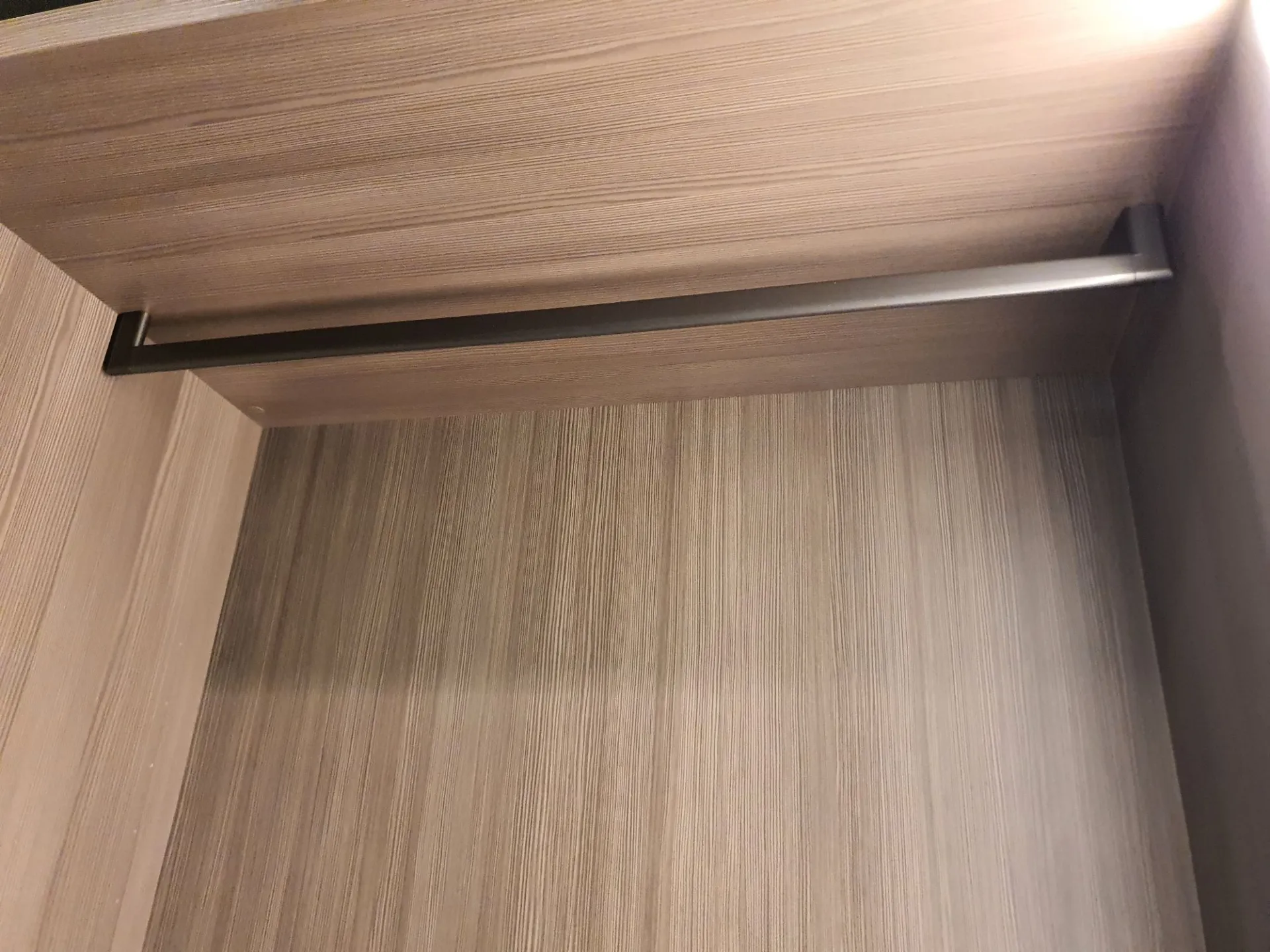 Sono presenti delle comode barre a LED verticali incassate nelle spalle che illuminano l’interno dell’armadio