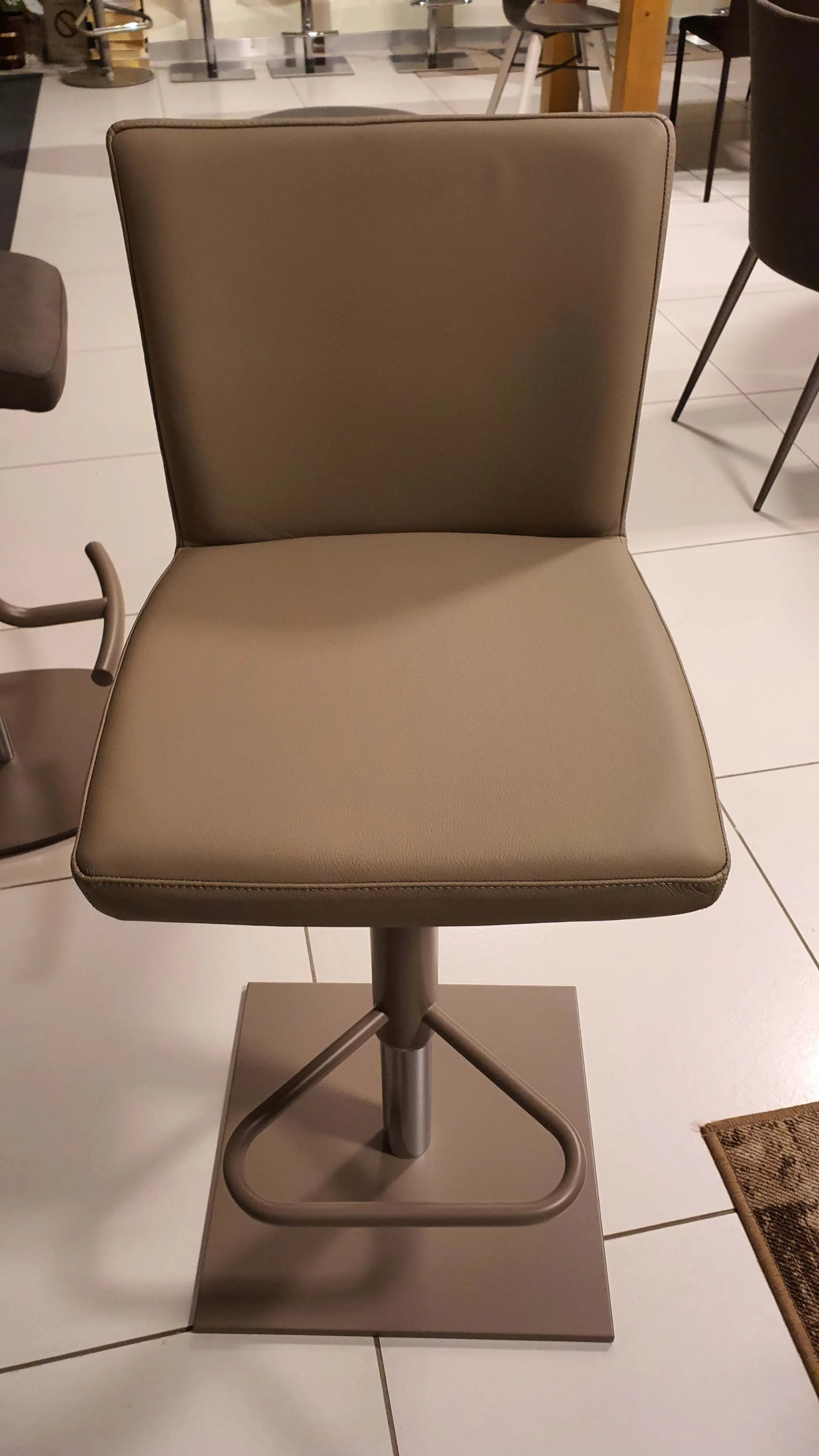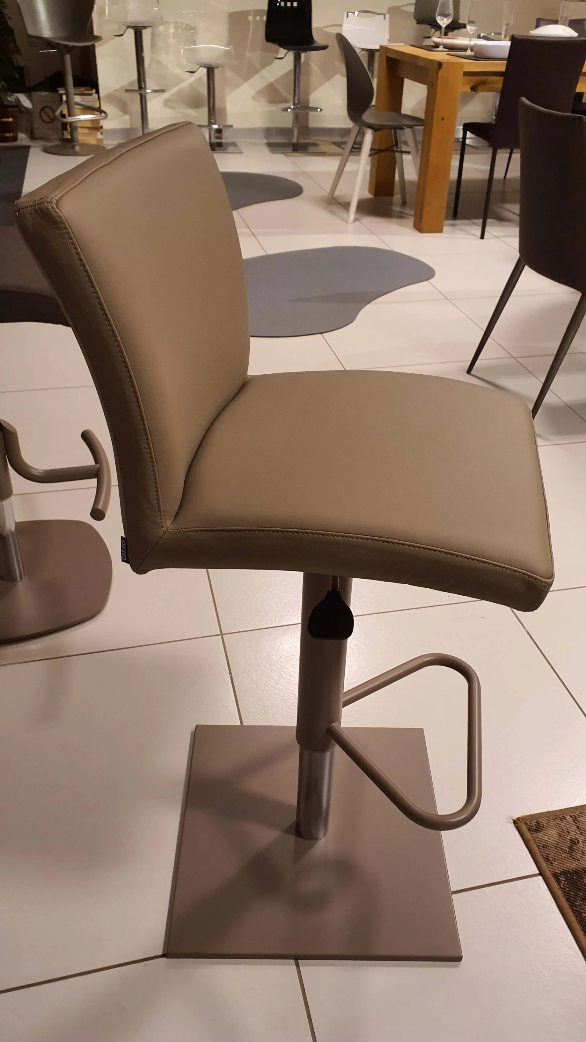 Sgabello SOFT con rivestimento in pelle colore crema caffè e base color tortora