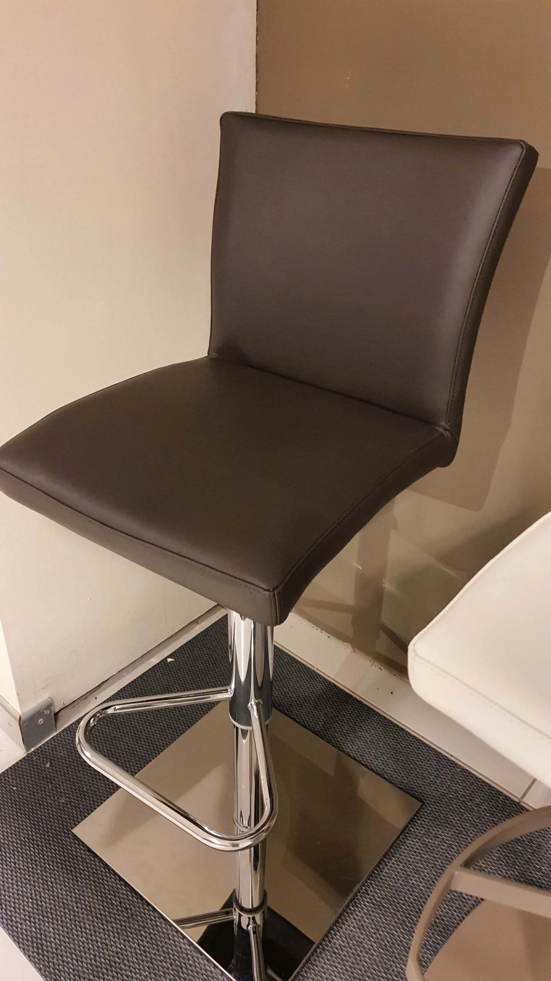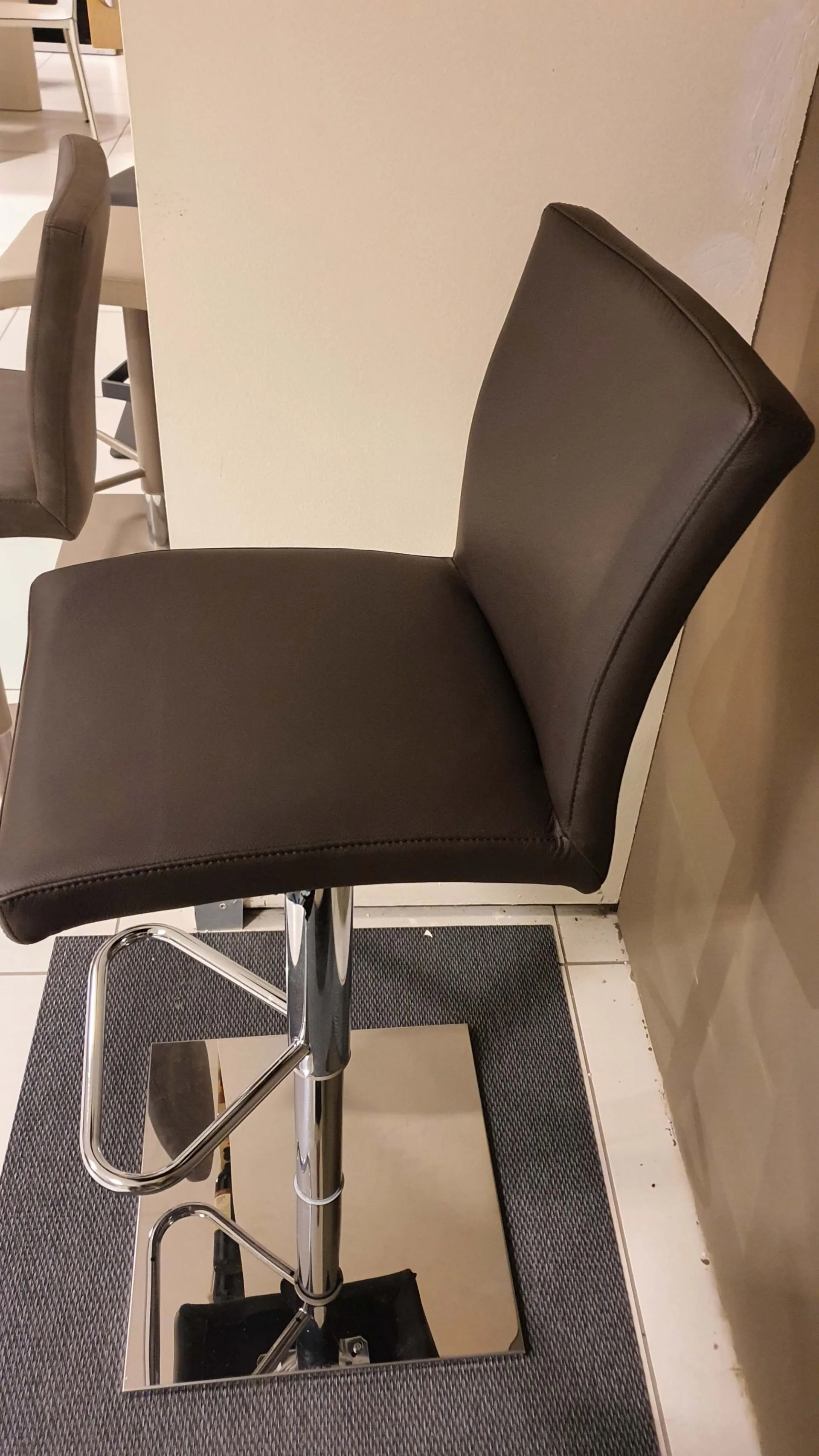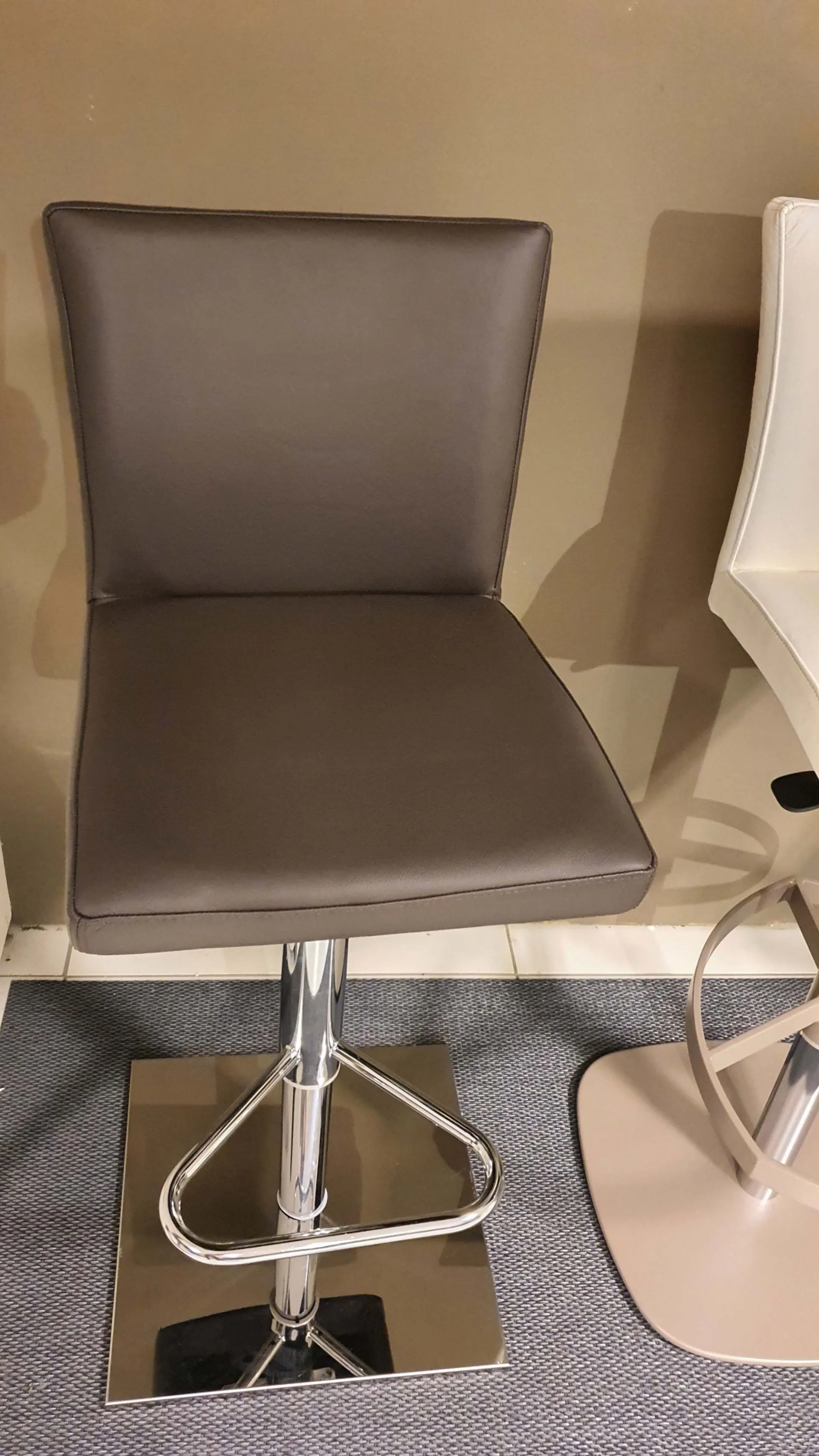 Sgabello SOFT con rivestimento in pelle color moka e base cromo